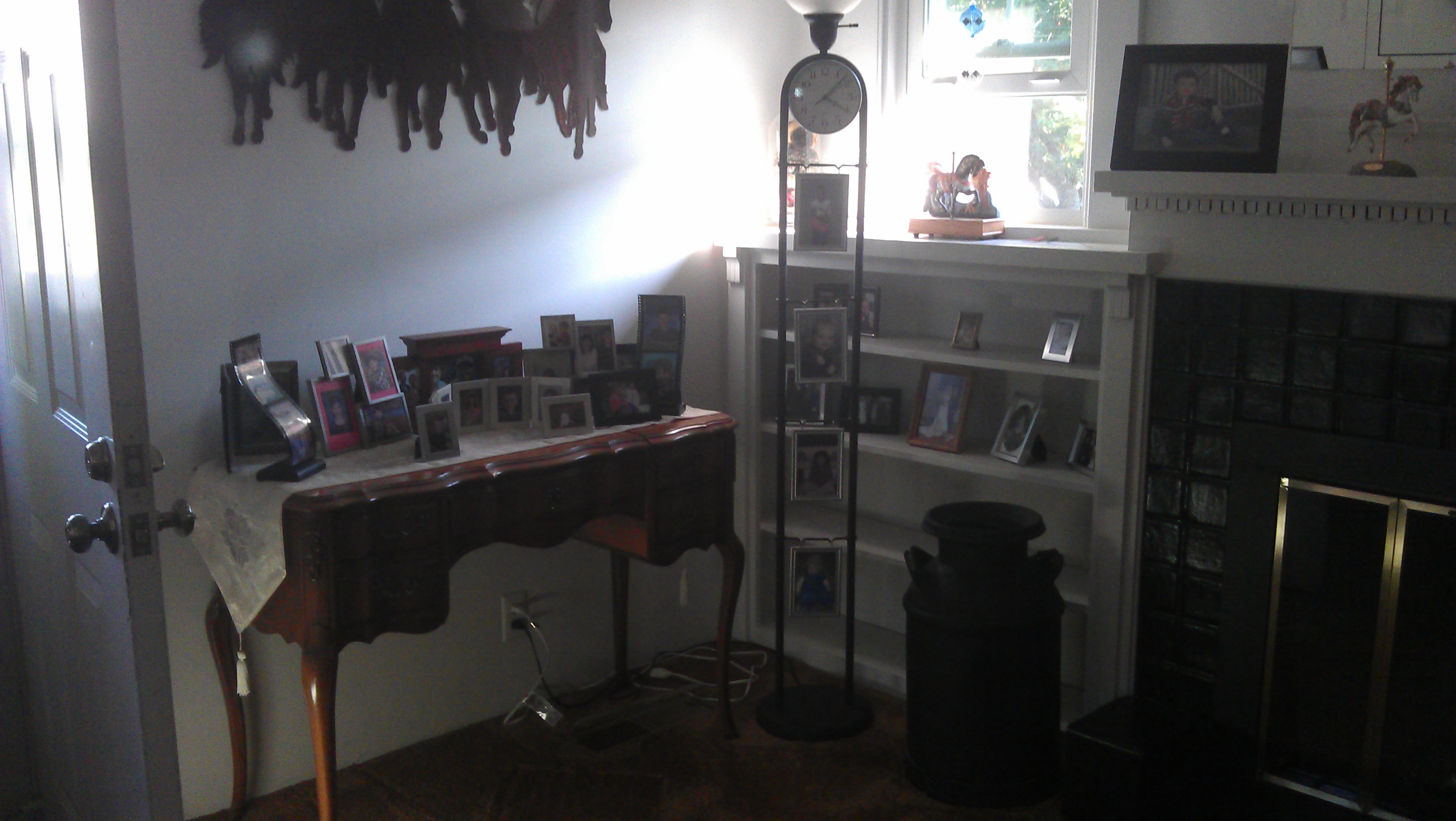 This is taken from the corner between the fireplace and the front door. Through the arch is the dining area.