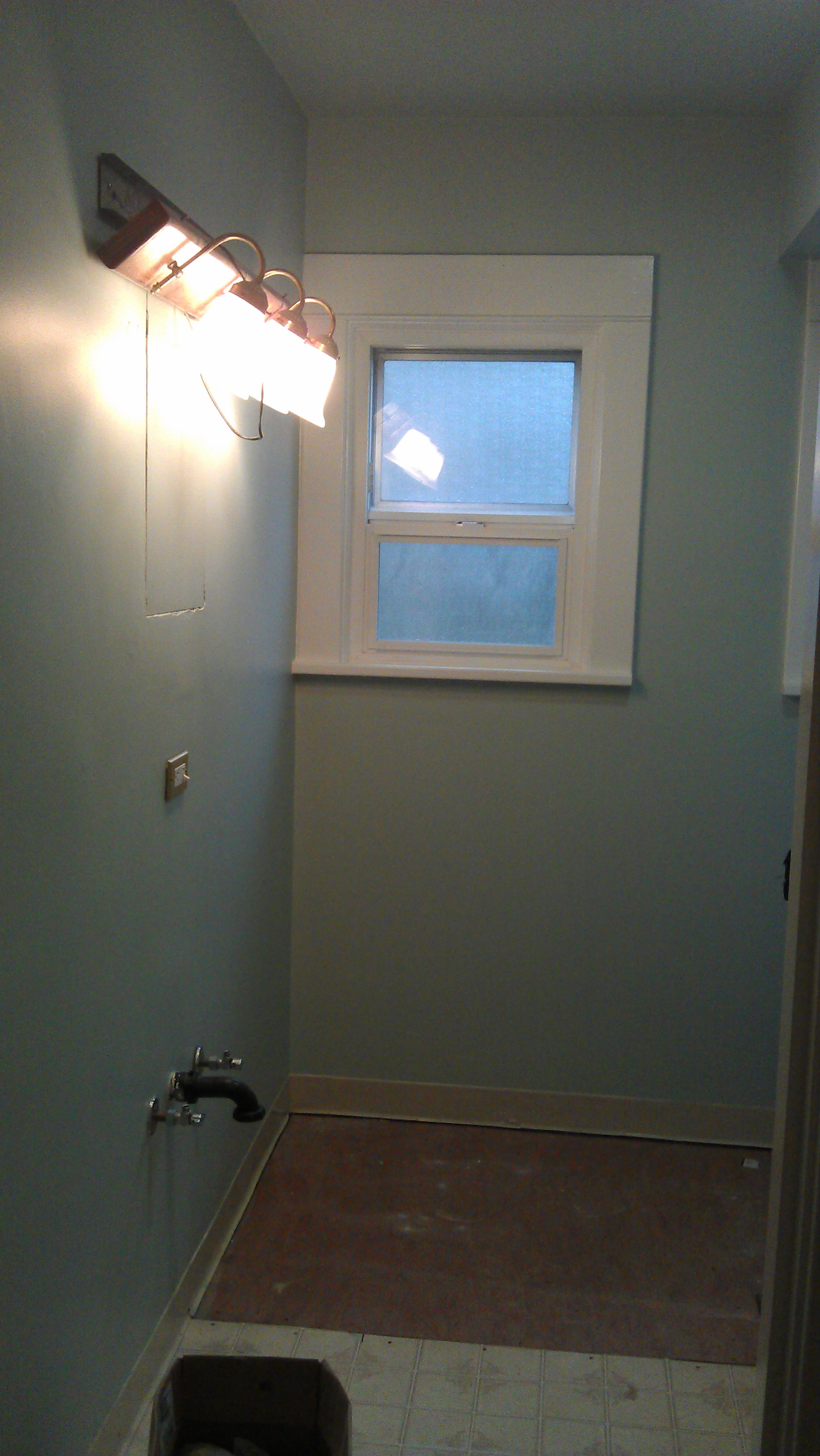 The bathroom walls are Woodlawn Blue – this picture was taken with my cell phone; there will be more pictures in my bathroom renovation post: