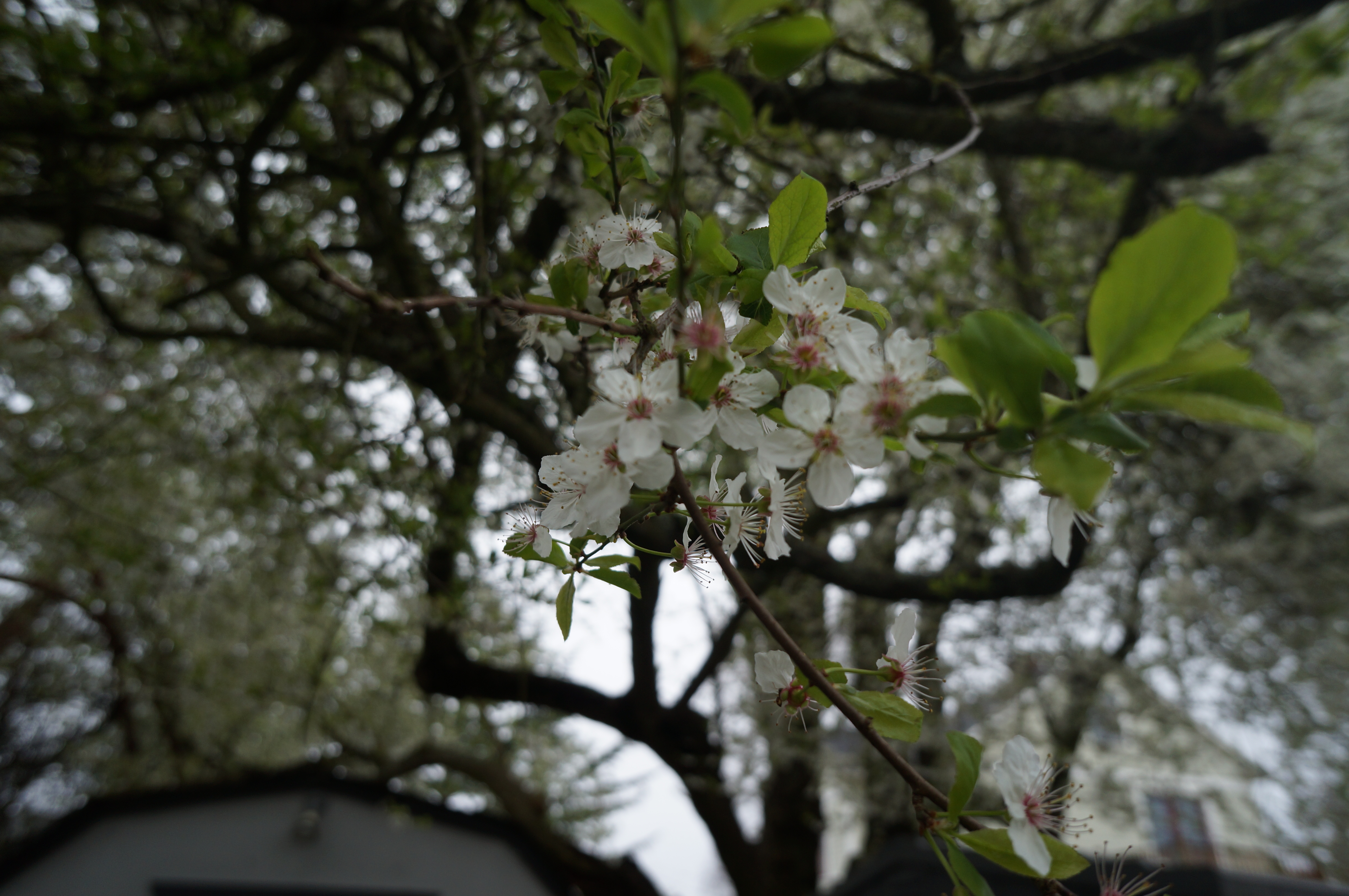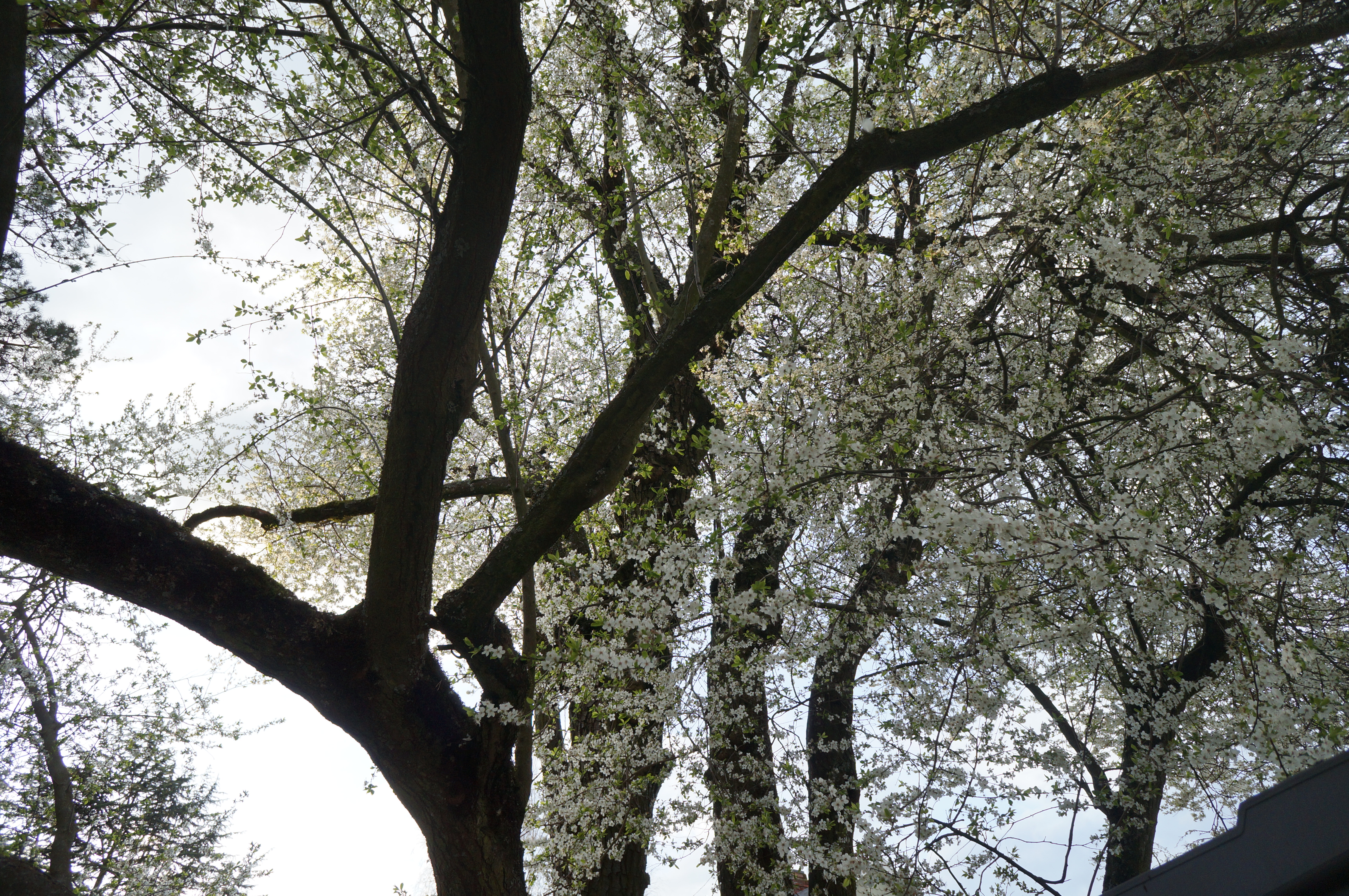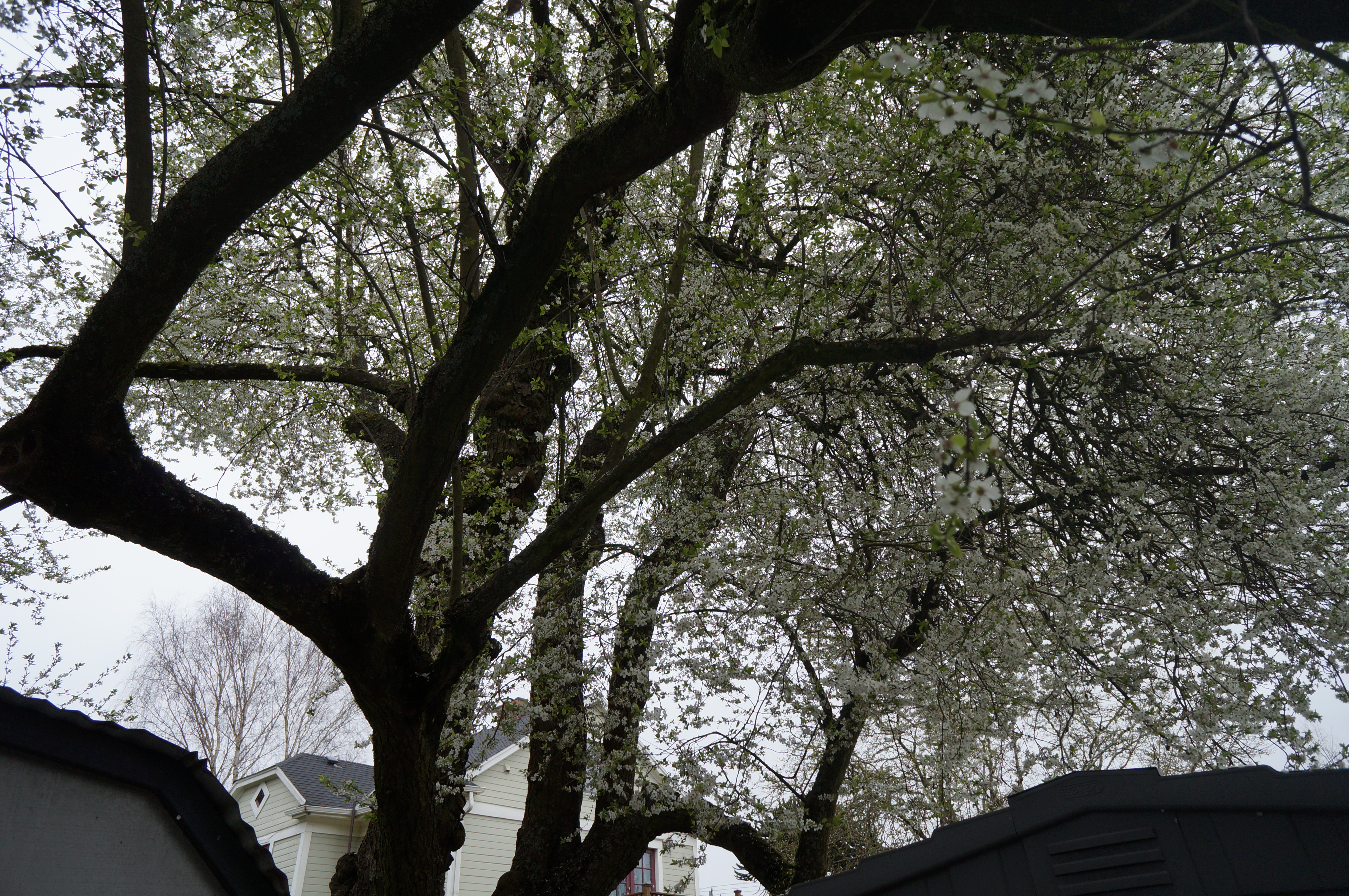 My mom has been asking about what’s growing or blooming in our yard (really, not that much is blooming), so I took some pictures (A. took some of these, too, because he’s excited about the blossoming tree):