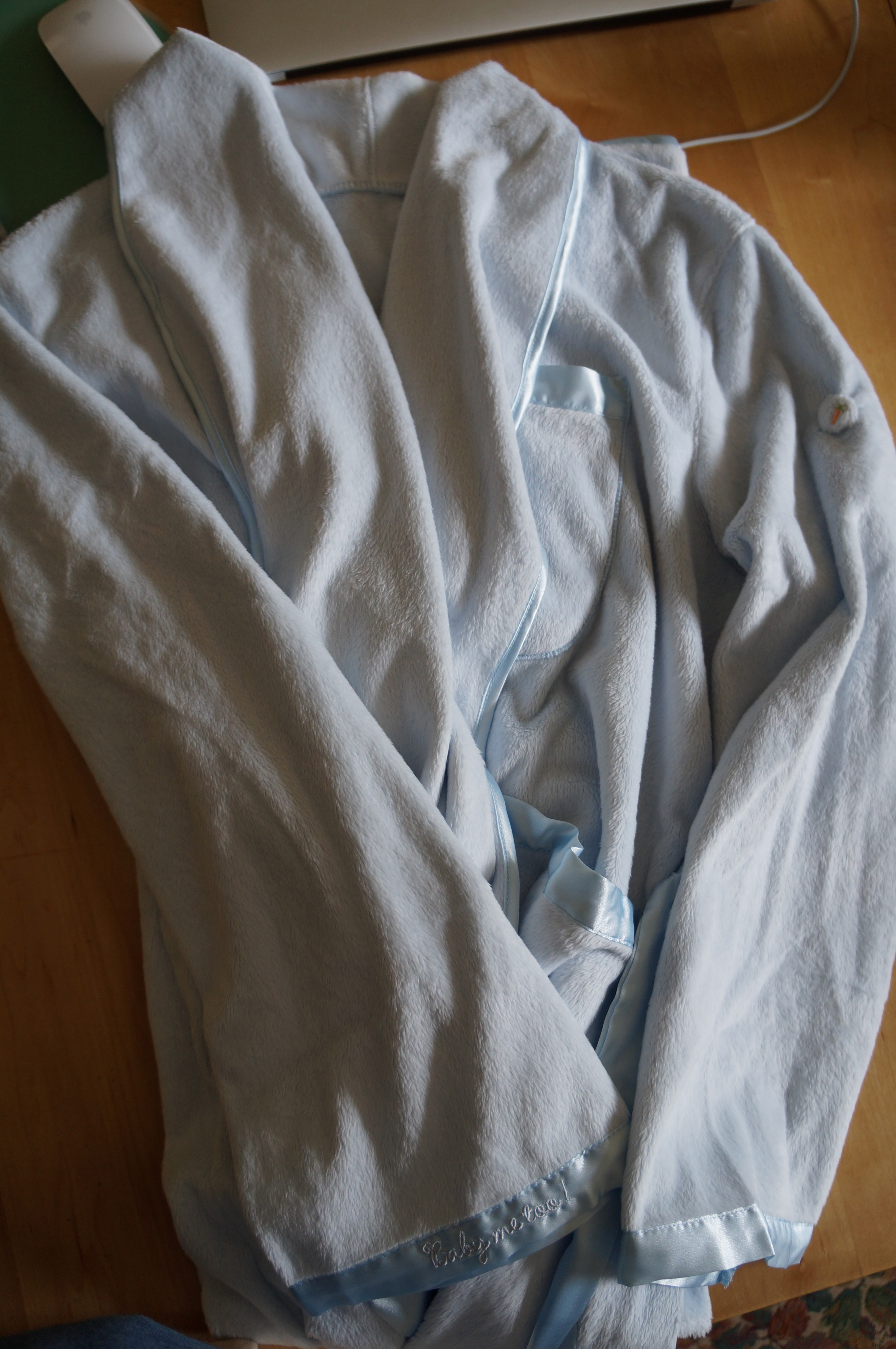 A super soft robe for me! On the sleeve, it says “Baby Me Too”.