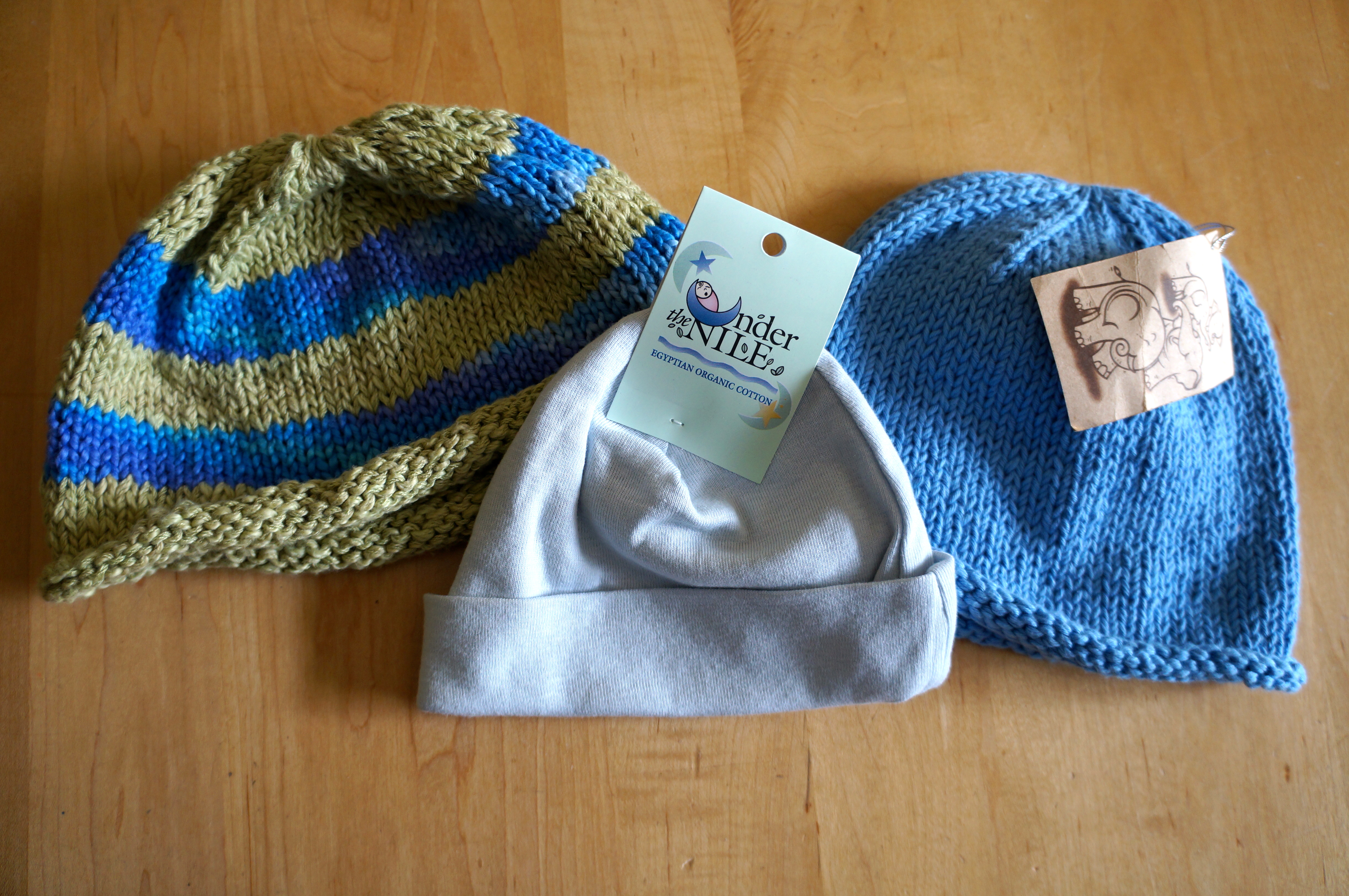 Jan brought over some more items from craigslist. I love the Winnie the Pooh blanket, and the hats with brims might come in handy. There is also a swaddle wrap thing — I had to look it up to figure out what it is!