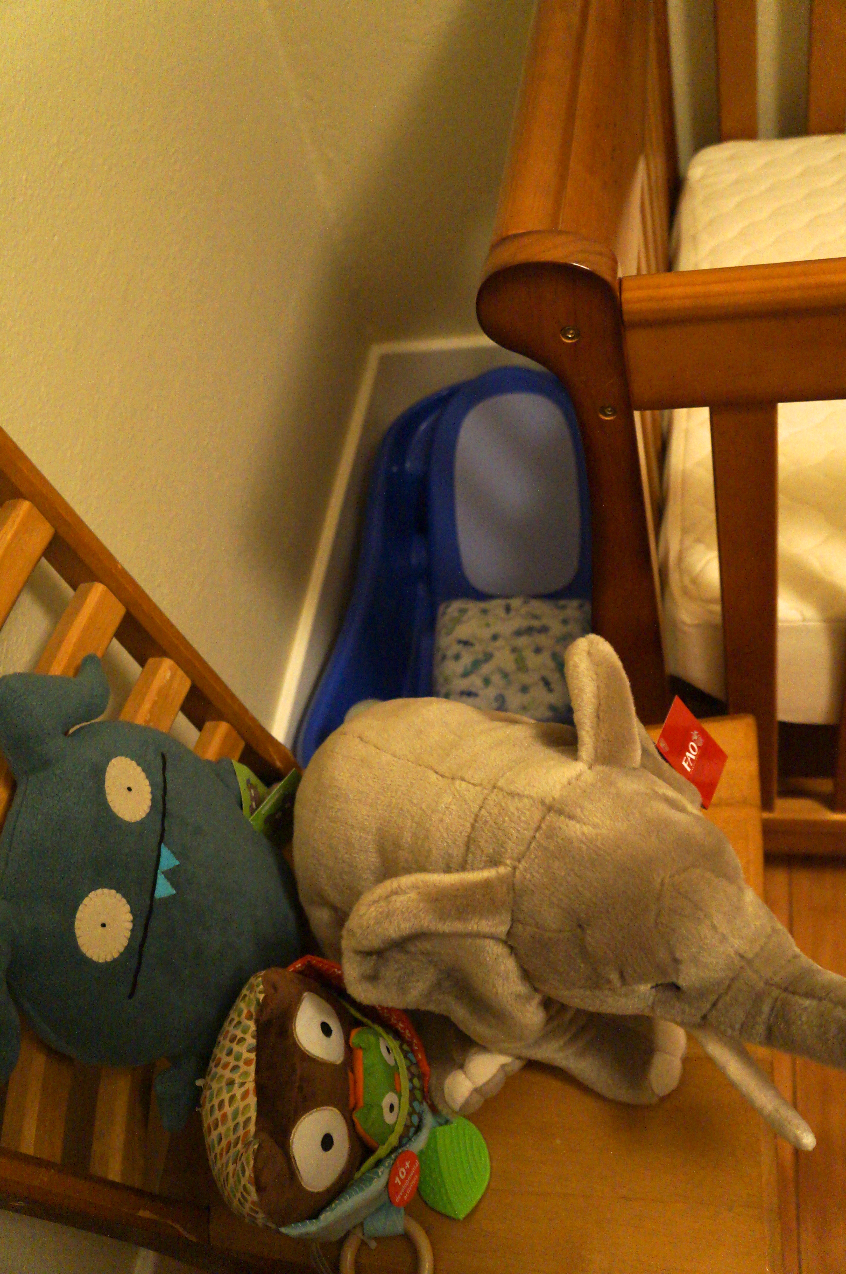 I had to move the bathtub to the space by the crib, where it fits perfectly: