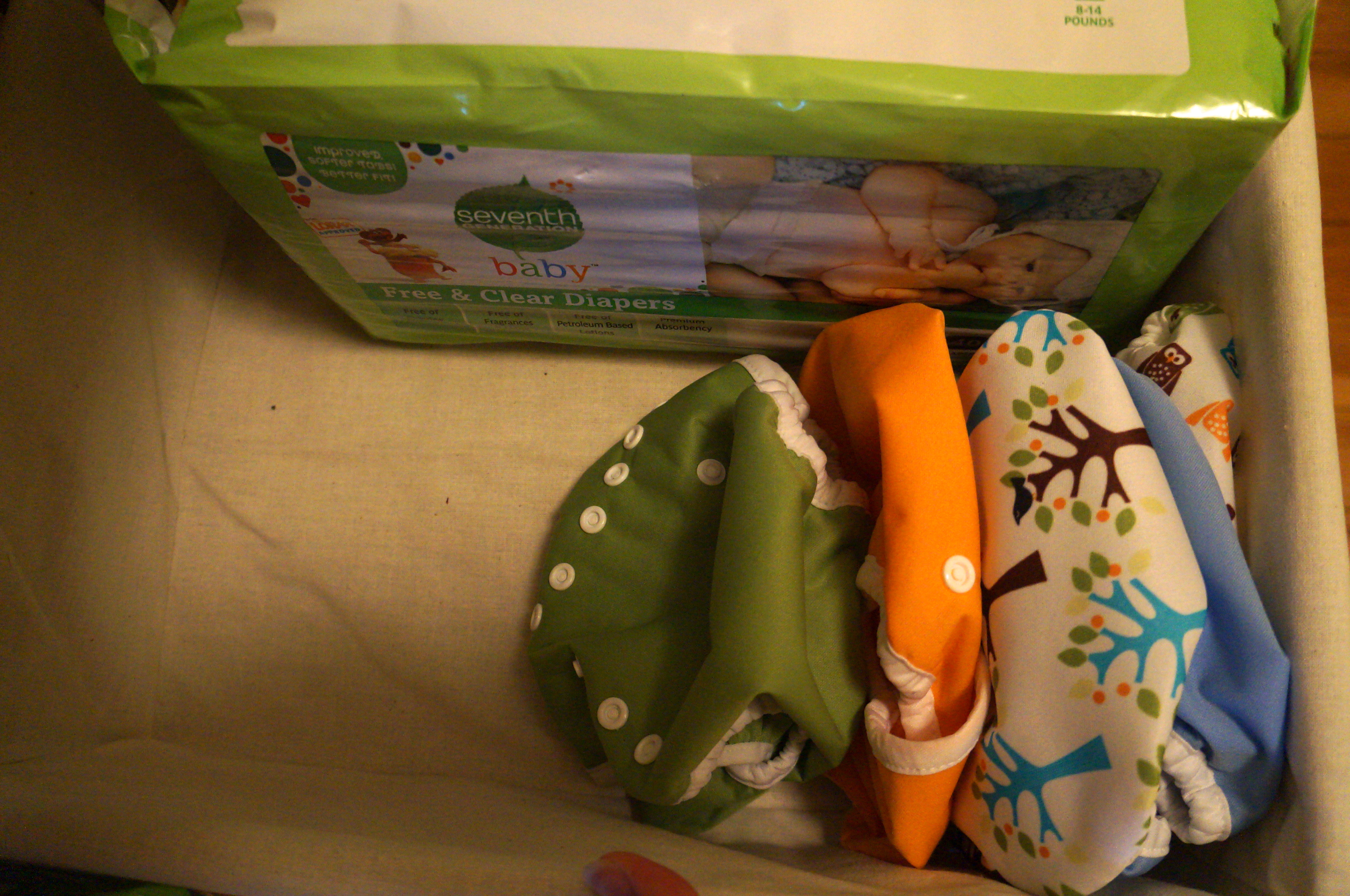 Some wonderful diapering supplies — Thirsties covers, inserts, Seventh Generation disposables and wipes, and an all-in-one cloth diaper that’s so fluffy and soft I kind of wish I could wear it myself:DSC01737
