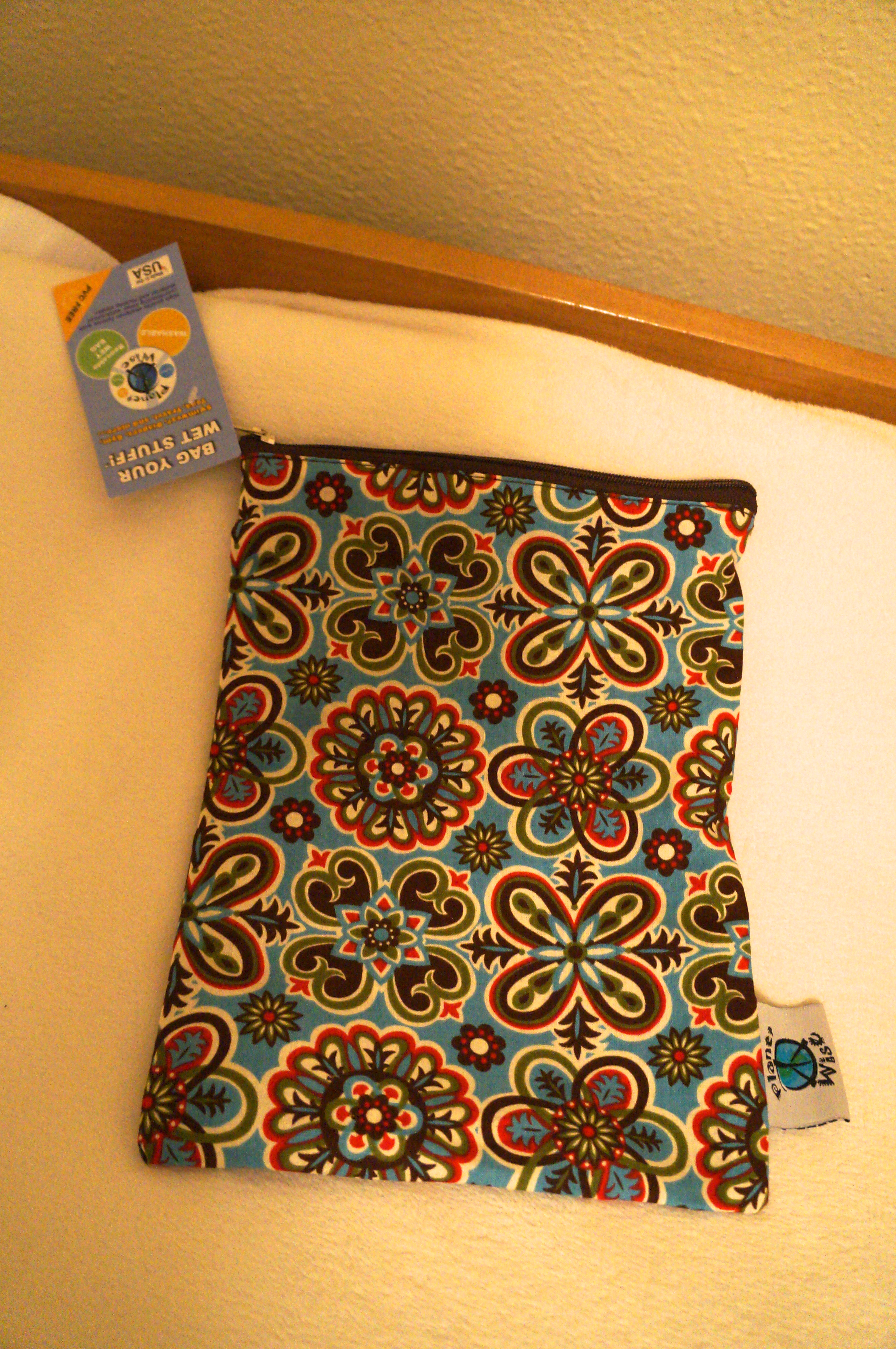a wet bag (size small, “Fiesta” pattern) for carrying wet diapers or whatever when we’re out,