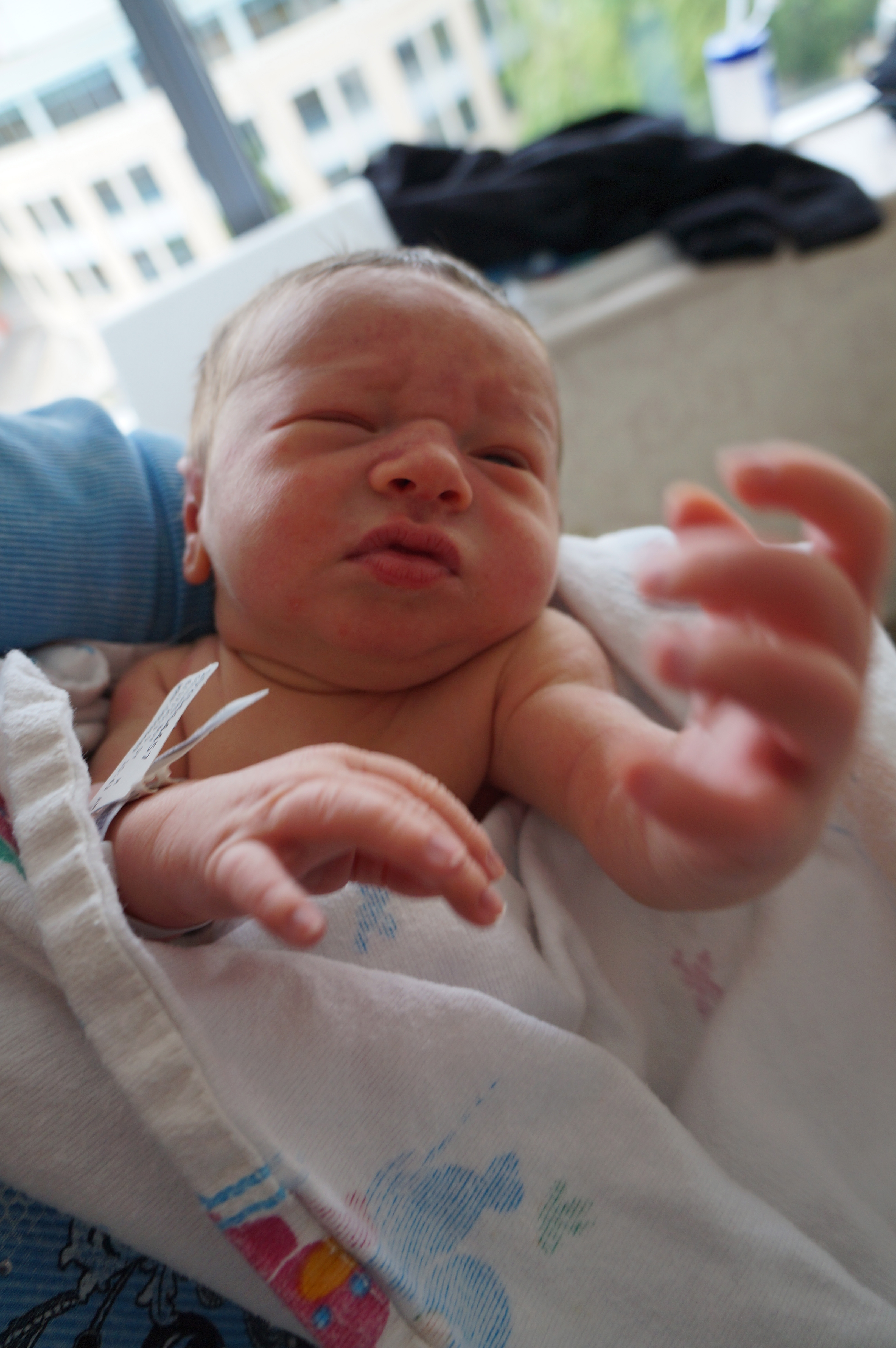 He arrived on his due date on June 17th, at 10:43am. He weighed 7 pounds 5 ounces and was 19.5 inches long.