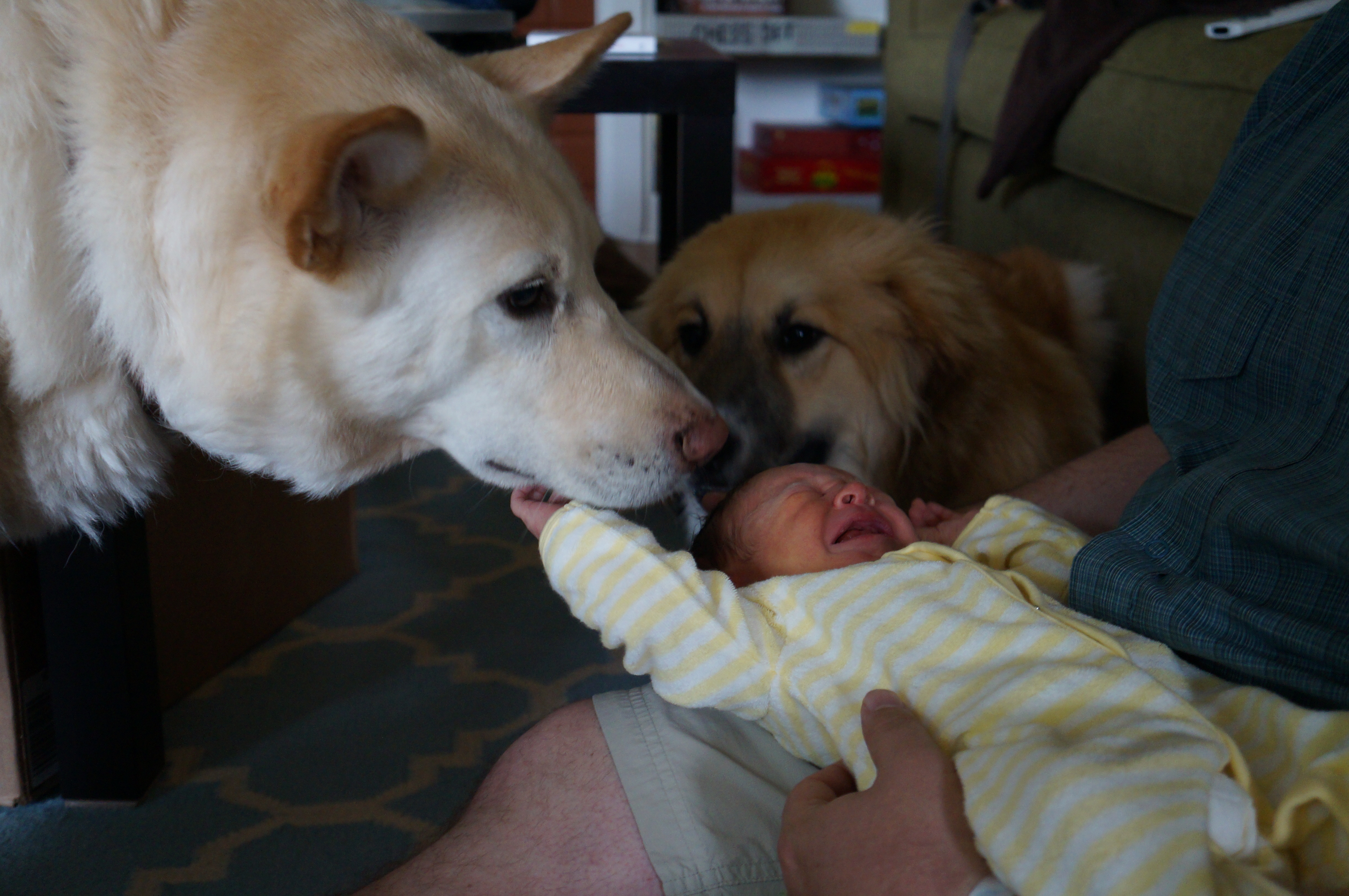 We brought him home and introduced him to Andrew and Luna, who both just sniffed and licked him gently: