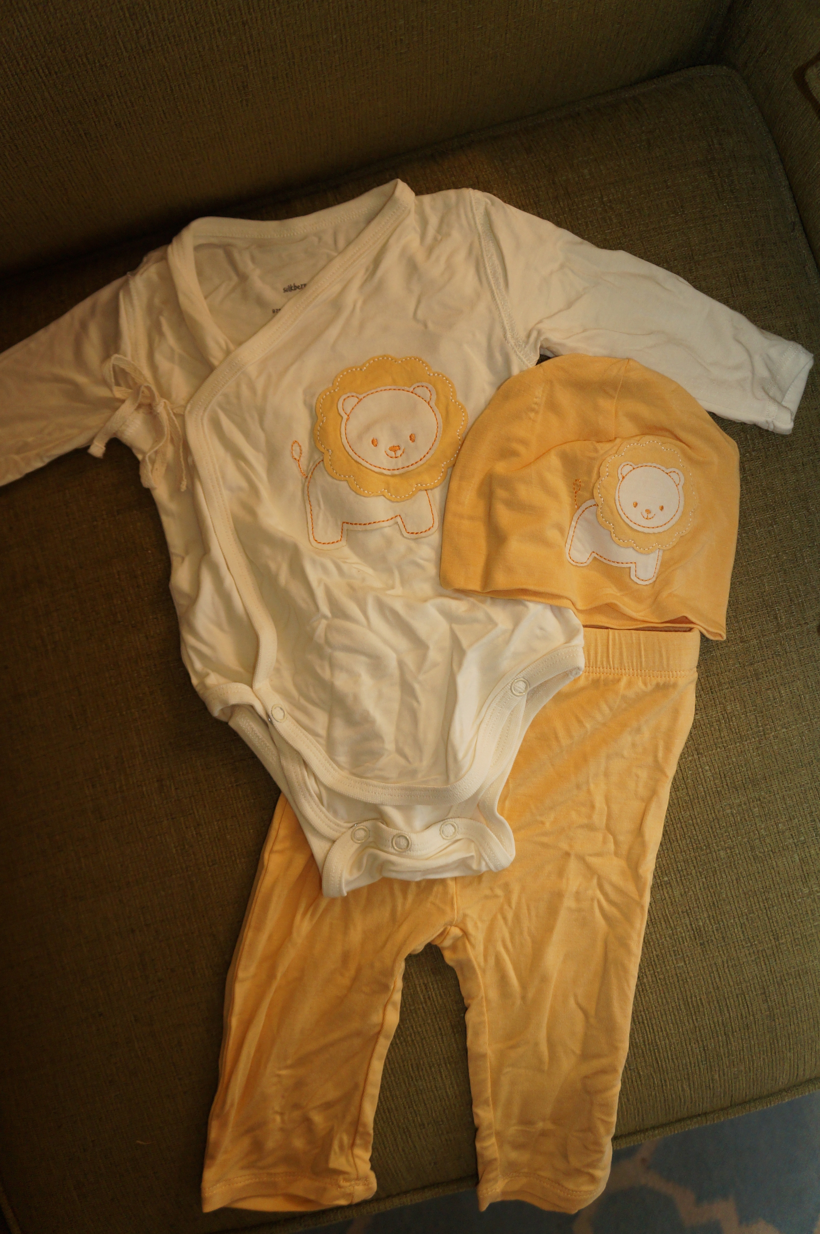 On the last day, we put him in his going-home outfit and strapped him into the car seat: