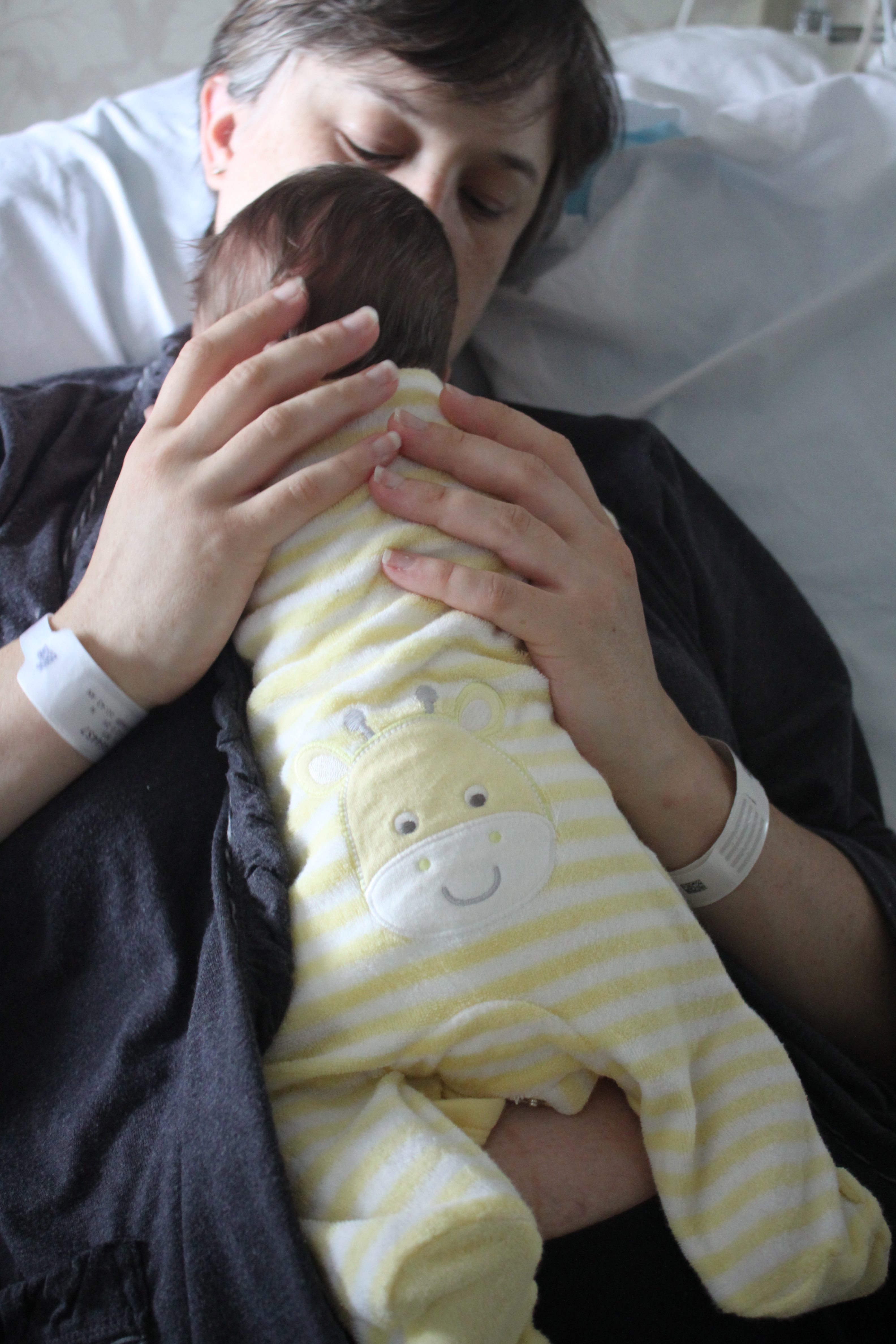 Toward the end I guess his heart rate dropped and they started telling me I needed to actually push him out, which seemed impossible, but out he came, white and floppy apparently, and suddenly a pediatric team was in the room and they took him to a resuscitation area and gave him some air and pretty soon I heard him cry and they told me he was okay. There had been a nuchal cord issue and his first Apgar was only 2.