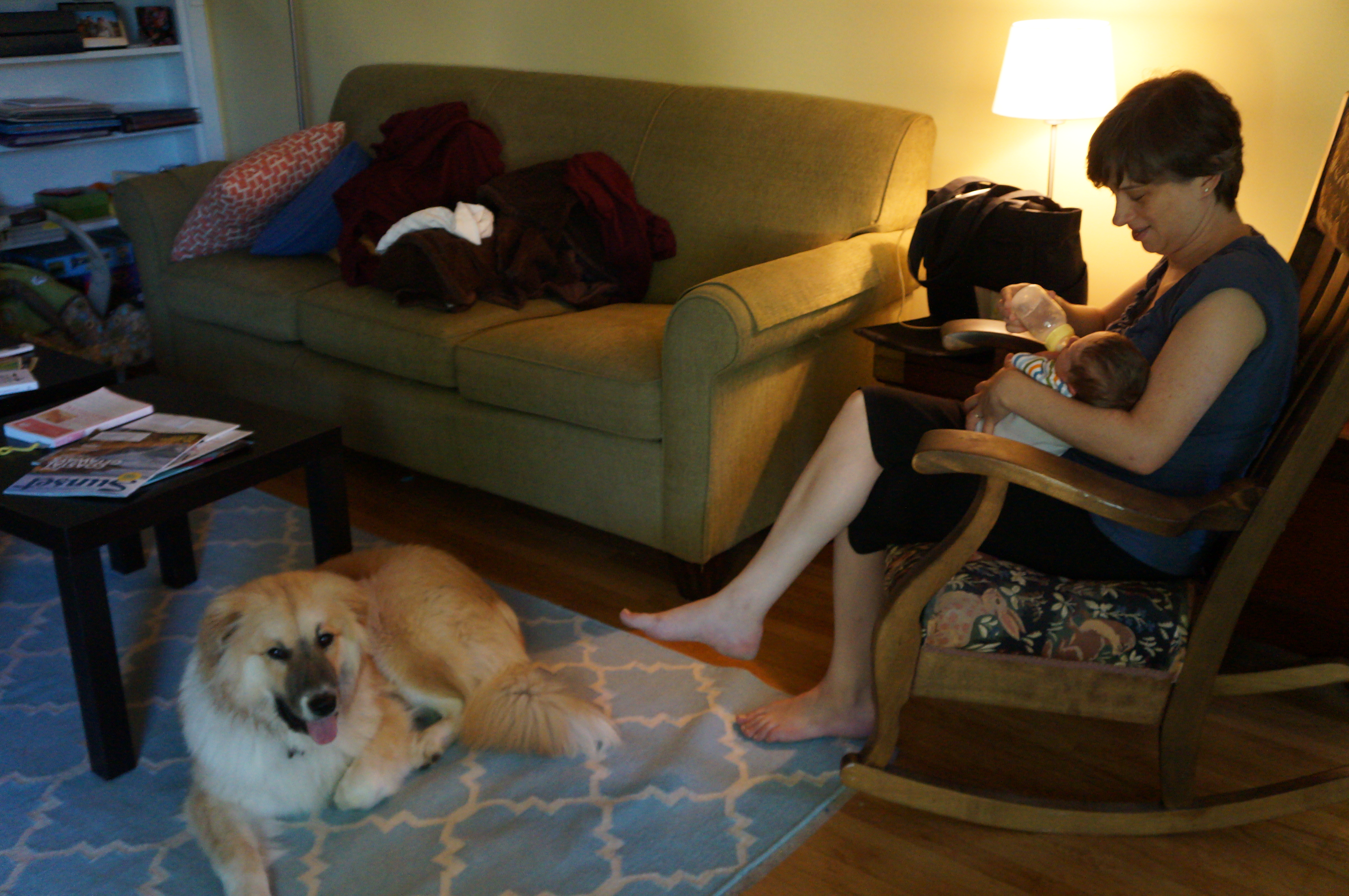 Here are some pictures of me feeding Ari a bottle of pumped milk. He’s had no problem taking a bottle, so that should be fine when I go back to work. Apparently I’m lucky and not all babies will take a bottle so easily.