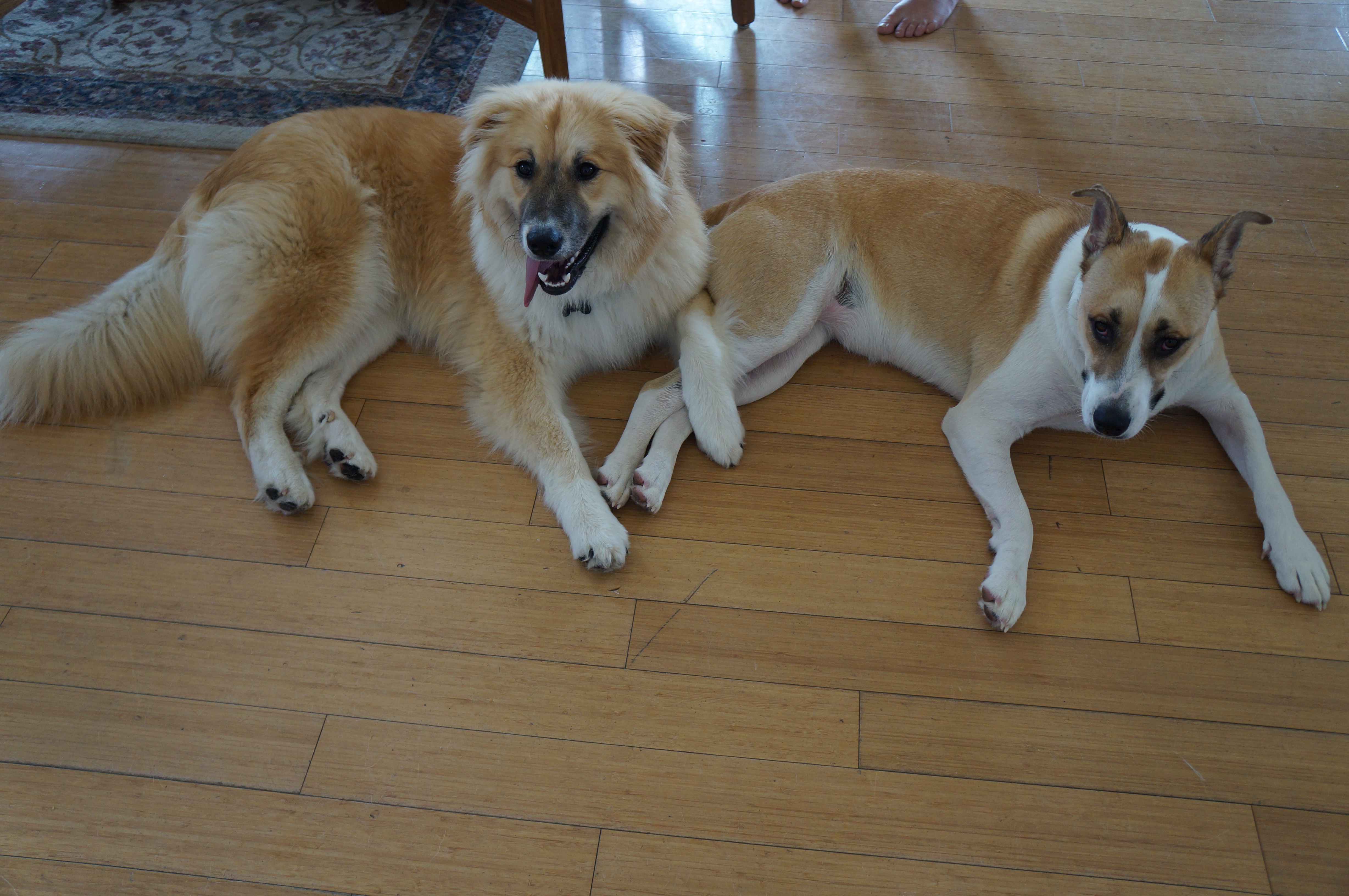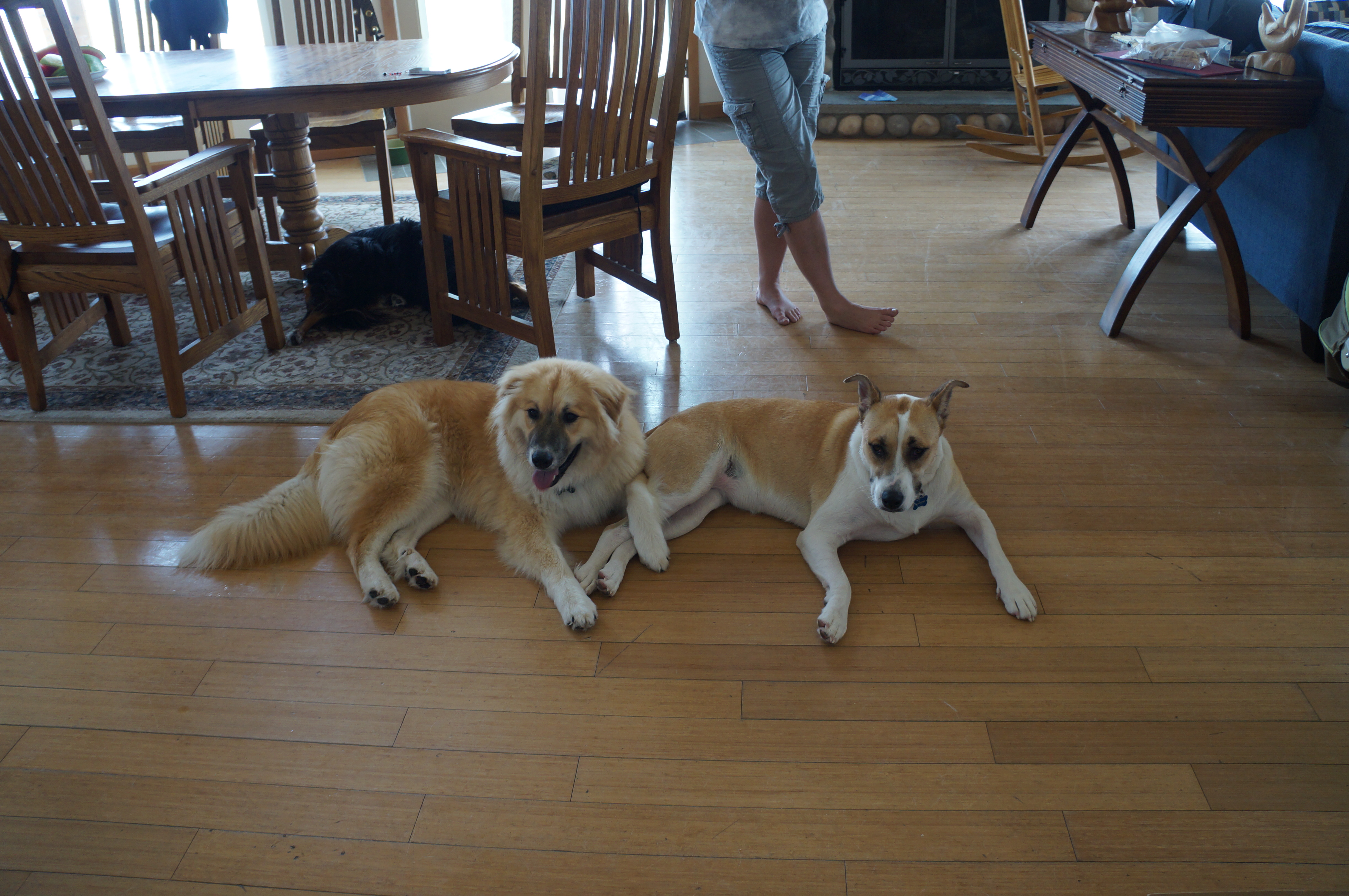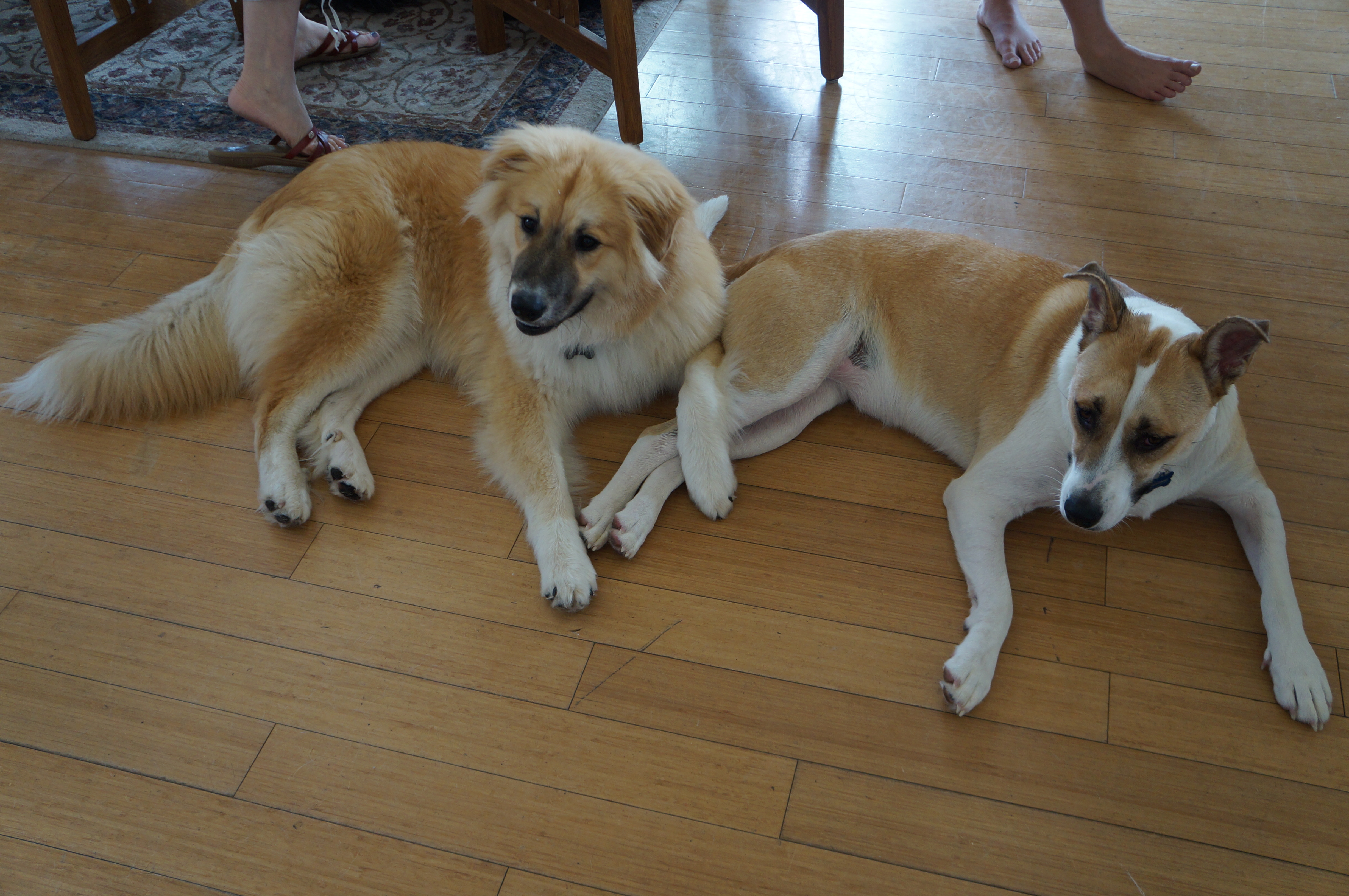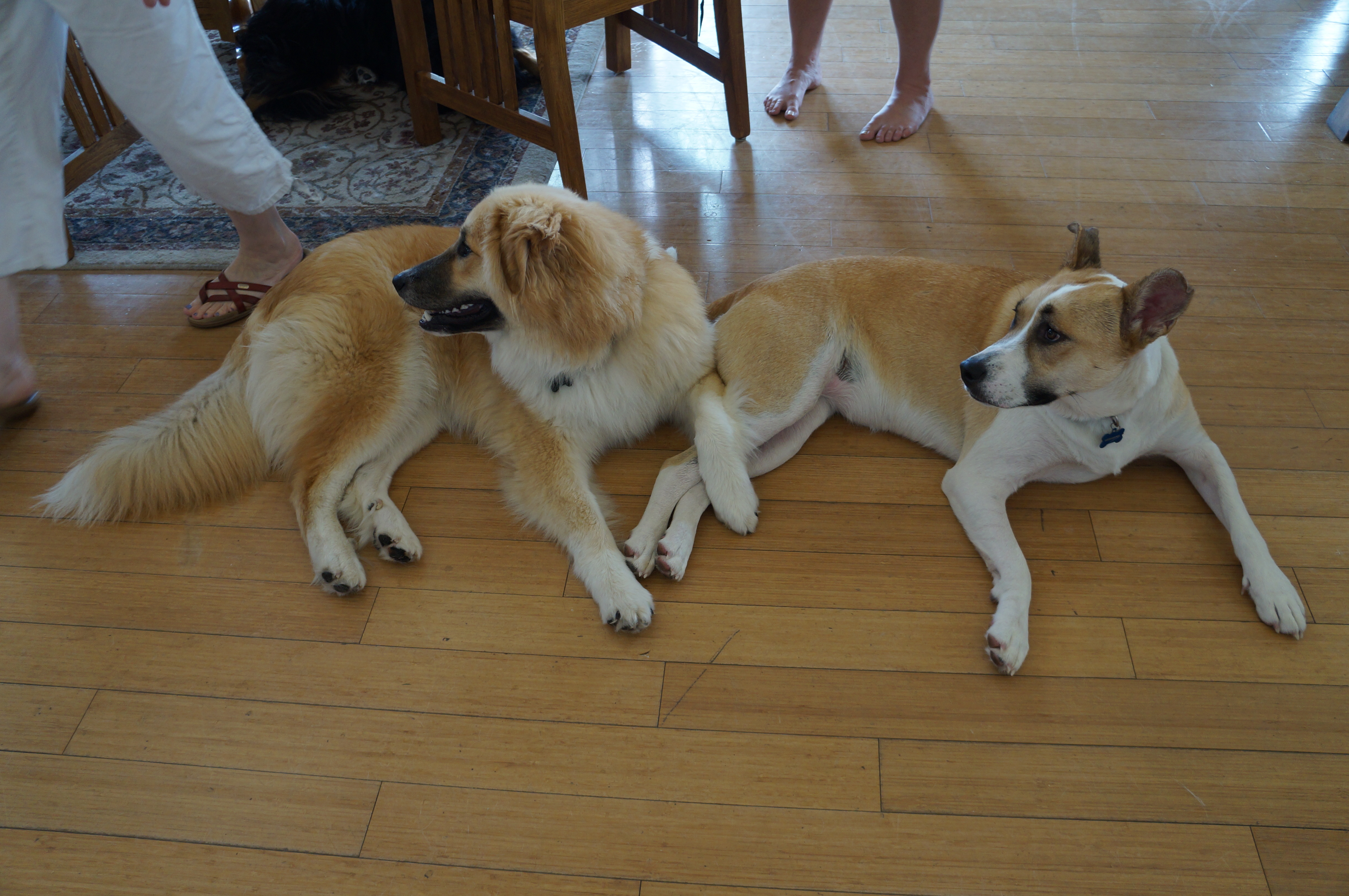 He played with his cousins Luna, Shaka, and Leia. He and Leia met for the first time on this trip. They’re close in age and once they got to know each other, they were playing practically nonstop, and cuddling and licking each other. But Andrew snapped at her when she got too close to Ari!