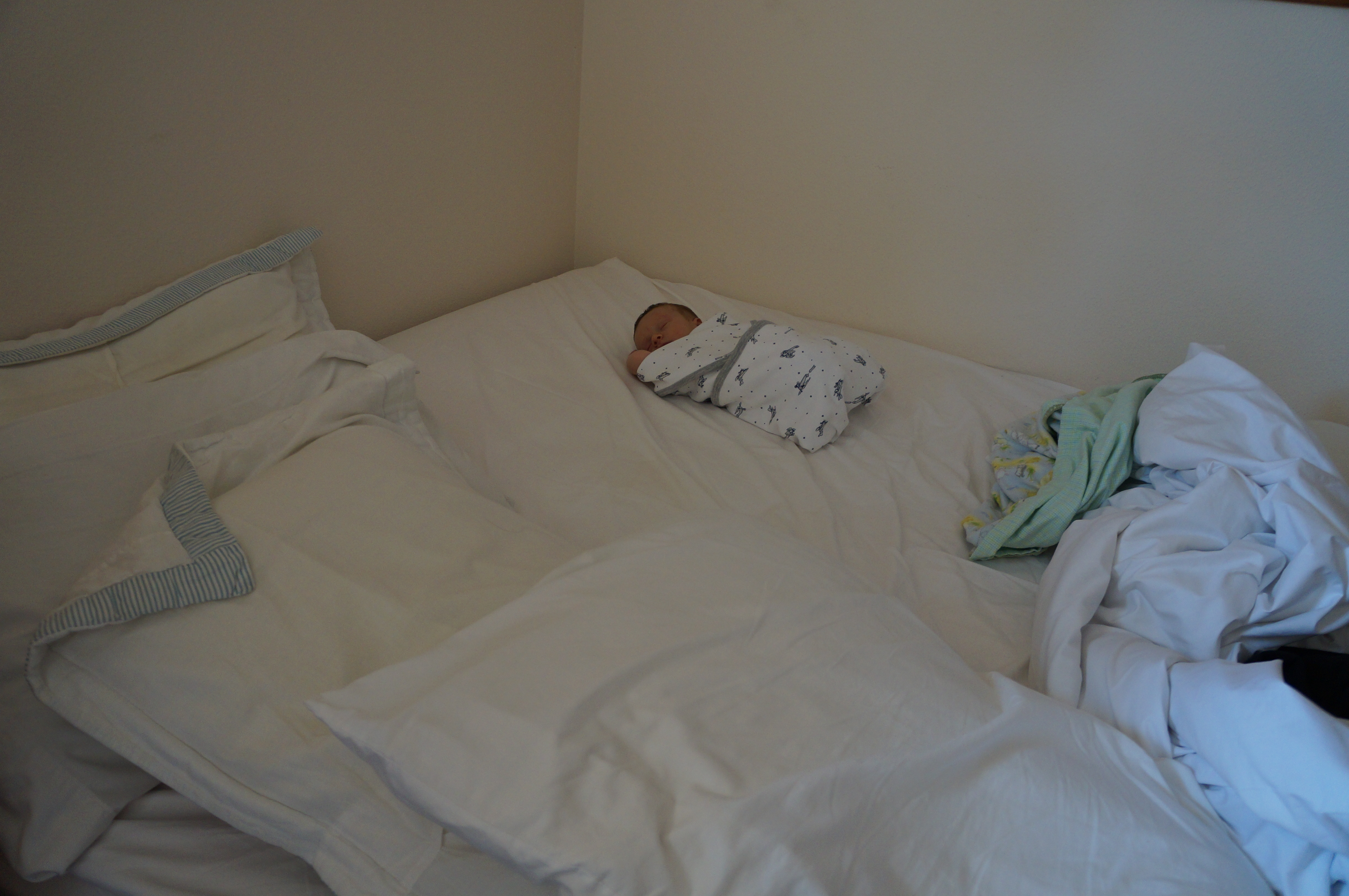 I’ve spent the past several days trying to figure out how to get anything done at home with a baby who doesn’t want to sleep in his bassinet. Sometimes the swing works for a little while but mostly I seem to have to hold him all the time. It’s pretty good if I get to eat breakfast and brush my teeth before noon! One day I didn’t shower until A. got home. Yesterday I got partway through a shower before I heard him crying and decided my hair didn’t need any conditioner. Today I got a whole shower AND brushed my teeth in one stretch with him in his bassinet! Yesterday I wanted to go to the bank and deposit some checks. I got a few minutes with my hands free to find the checks, then later I got a few minutes again to endorse them, but then it was too late to go to the bank! Today I finally made it to the bank. Then I wanted to pop in for a couple things at a store but after I parked I decided it wasn’t worth the effort of getting Ari out of the car so I just went home. But a guy in line behind me at the bank had said his wife was pregnant with twins, and I thought, THAT sounds impossible! Being pregnant with twins sounded hard enough, then I couldn’t imagine breastfeeding with twins, then I couldn’t imagine getting anything done at home with twins, and now I can’t imagine running errands with twins. He said they’re scared, and I was thinking, yeah, you should be! But I didn’t say that.