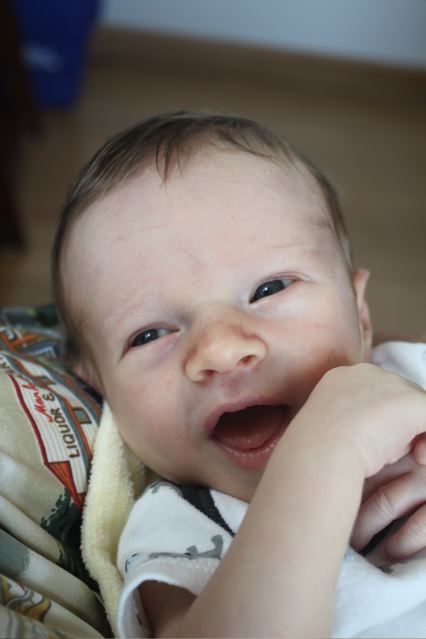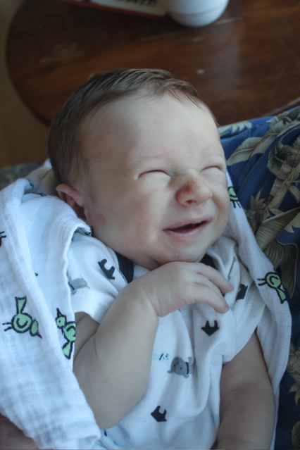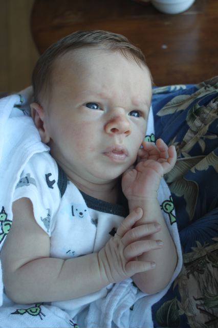 I didn’t get a 3-week picture like this because we were at the coast, but here’s his 4-week shot!