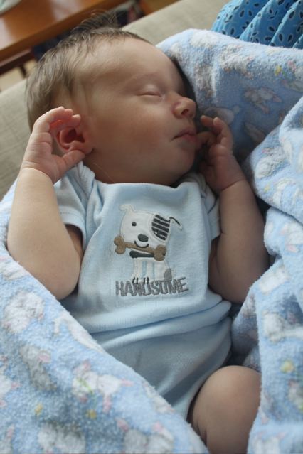 I took a lot of pictures of him sleeping, and a couple when my grandma called me over because he had his hands folded together and it was very sweet.