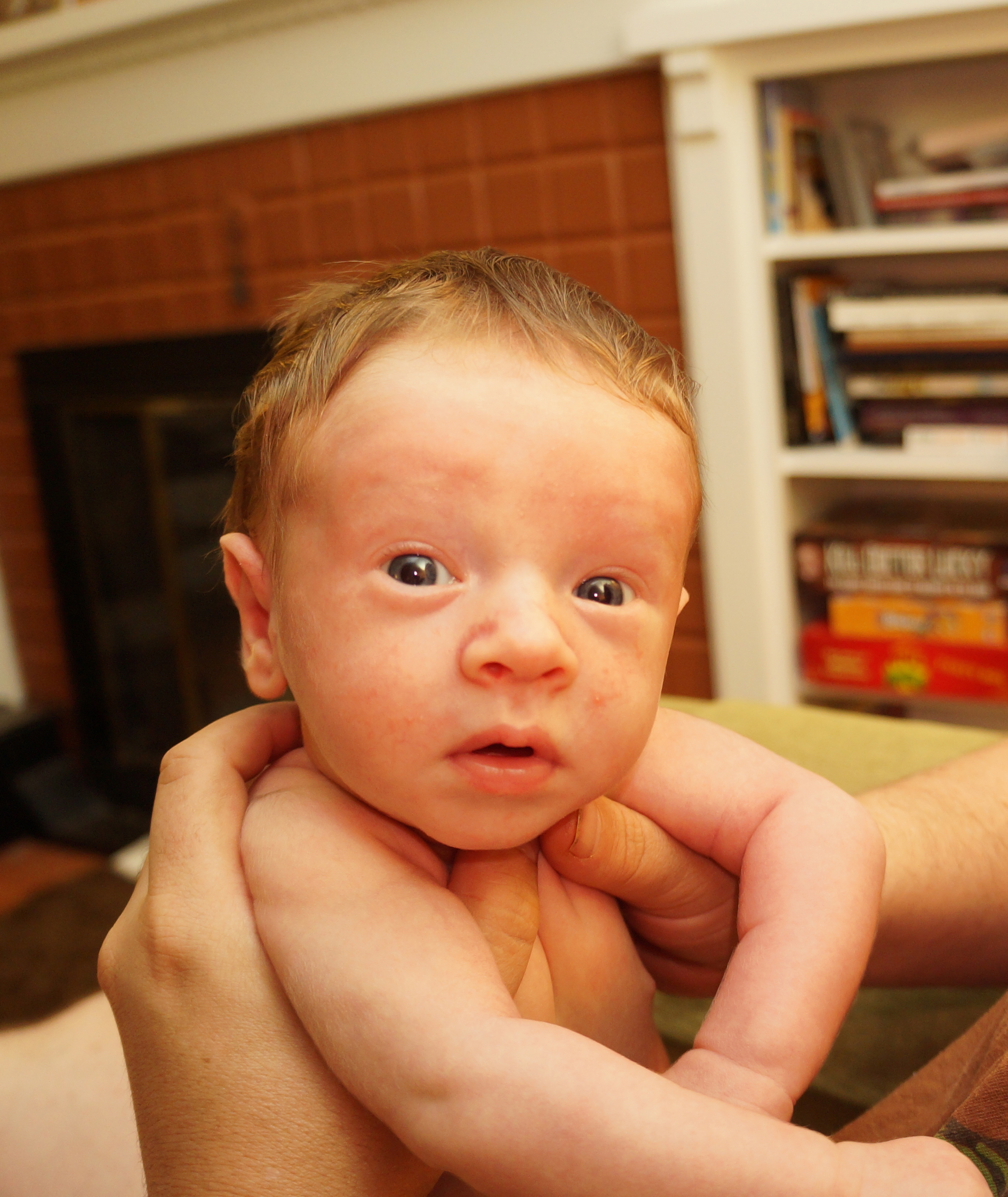 Here he’s having some “quality time” with his daddy. Mostly they were looking at each other but he looked at the camera for a few pictures, too: