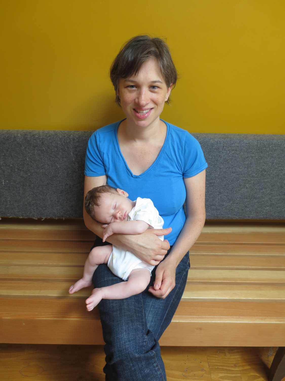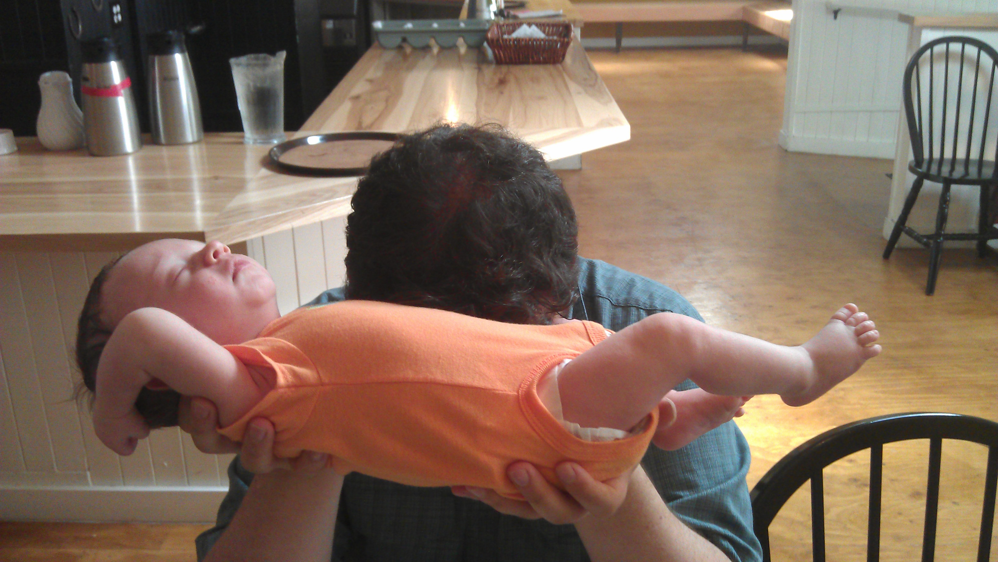 Here is A. reading the menu at our favorite breakfast place, down the street. Ari is asleep. He’s a great sleeper as long as he’s not in his crib or bassinet!