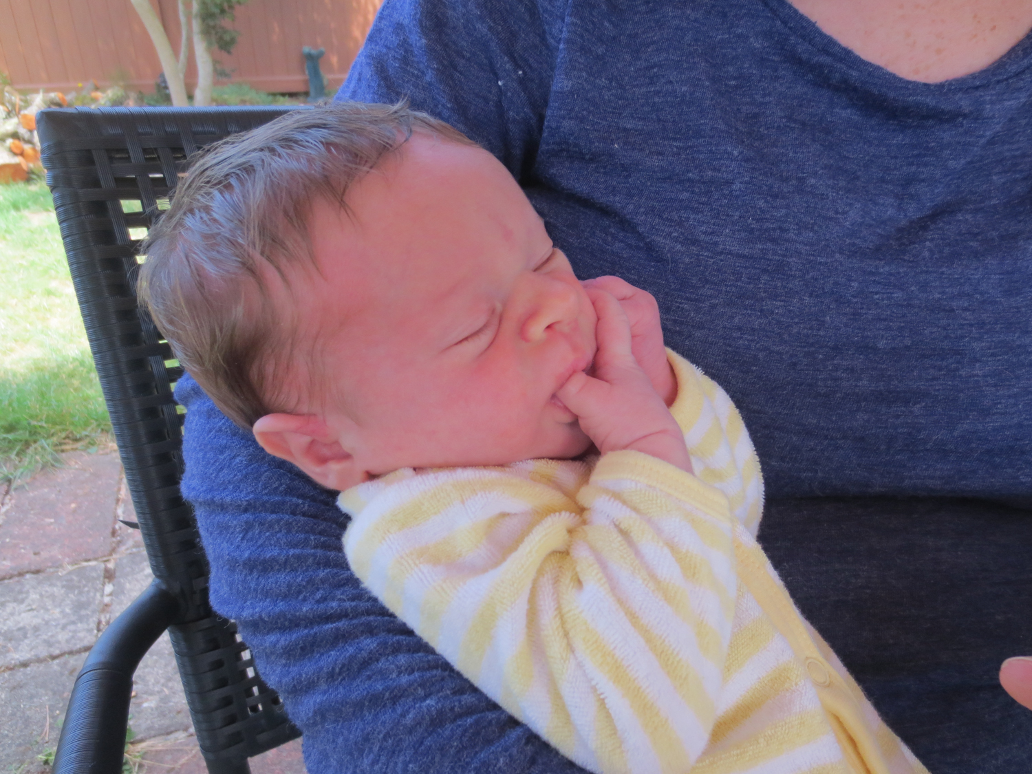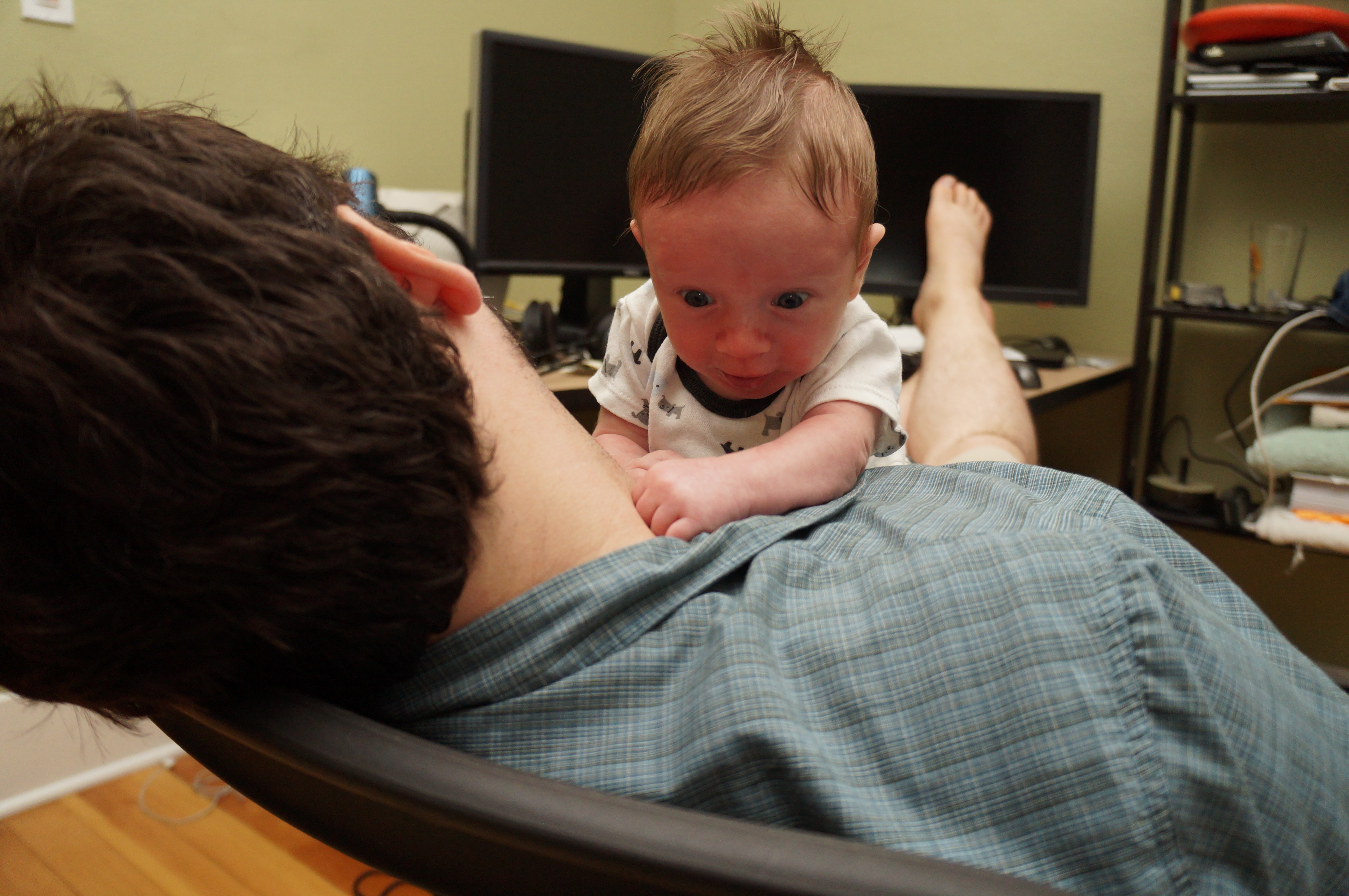 Today I was reading about elimination communication (EC) in my Diaper-Free Baby book. I decided to try it out and a few times when I’ve noticed him squirming and grunting I’ve taken his diaper off and held him over the toilet, holding his legs up in a sitting position, and he’s gone to the bathroom in the toilet three times today! It’s not like I think he’s potty training already, but it’s nice to save a few diapers!