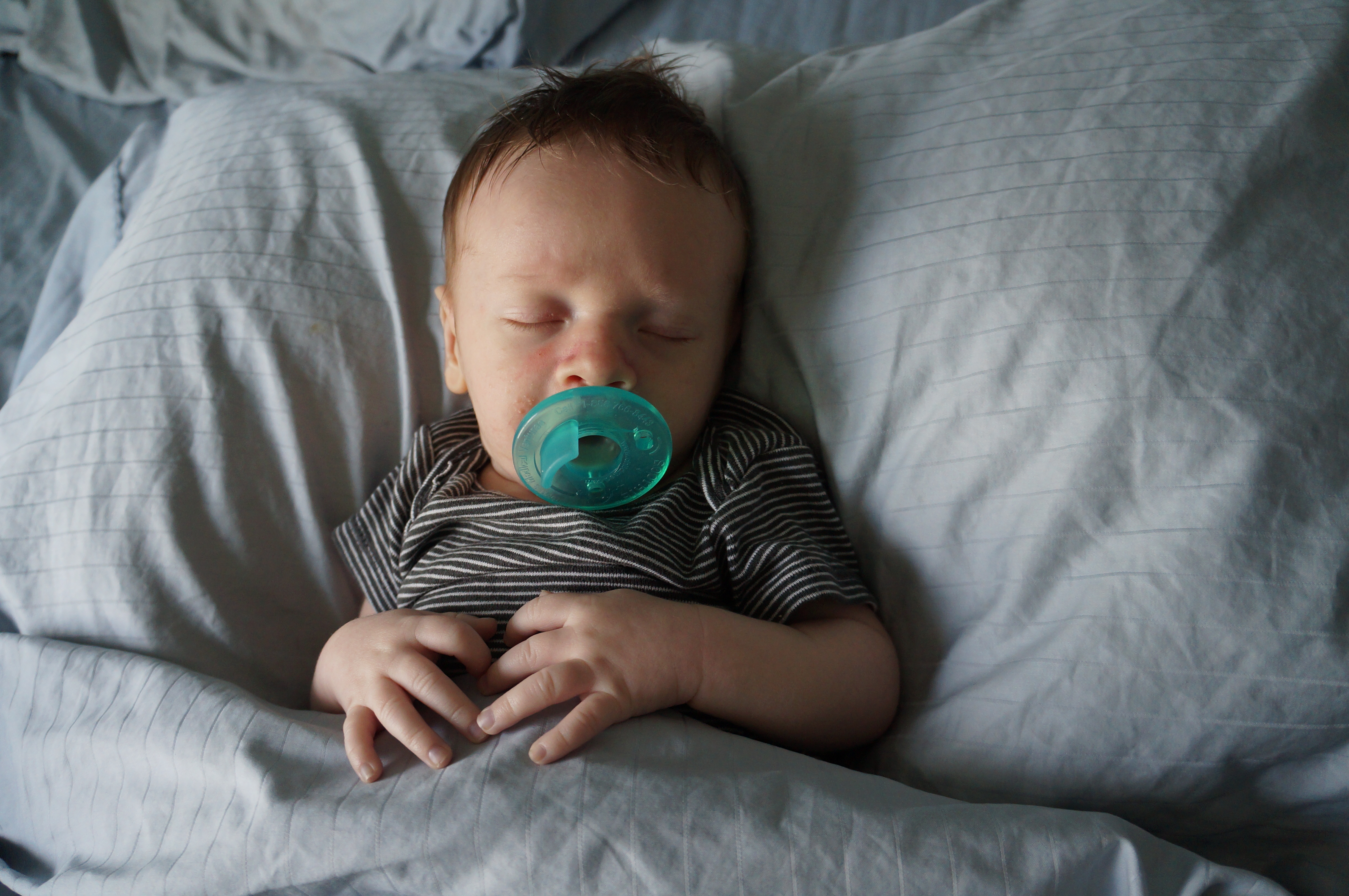 This is the only way I got Ari to sleep one day. I stayed in the room folding laundry on the bed. He looks so tiny!