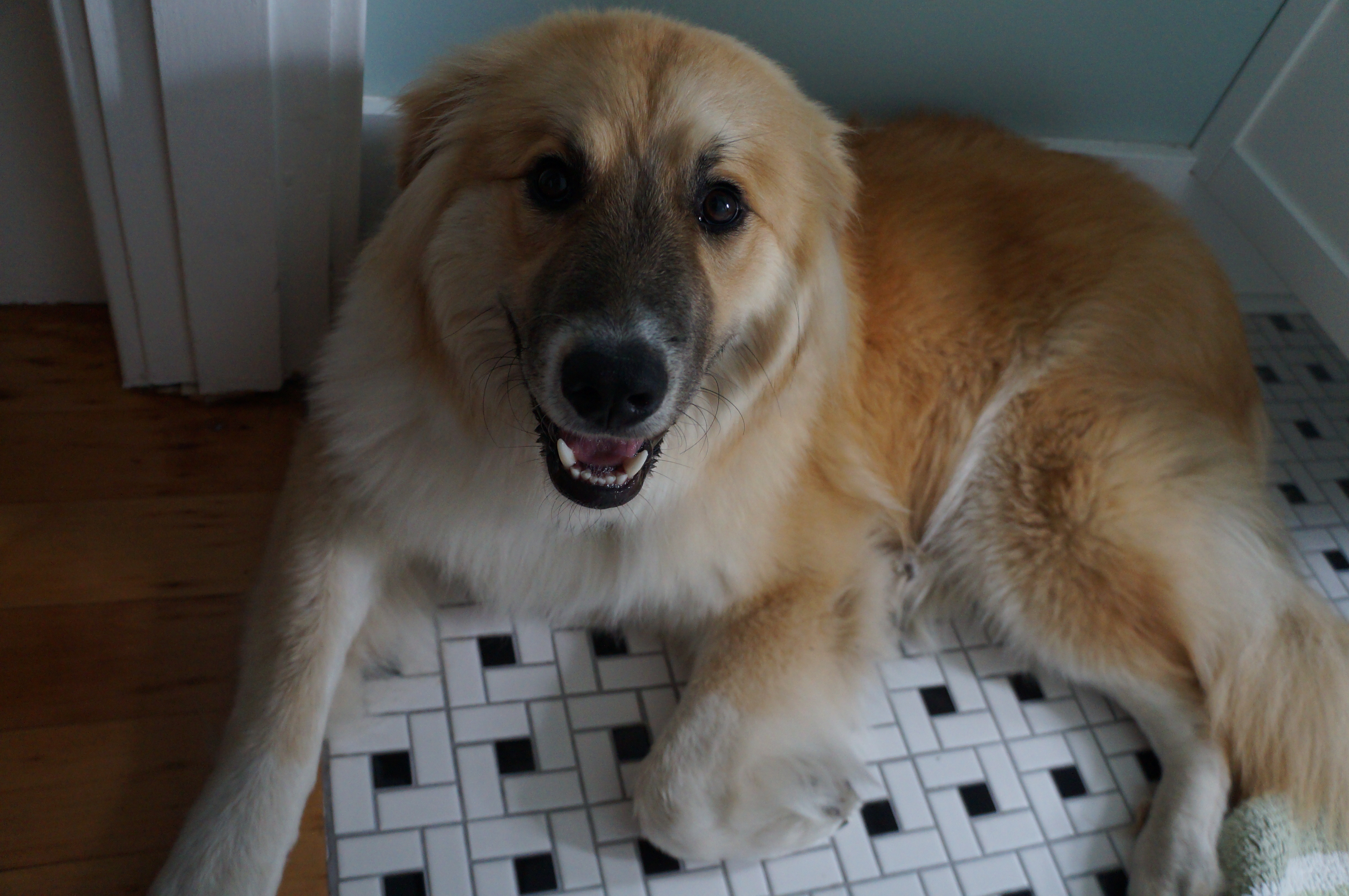 Andrew has been good and very nice to Ari but he’s wanted more attention lately and has been sticking toys in our laps and trying to get us to play with him (which we usually do). He’s also got some bad behaviors we need to work on: excessive barking, pulling on the leash, lunging and barking at other dogs when we’re out for walks, and protectiveness of his favorite ball. At the dog park he runs at other dogs, barking and growling viciously, if he thinks they might have glanced at his ball. The worst part is, he did the same thing to a friend we had over who tried to play fetch with him. He has no problem letting me or A. take his ball, but now we know that courtesy does not extend to all humans. A. has been trying to help him burn some mental energy and practice self control by running through obedience commands and teaching him sit and down and stand stays, which he has picked up really quickly.