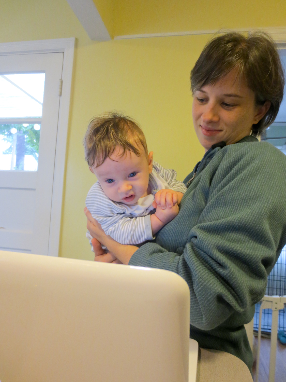 This week has been a nice, normal, unexciting week, except that our nanny is out of town so A.’s mom is staying with us to take care of Ari during the day. I’ve made it through all my work shifts and we had a very nice dinner out with friends at one of our favorite restaurants, as a late birthday celebration for me. Ari was very good during dinner. We passed him around while he was awake, and he nursed, then he fell asleep straddling my lap with his head on my chest – so sweet! I love those moments.