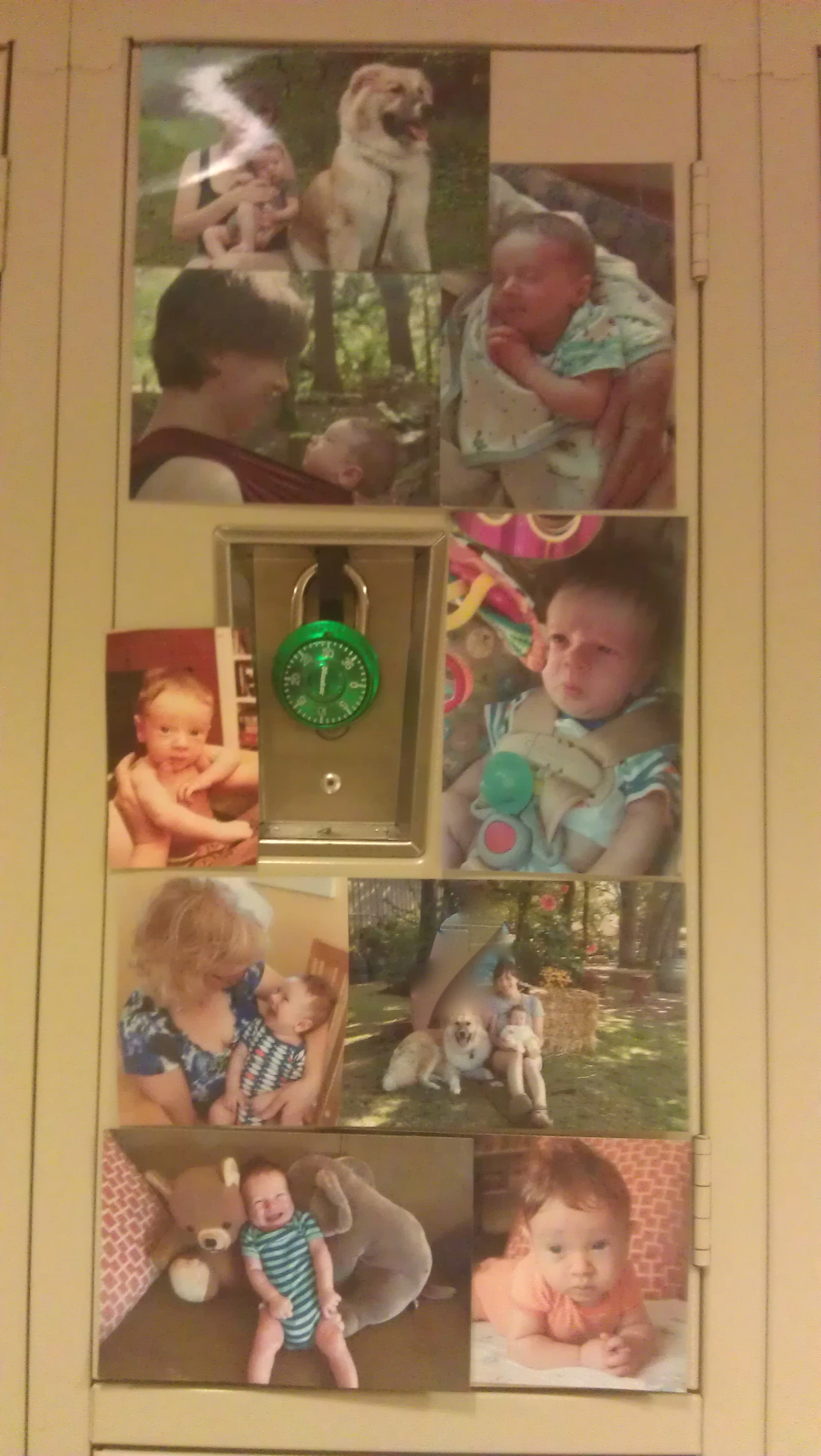 Here is my locker at work, ridiculously plastered with pictures of Ari: