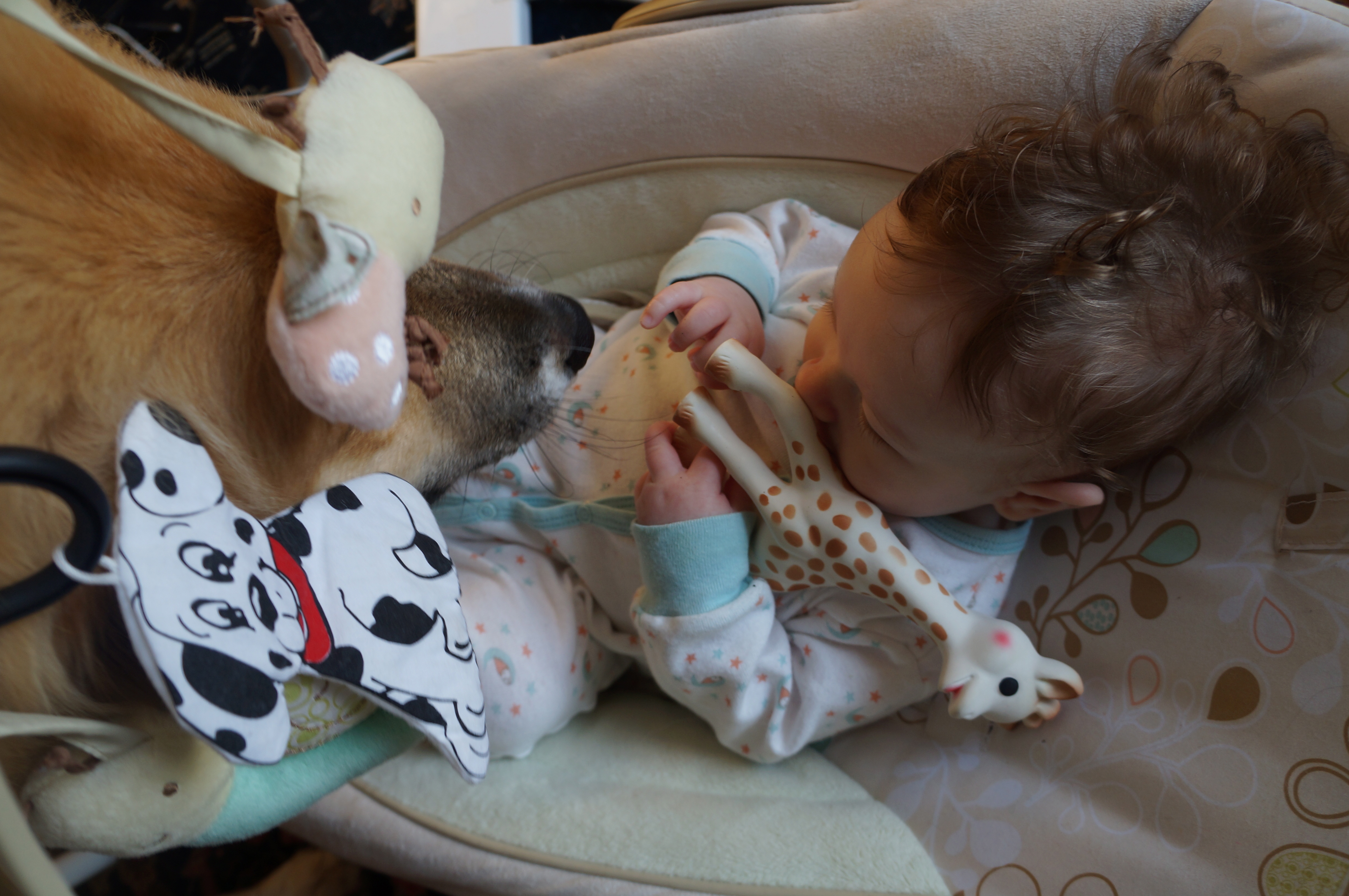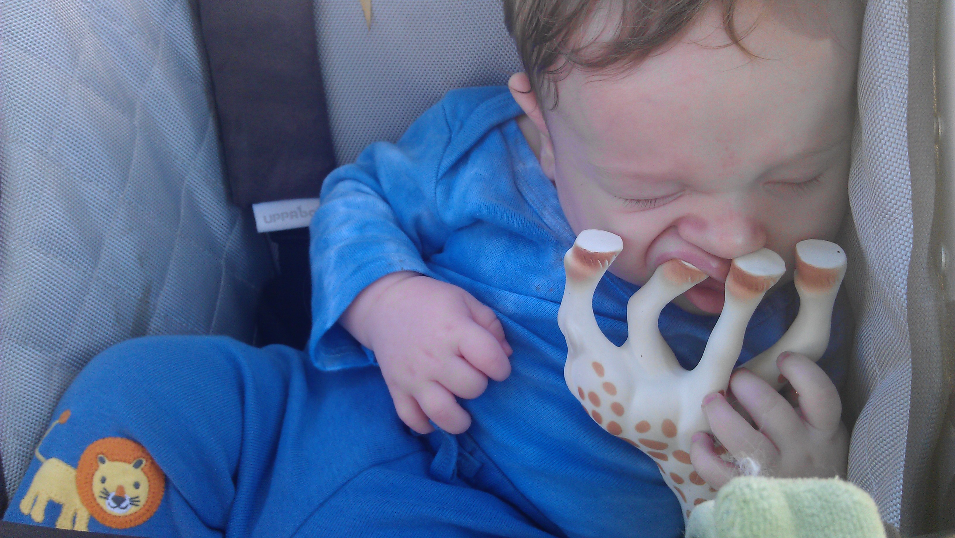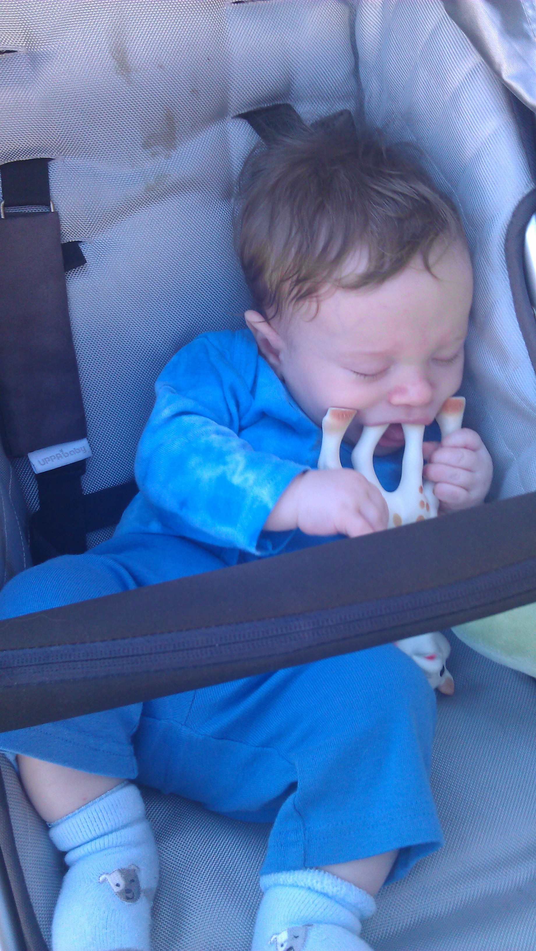 And on a walk yesterday – he fell asleep with Sophie in his mouth!