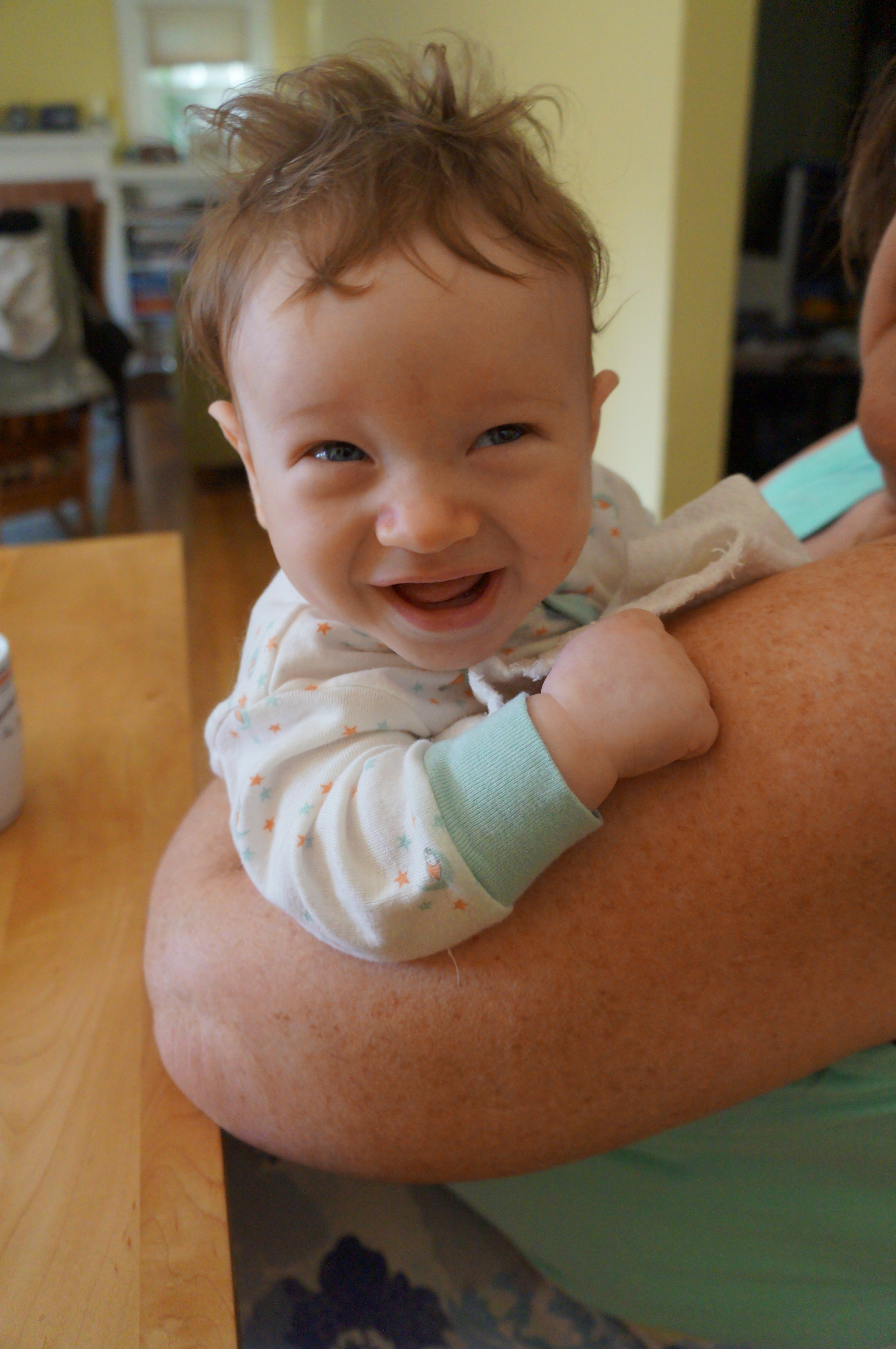He’s also been pulling hair a lot more, and he’s got quite a grip!