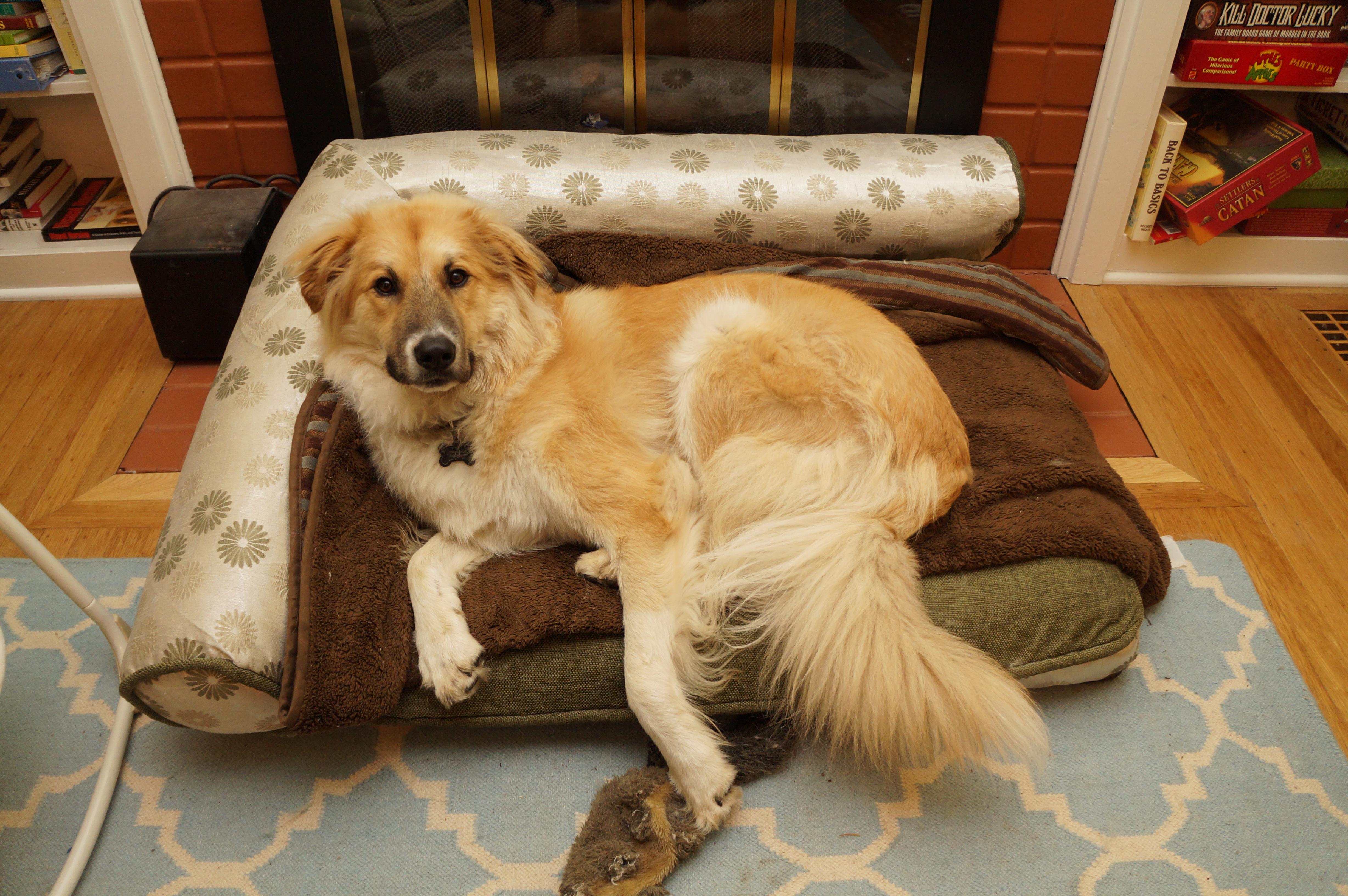 Andrew got a new bed, the cozy bolster kind I always wanted to get Caleb that Costco now carries: