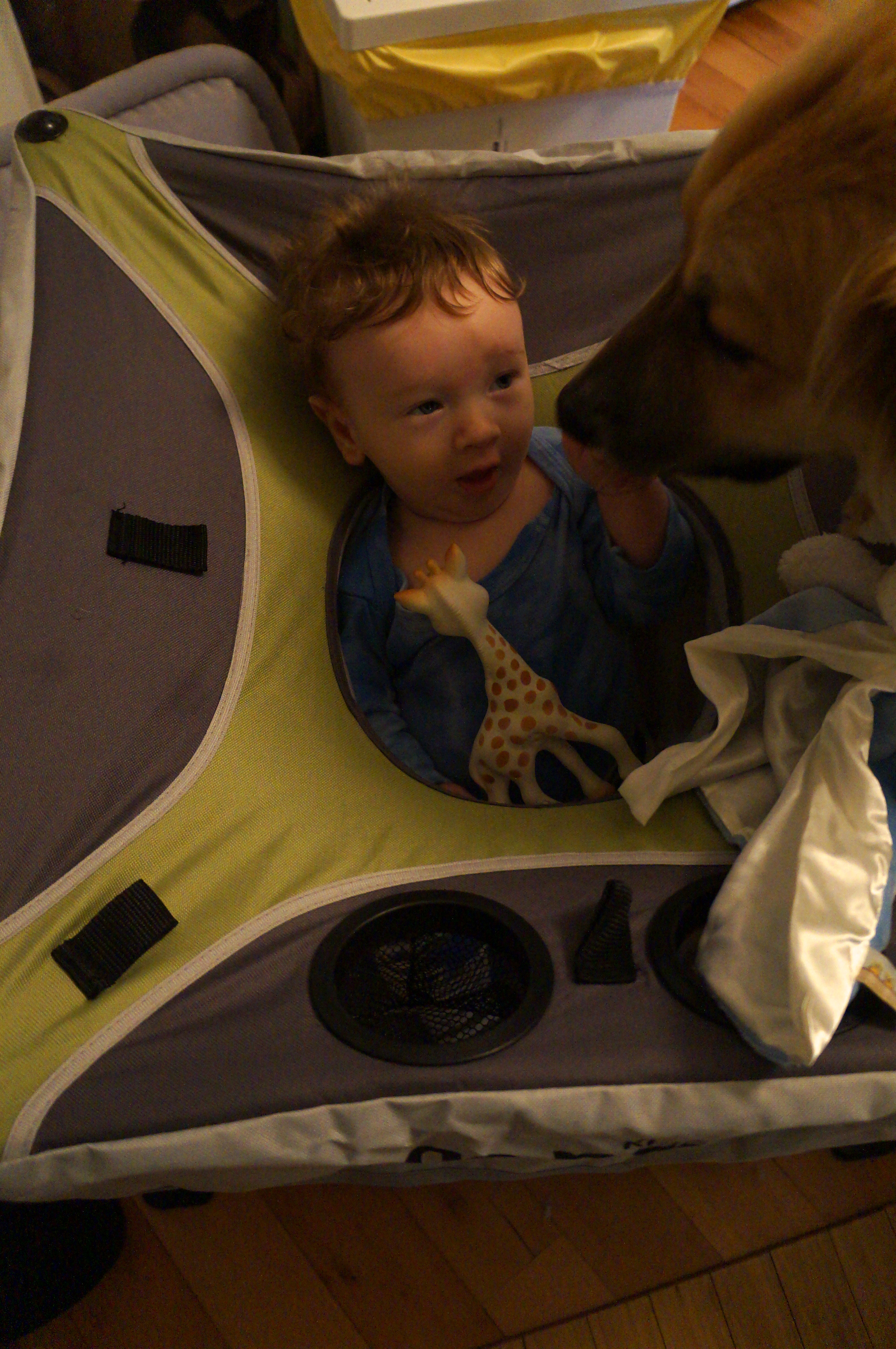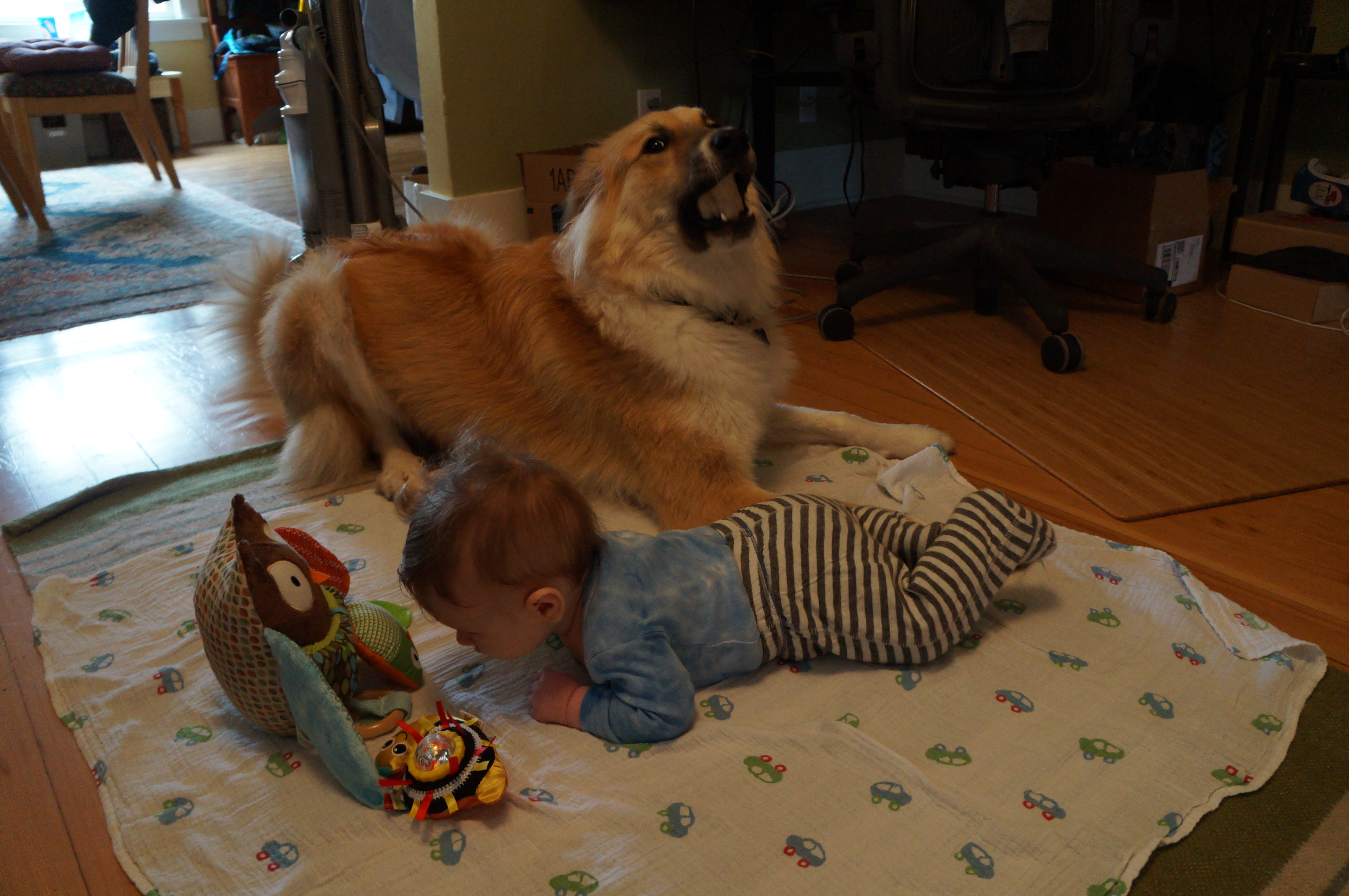 Andrew wants to be a part of tummy time – but shortly after this he got too excited and scratched Ari’s head, so a playpen has been ordered: