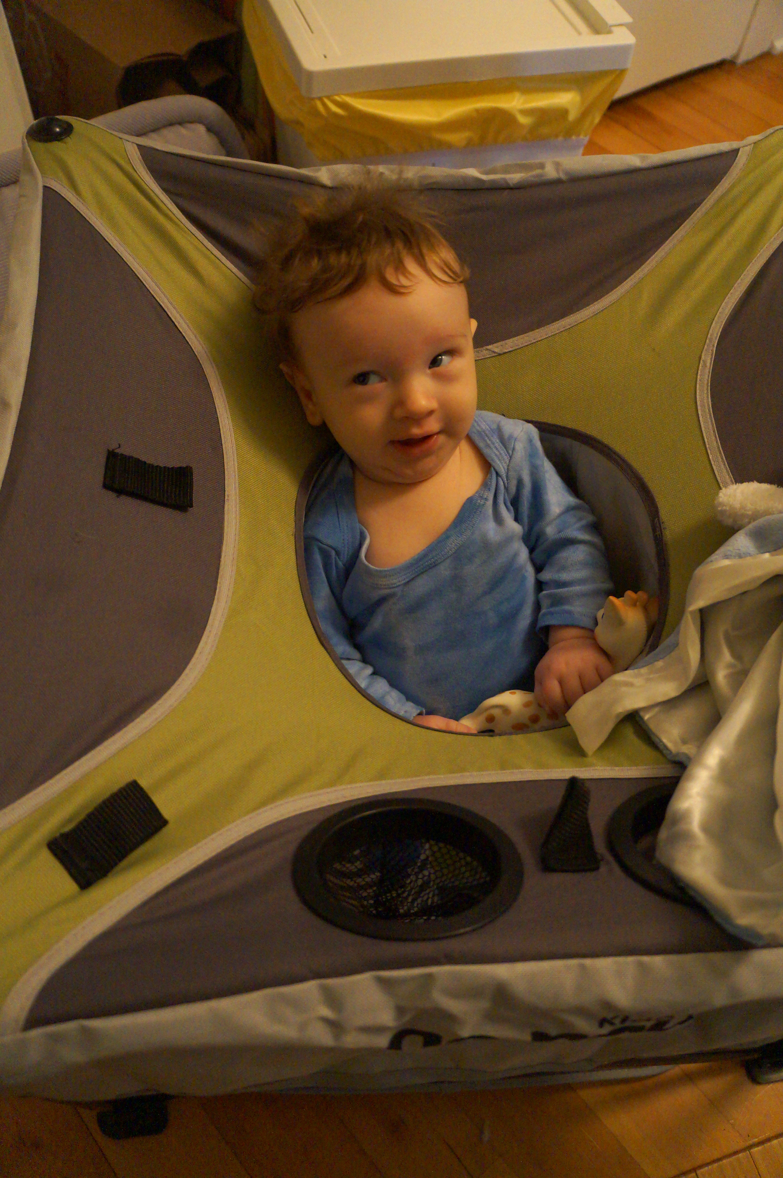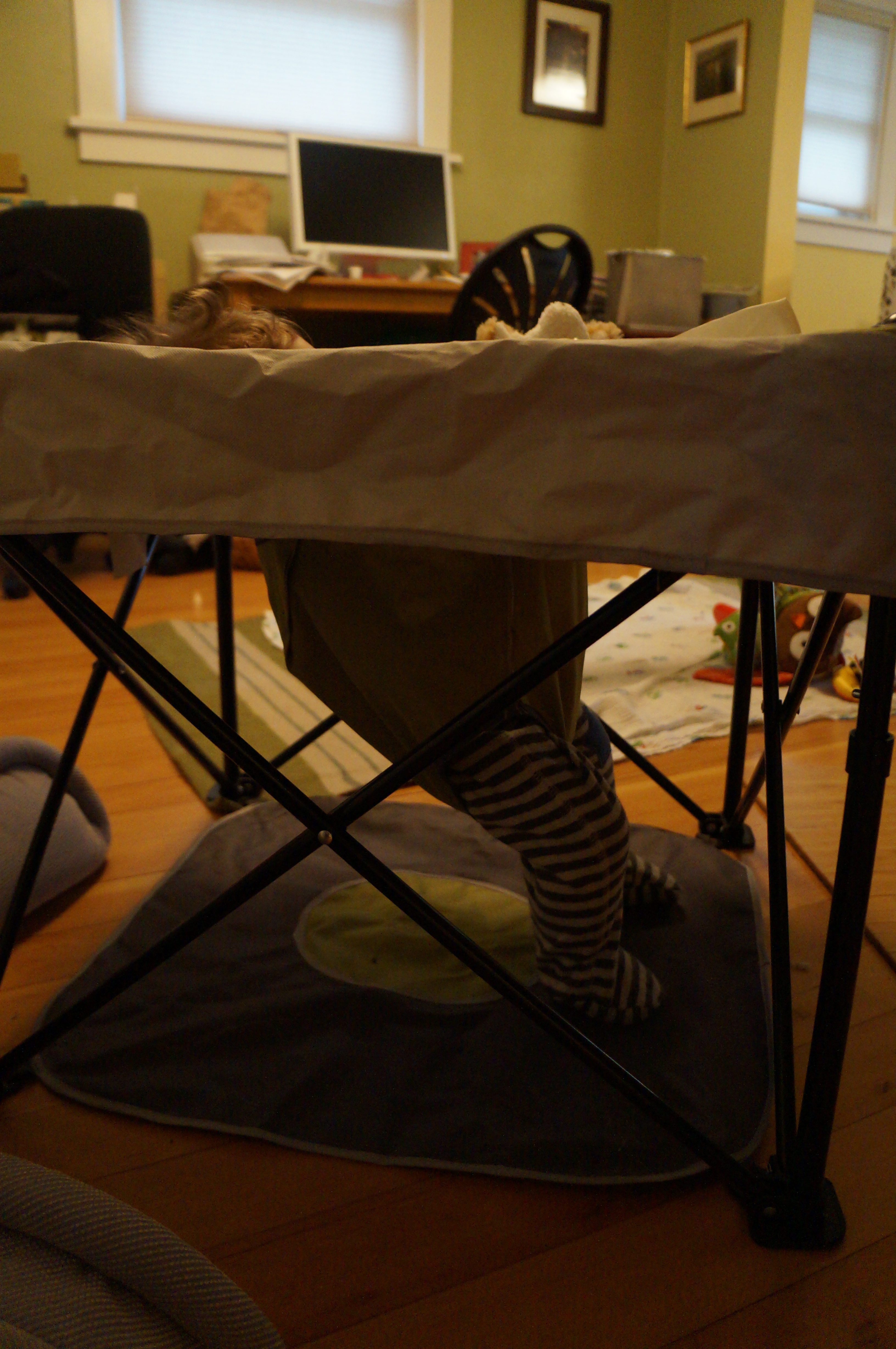 I think he had a growth spurt in the last couple of weeks (he’s been eating a lot!) and all of a sudden he can put his feet on the floor when he’s in the Go-Pod. He likes it better now:
