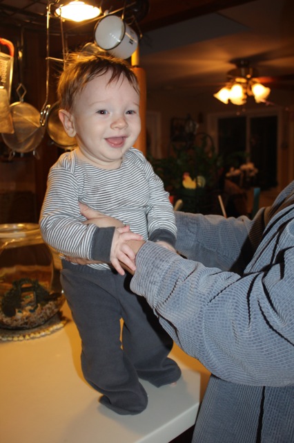 1. Aw! I love the dog pictures! I especially love’s Andrew’s expression in the third picture. Does Ari put stuff in his mouth all on his own?
