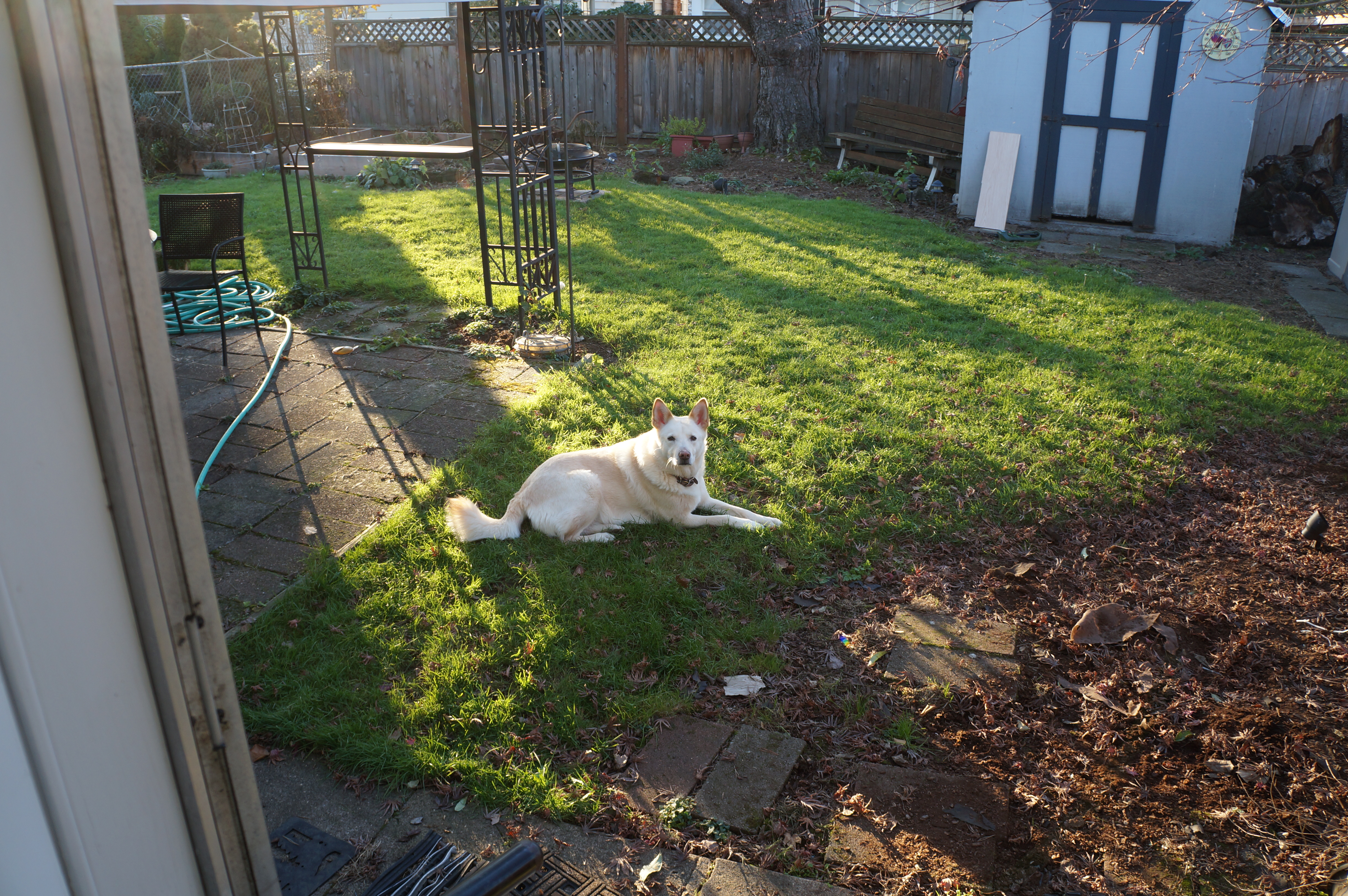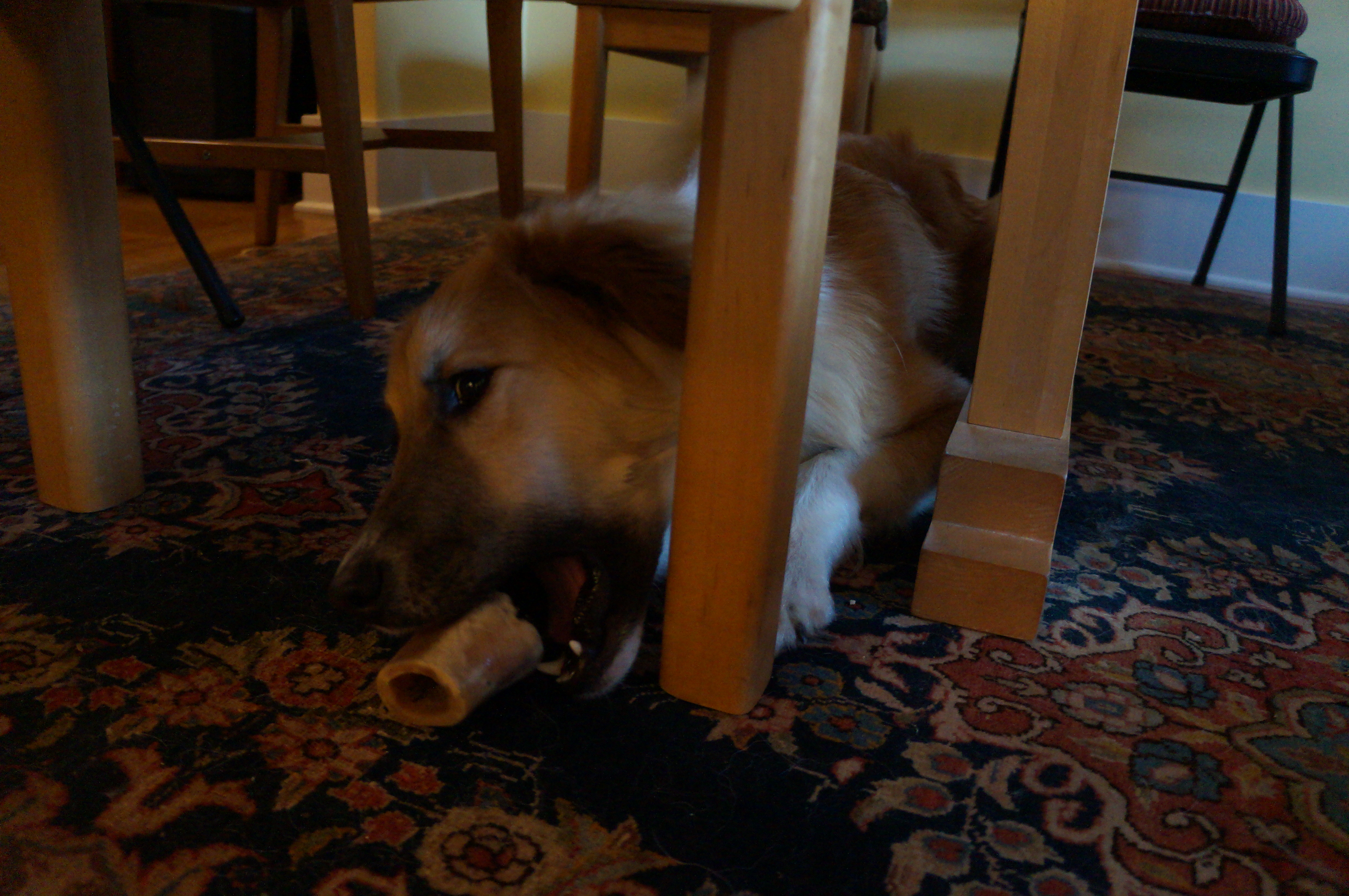 We had a really nice Thanksgiving with lots of family and friends! Both sets of our parents came and stayed in a hotel, along with my grandma and A.’s brother and his wife. A good friend of mine was visiting from Berkeley, and another good friend came over for dinner, too. There were three big dogs – Andrew, my parents’ dog Luna, and my friend’s dalmatian – plus A.’s brother’s dachsund. Ari joined us in his high chair but he didn’t eat anything.