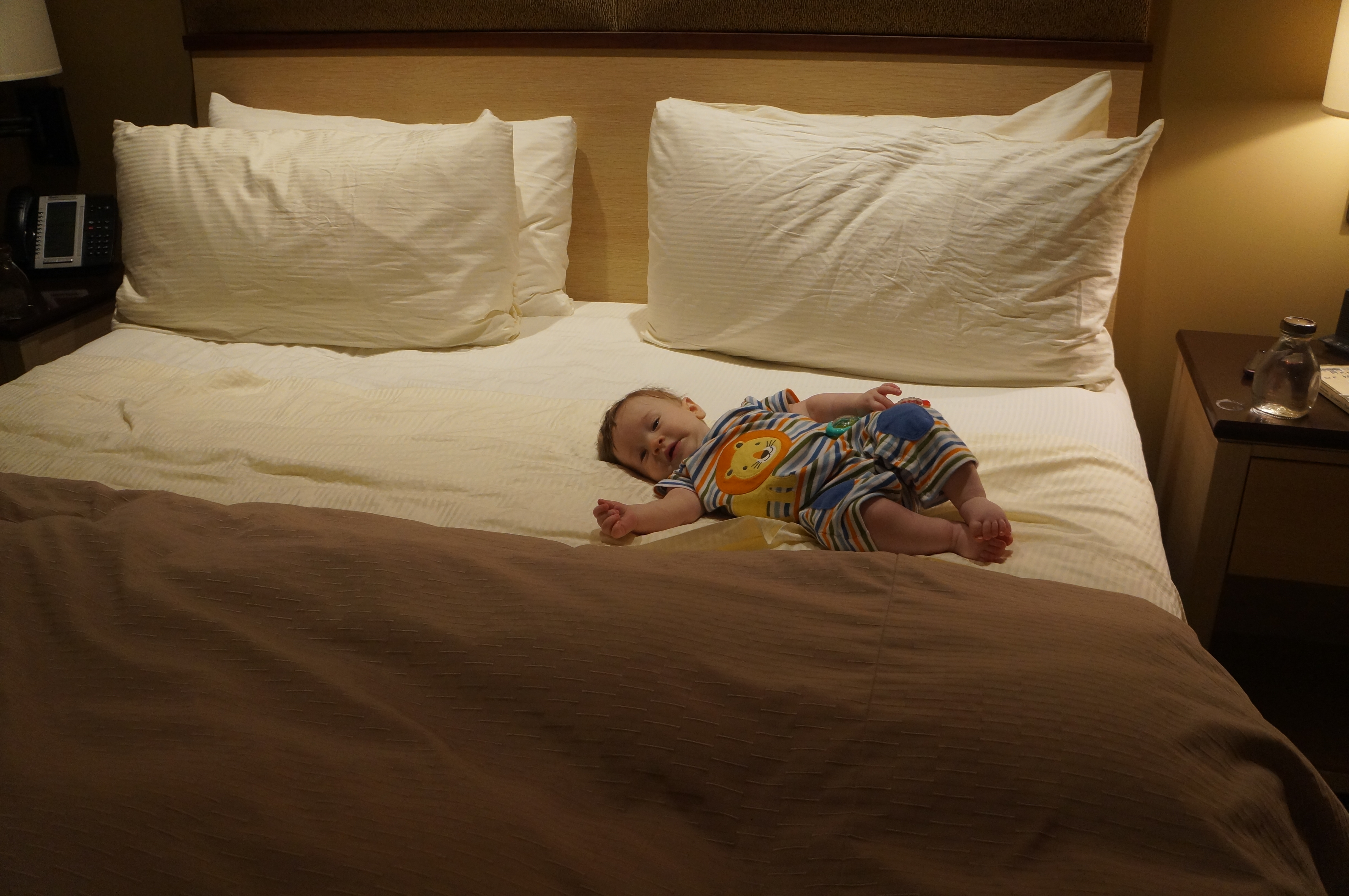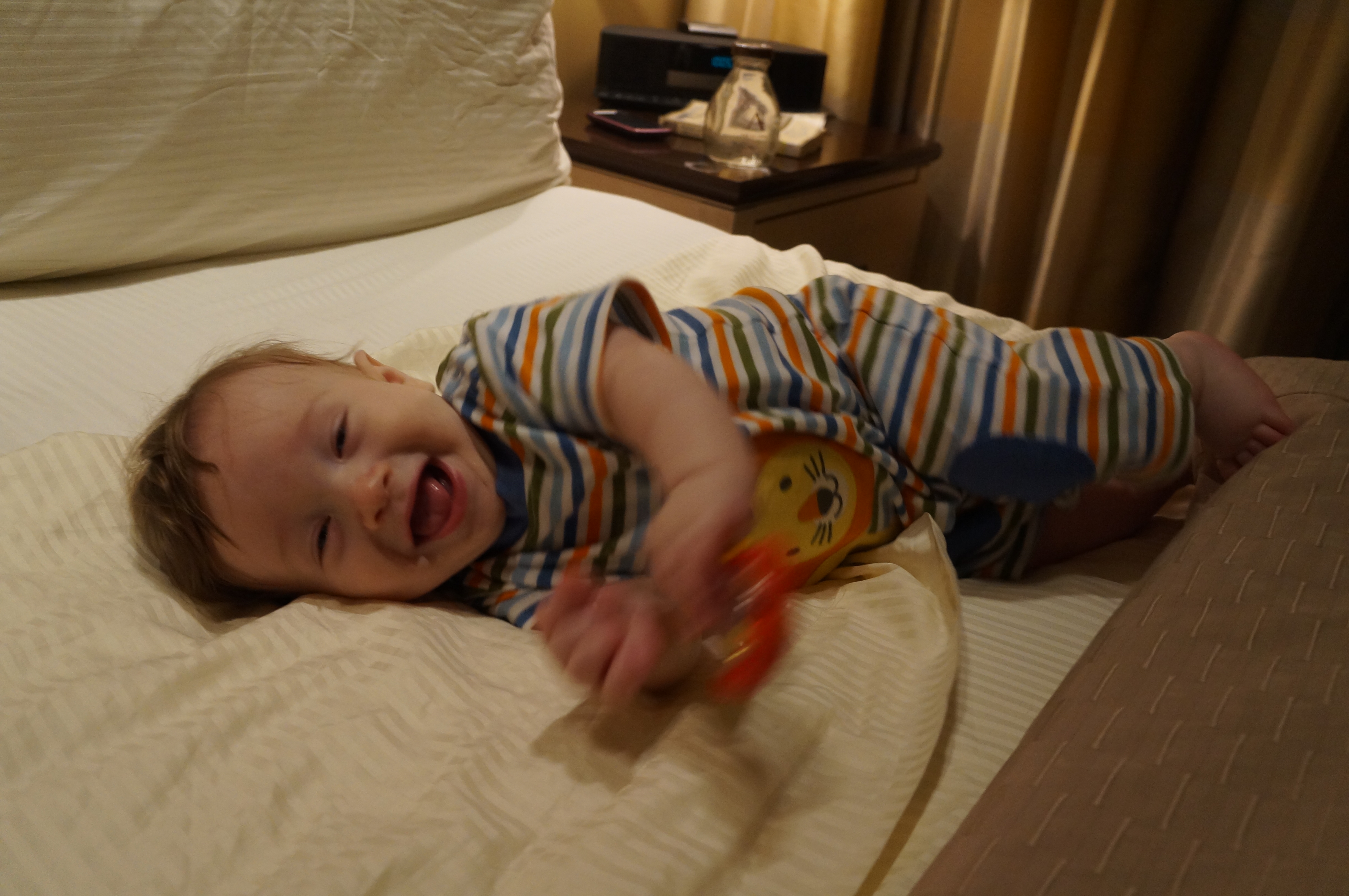 And in the pool! The hotel pool was pretty warm, so we got some swim diapers and took him in it! He was kicking and splashing and grinning for quite a while!