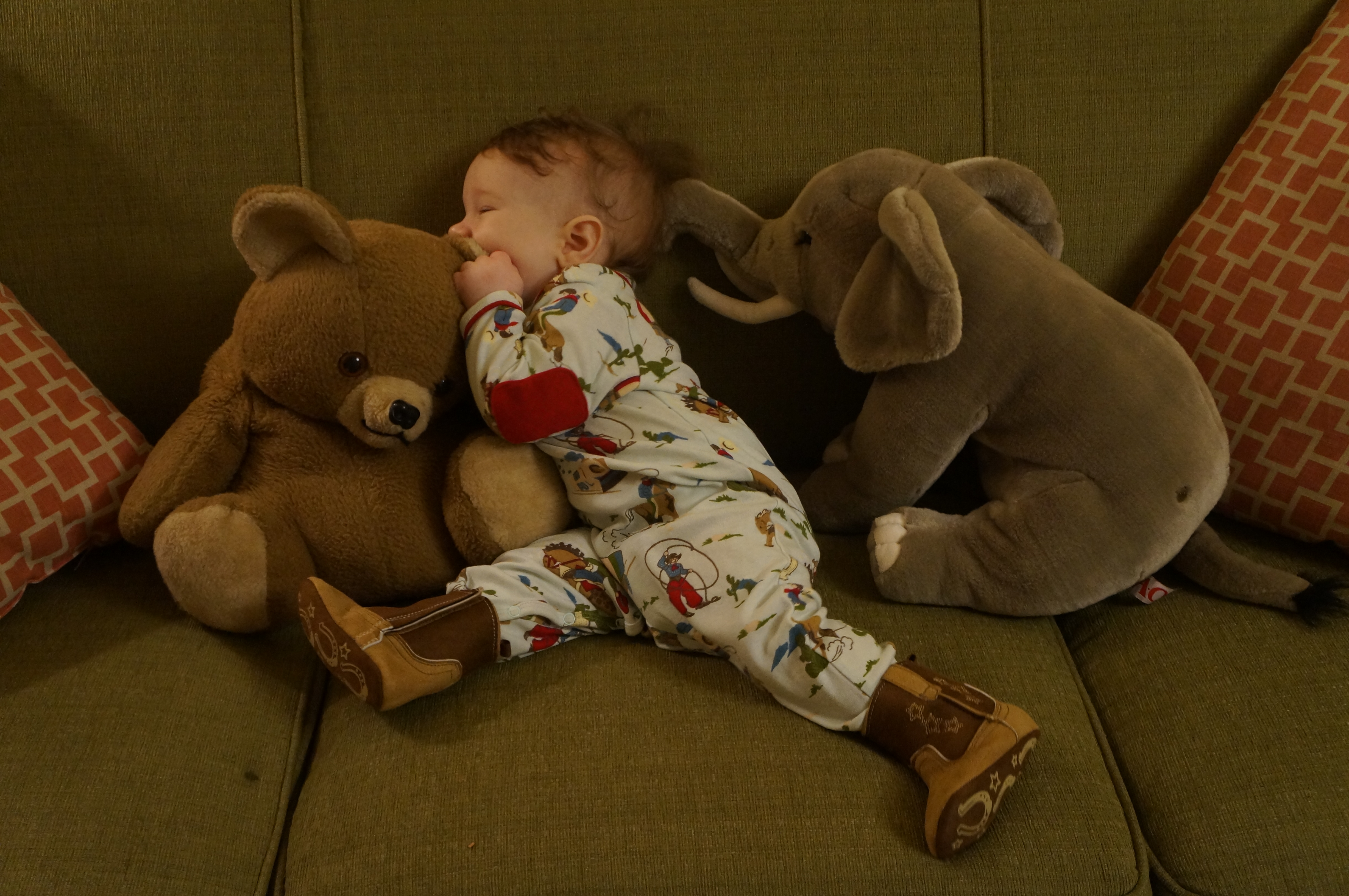 Sleep became the source of a lot of worry for me because I had to go back to work. I wanted to keep cosleeping and nursing you to sleep, but working night shifts wasn’t compatible with that. I hated trying to make you fall asleep in your bassinet, with you crying. It seemed like I had to do something bad for you because I had to go to work, and that made me feel guilty and angry. But your dad became very good at getting you to sleep!