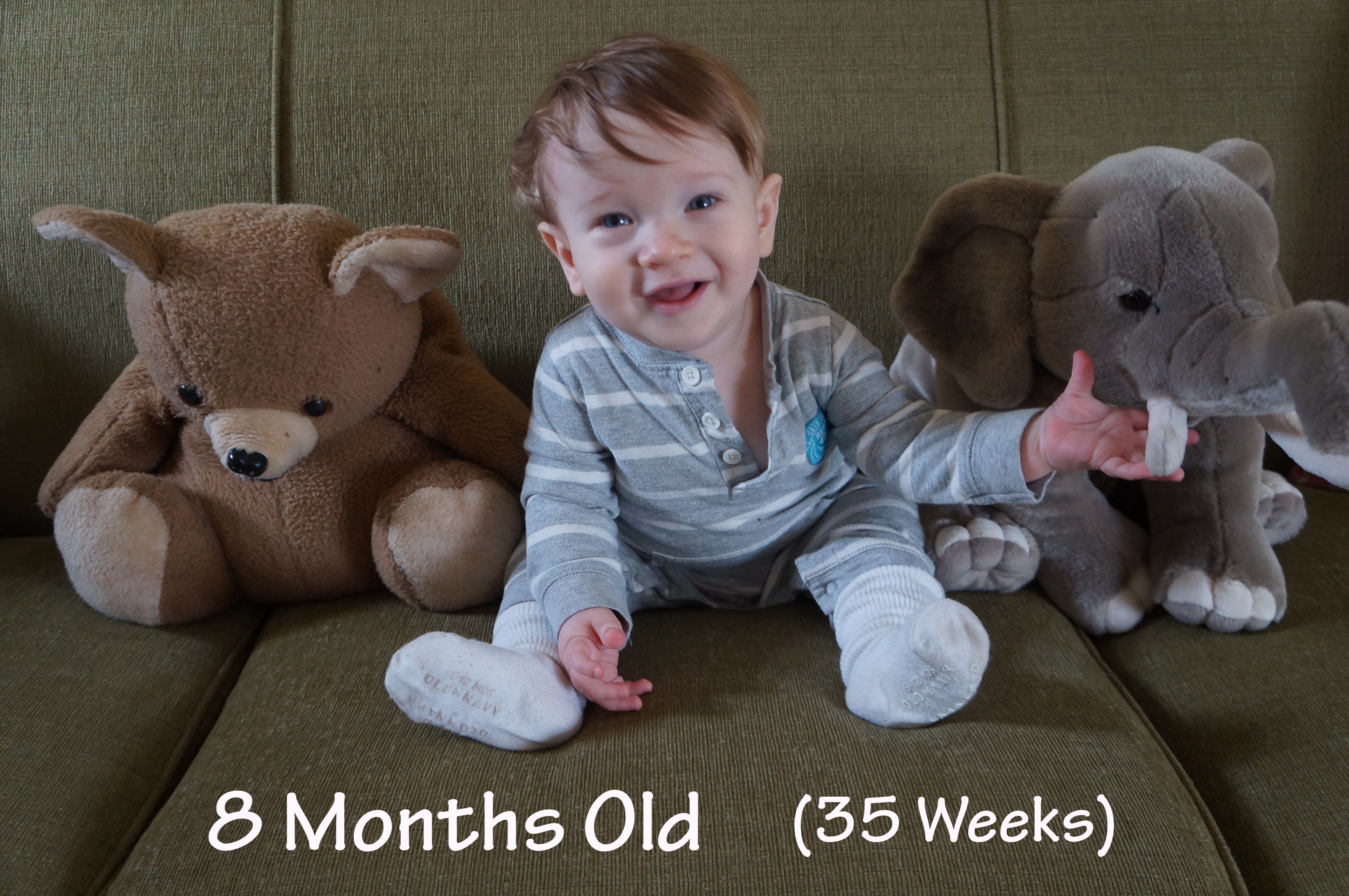 Today, I took his 8-month picture. Here are some of the cutest ones: