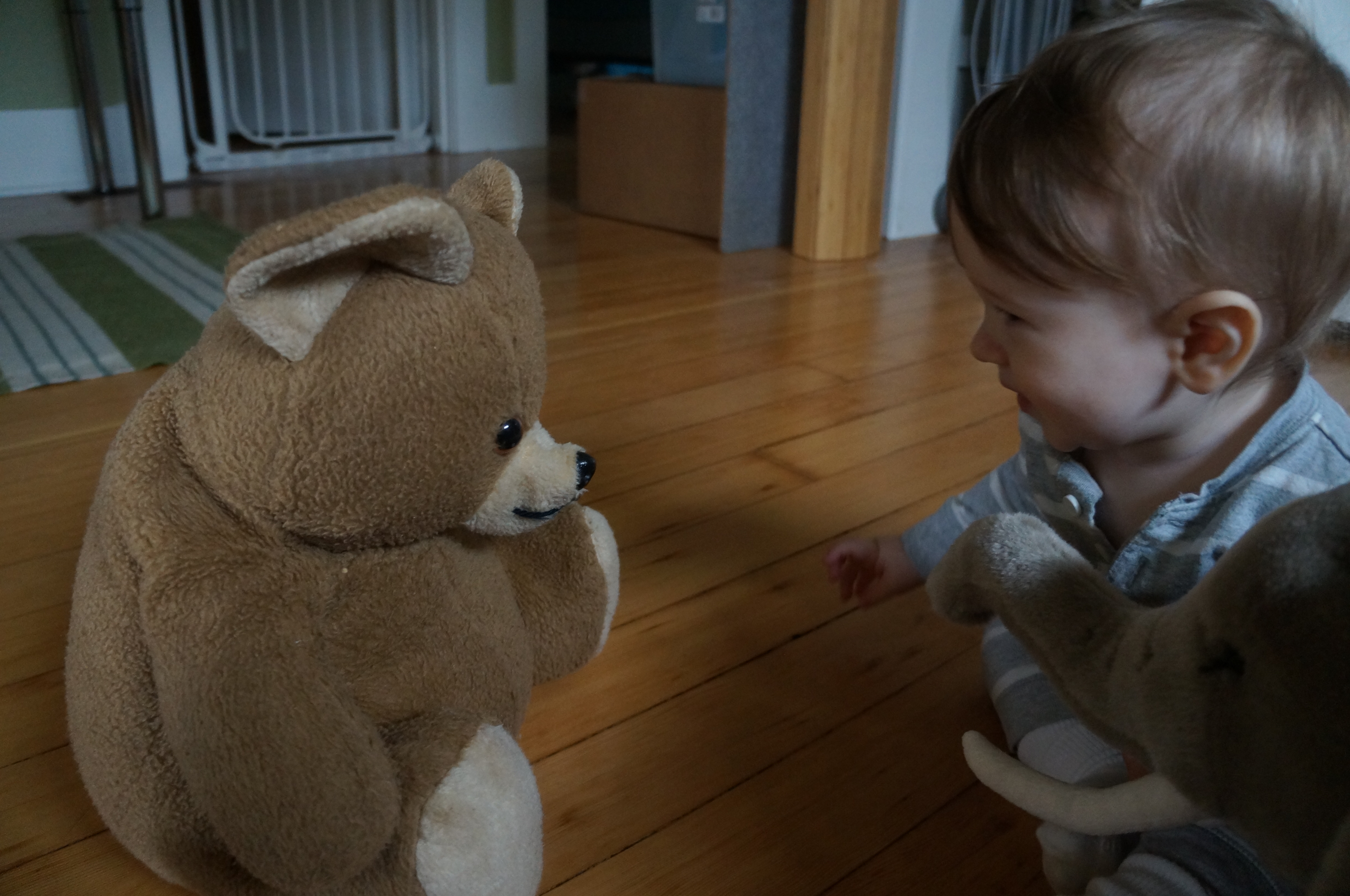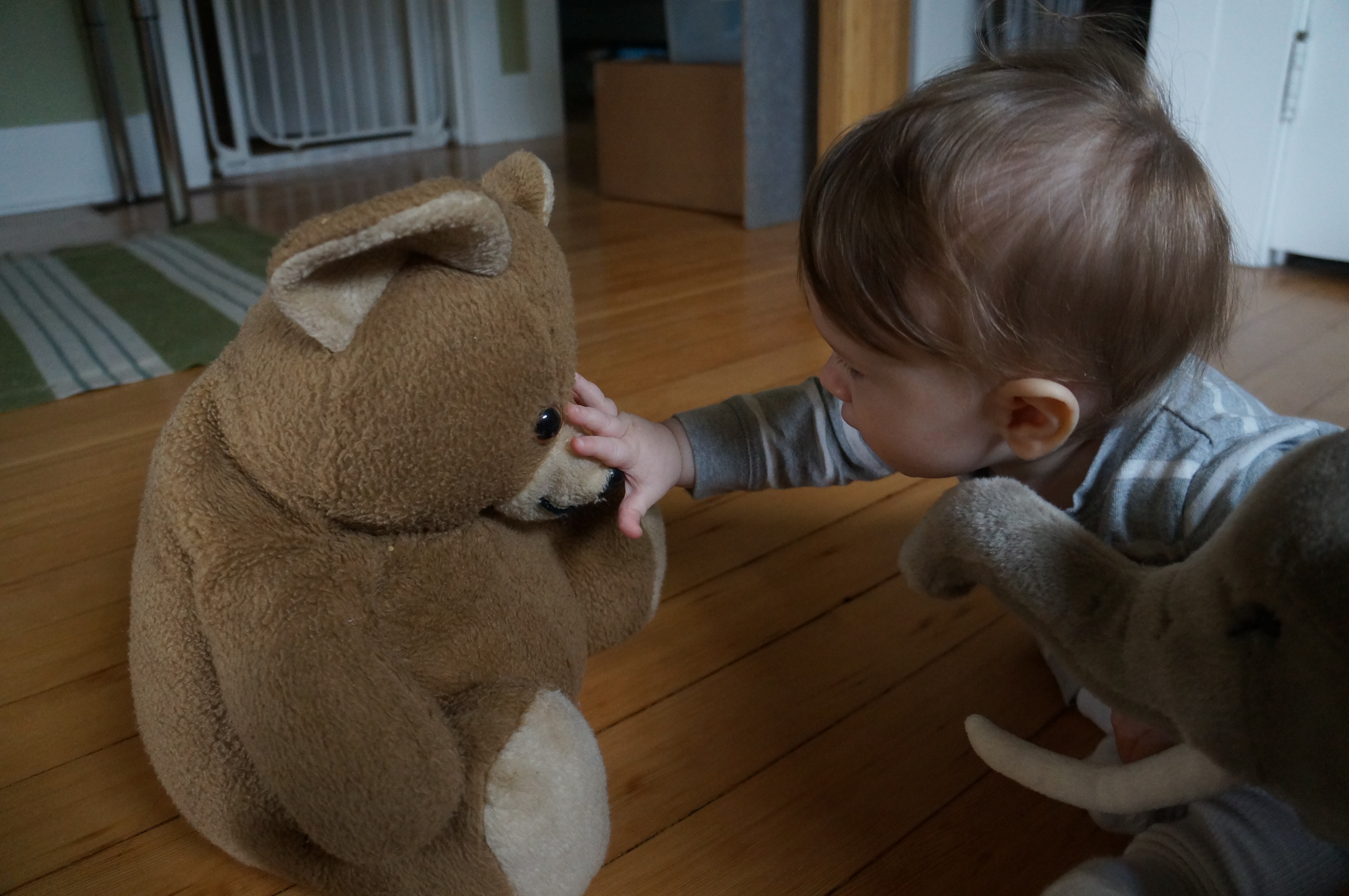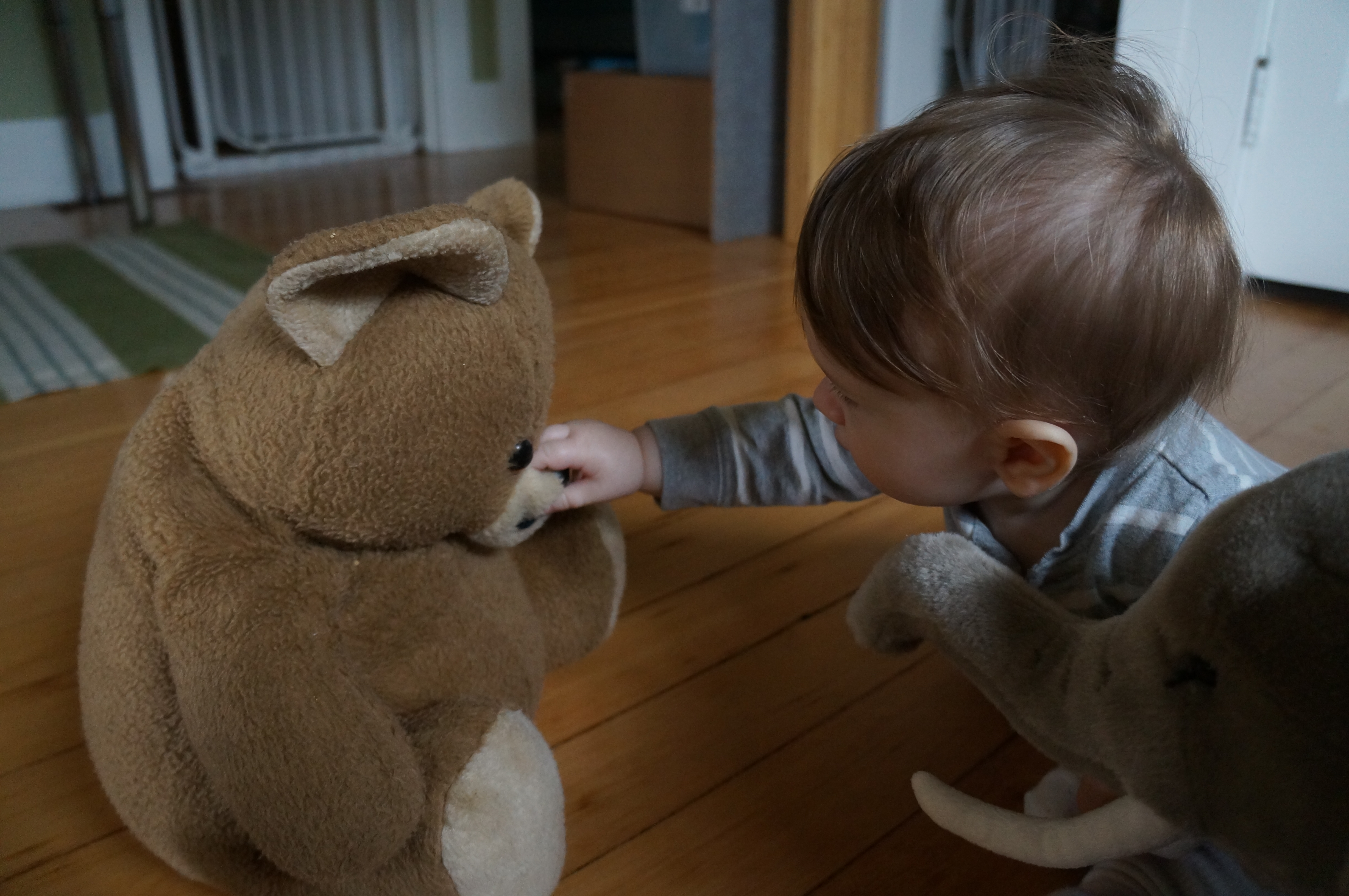 In the last week, the snow has melted; it’s rained a lot; and we’ve had visits from my mom, A.’s dad, and our good friends from San Diego; and a playdate with one of my coworkers and her 14-month-old son! Ari likes to keep busy.