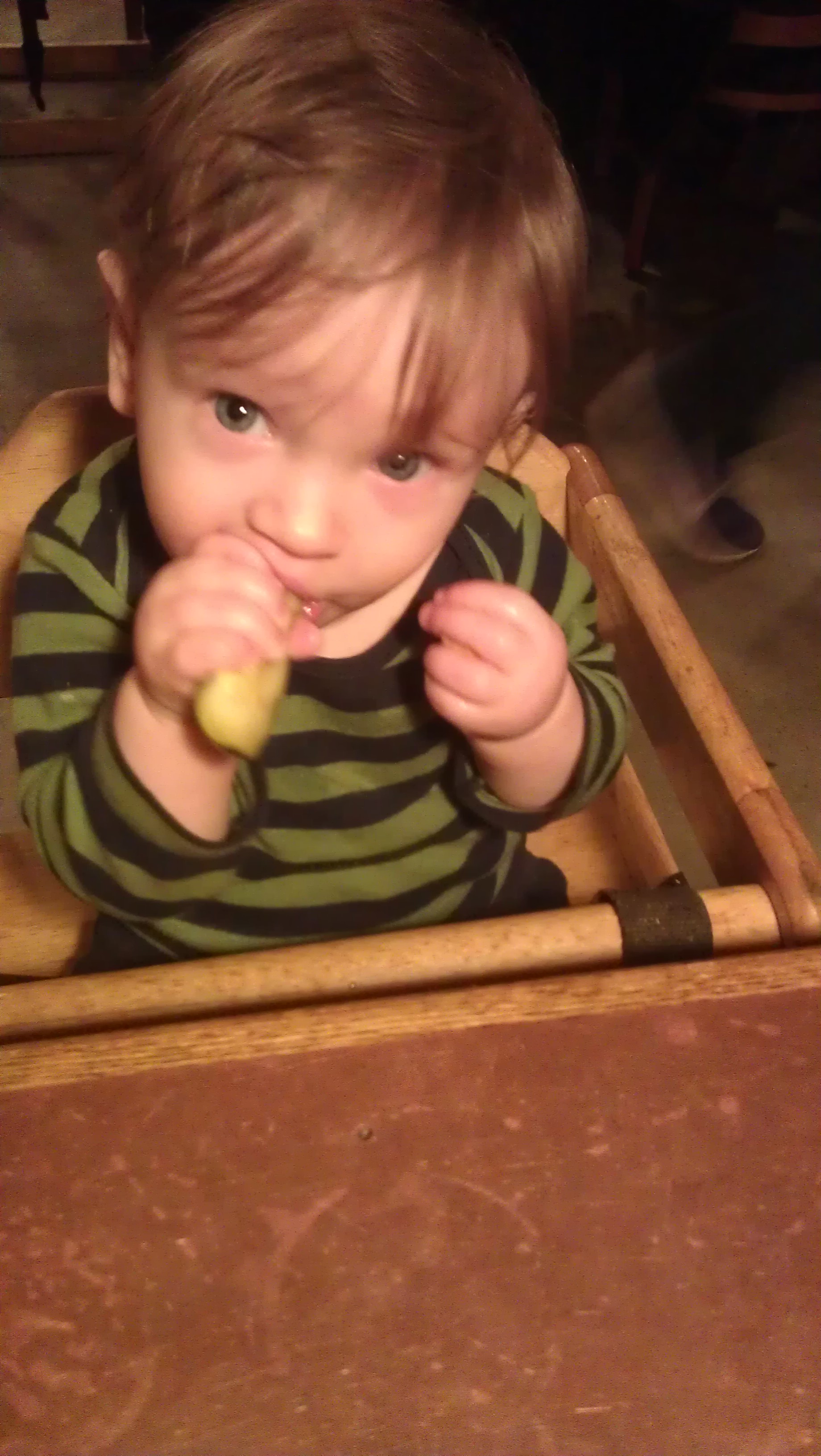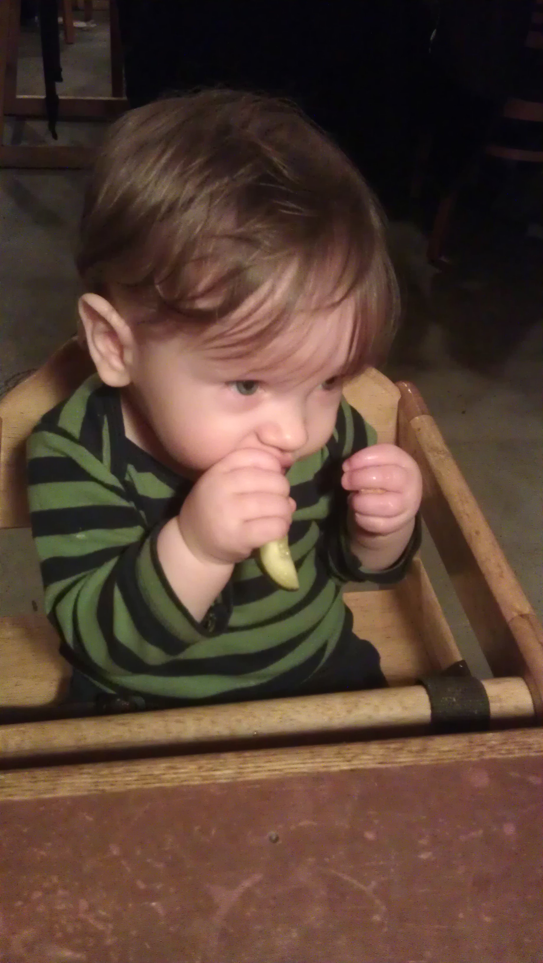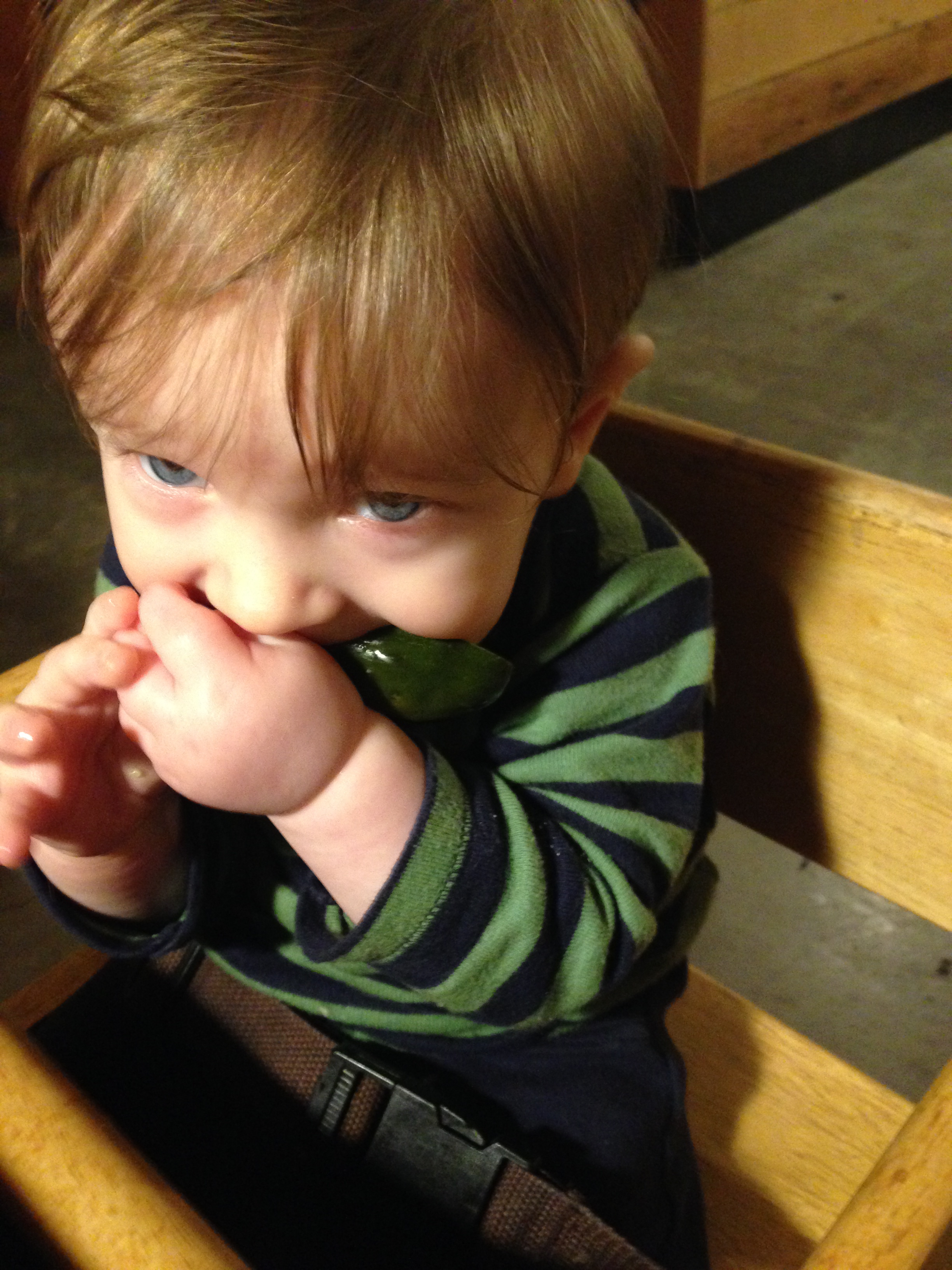 While we ate, Ari enjoyed chewing on teething biscuits, carrots, and, surprisingly enough, my pickle spear: