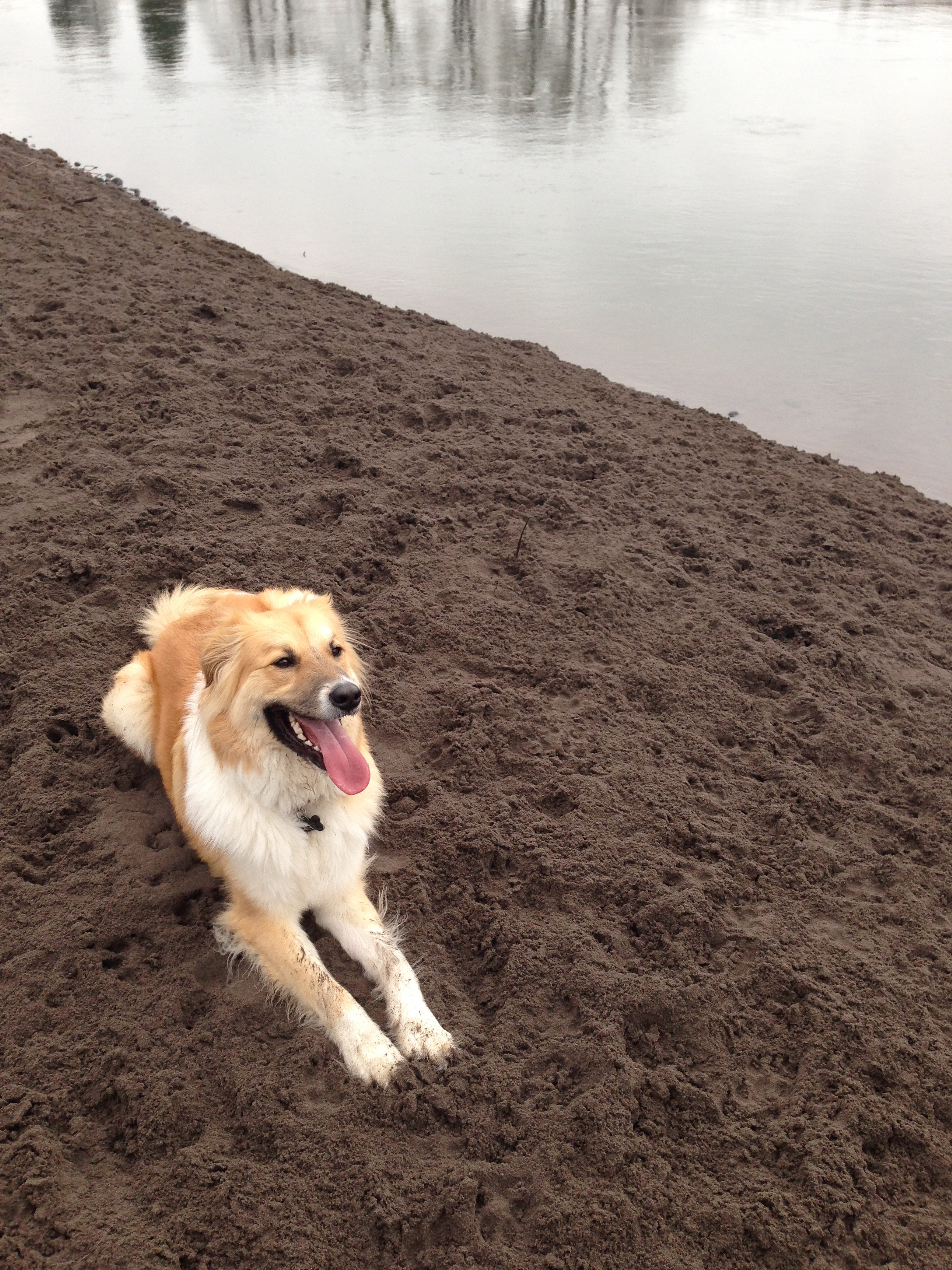 At the beach, he raced around and around with a couple of other dogs. Here he is resting afterwards: