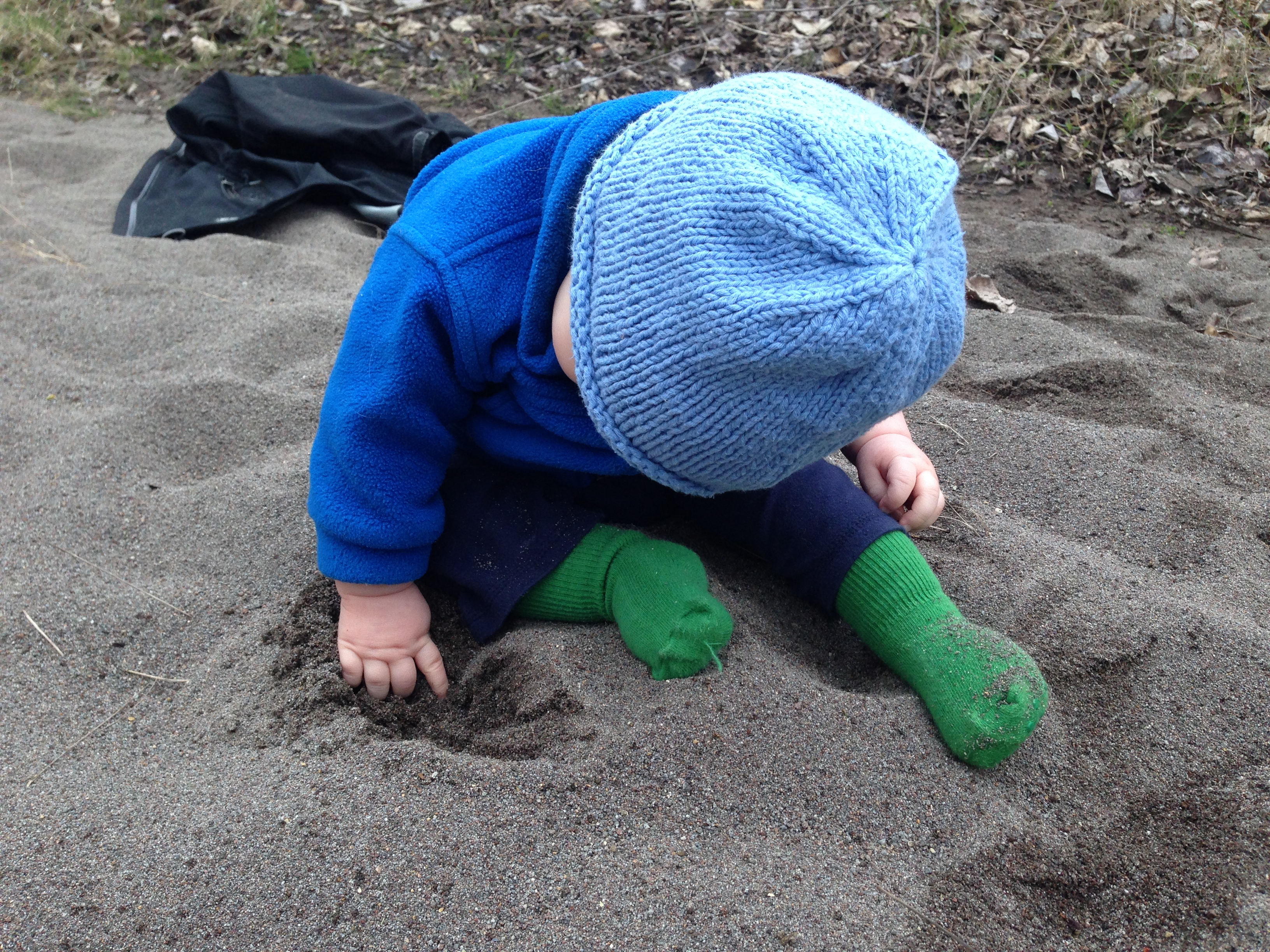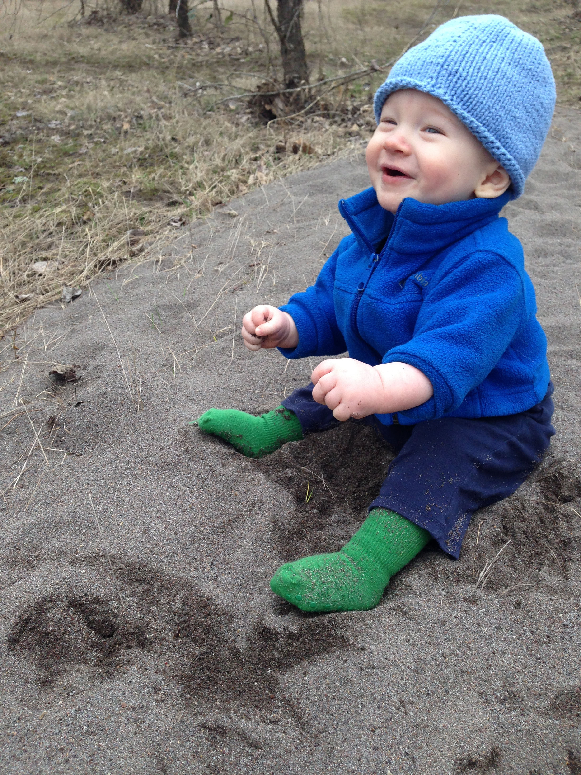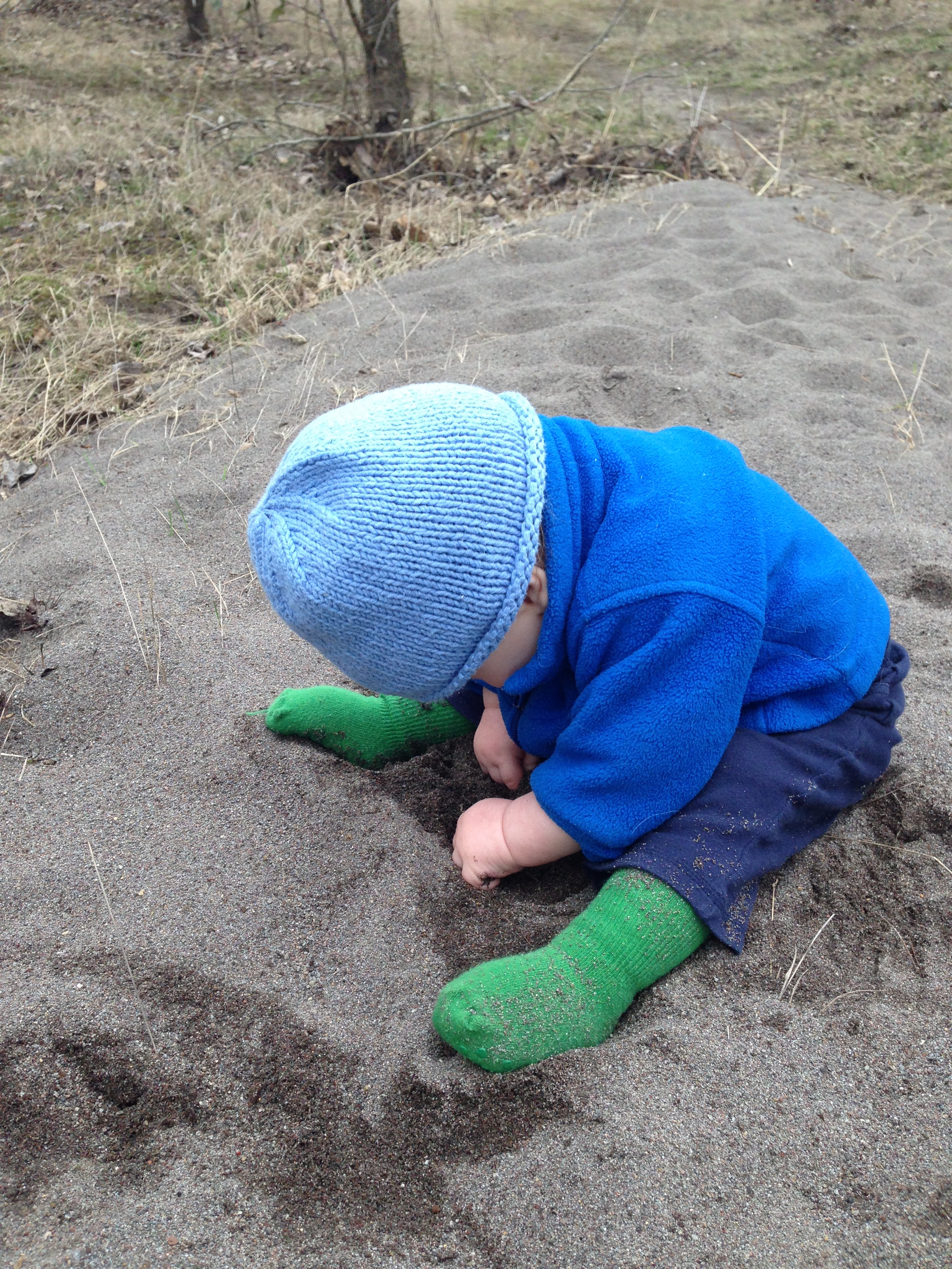 I put Ari down to check out the sand: