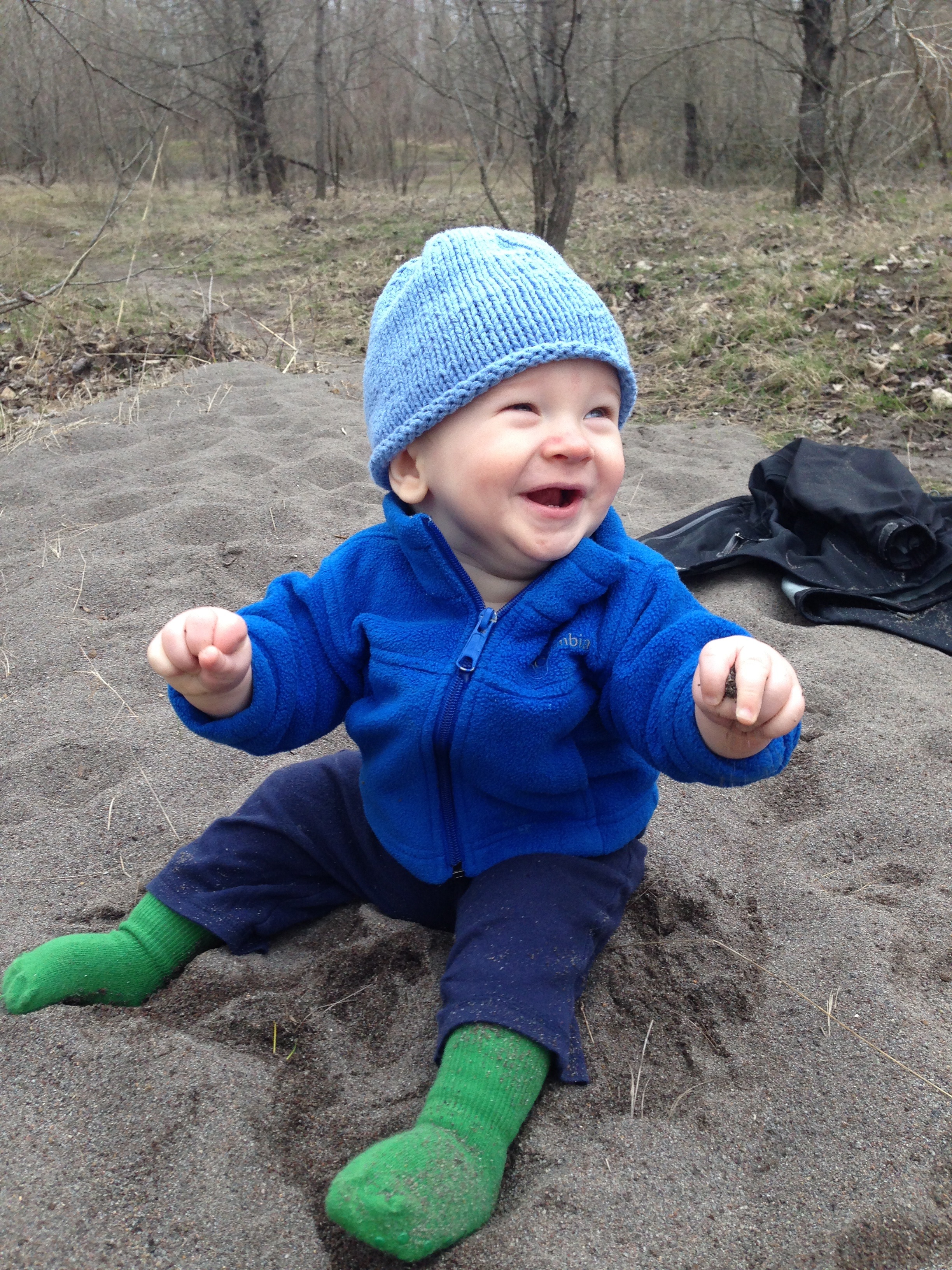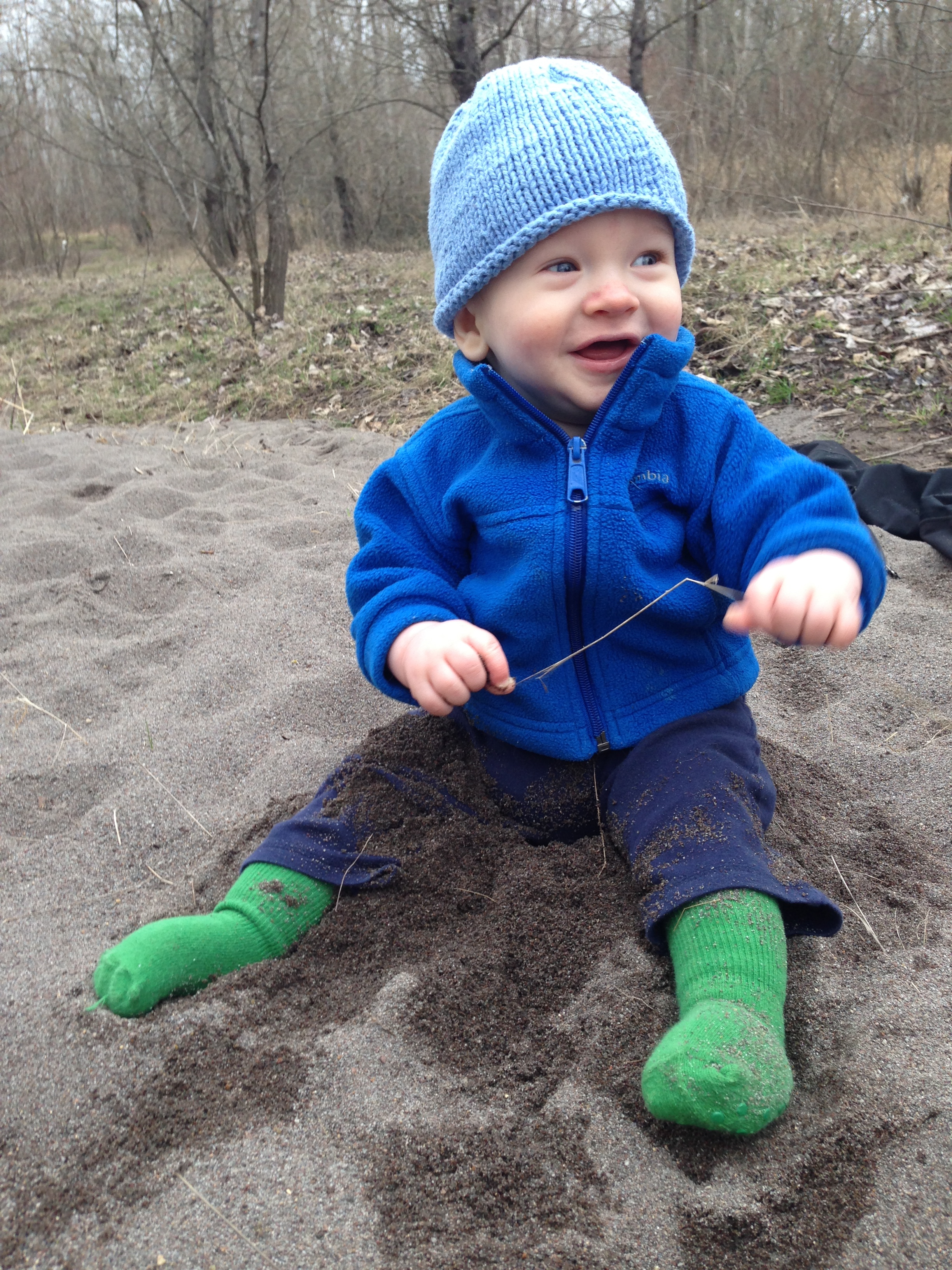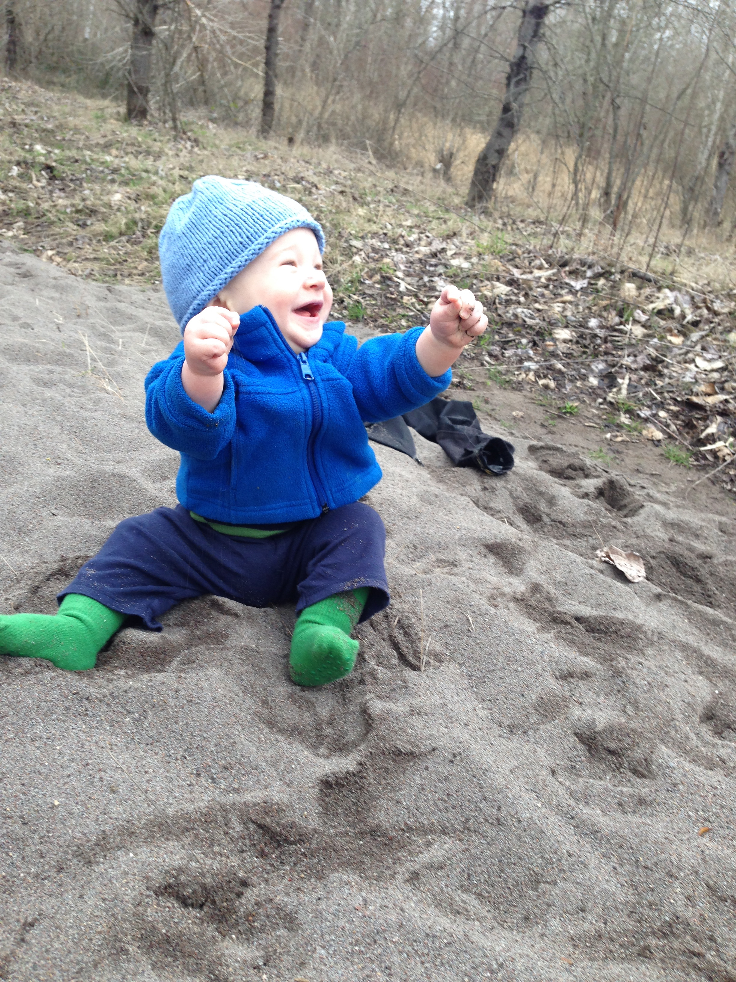 I put Ari down to check out the sand: