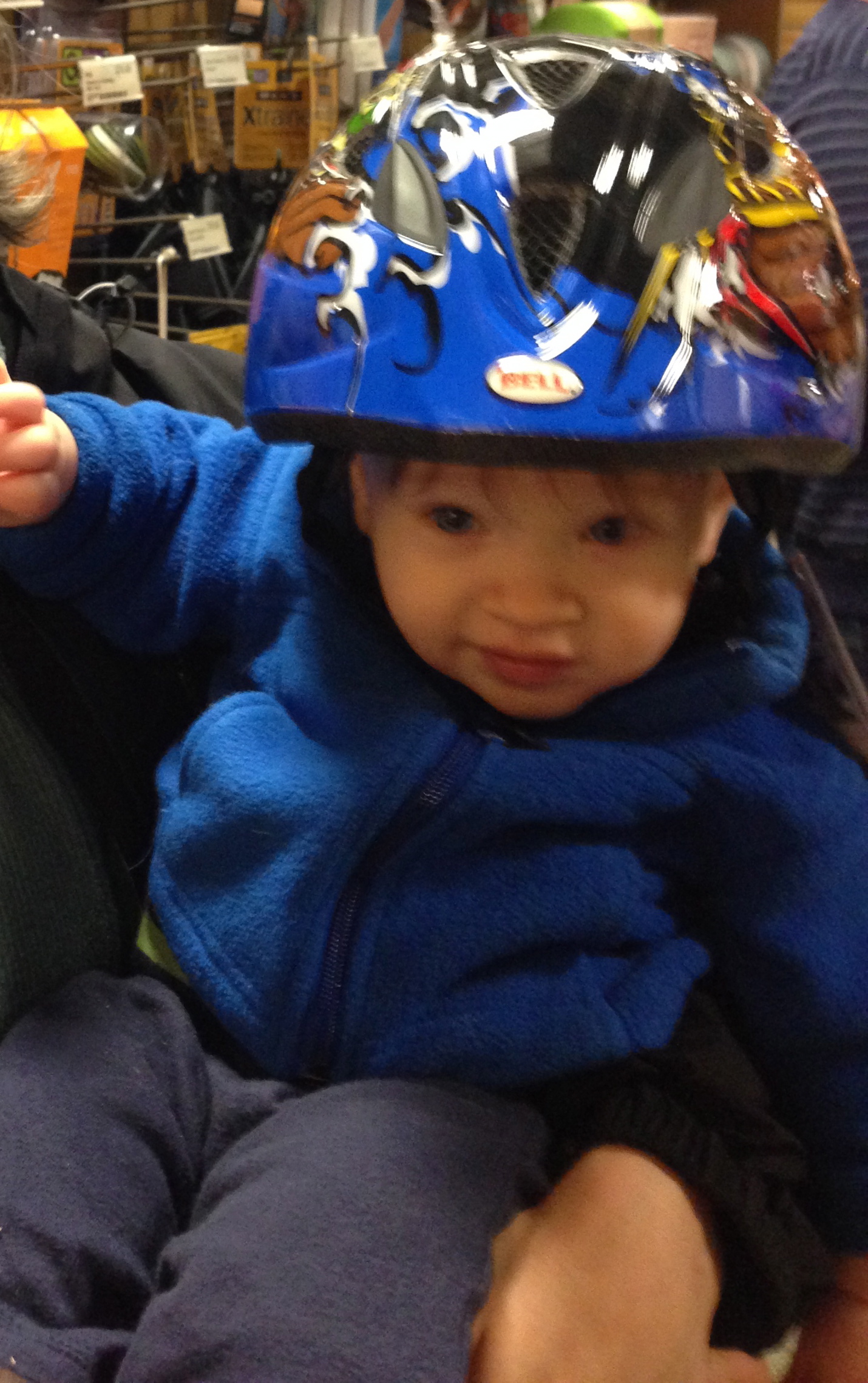 On our way home, we stopped and bought a baby bicycle helmet so we can start using Ari’s bicycle trailer!