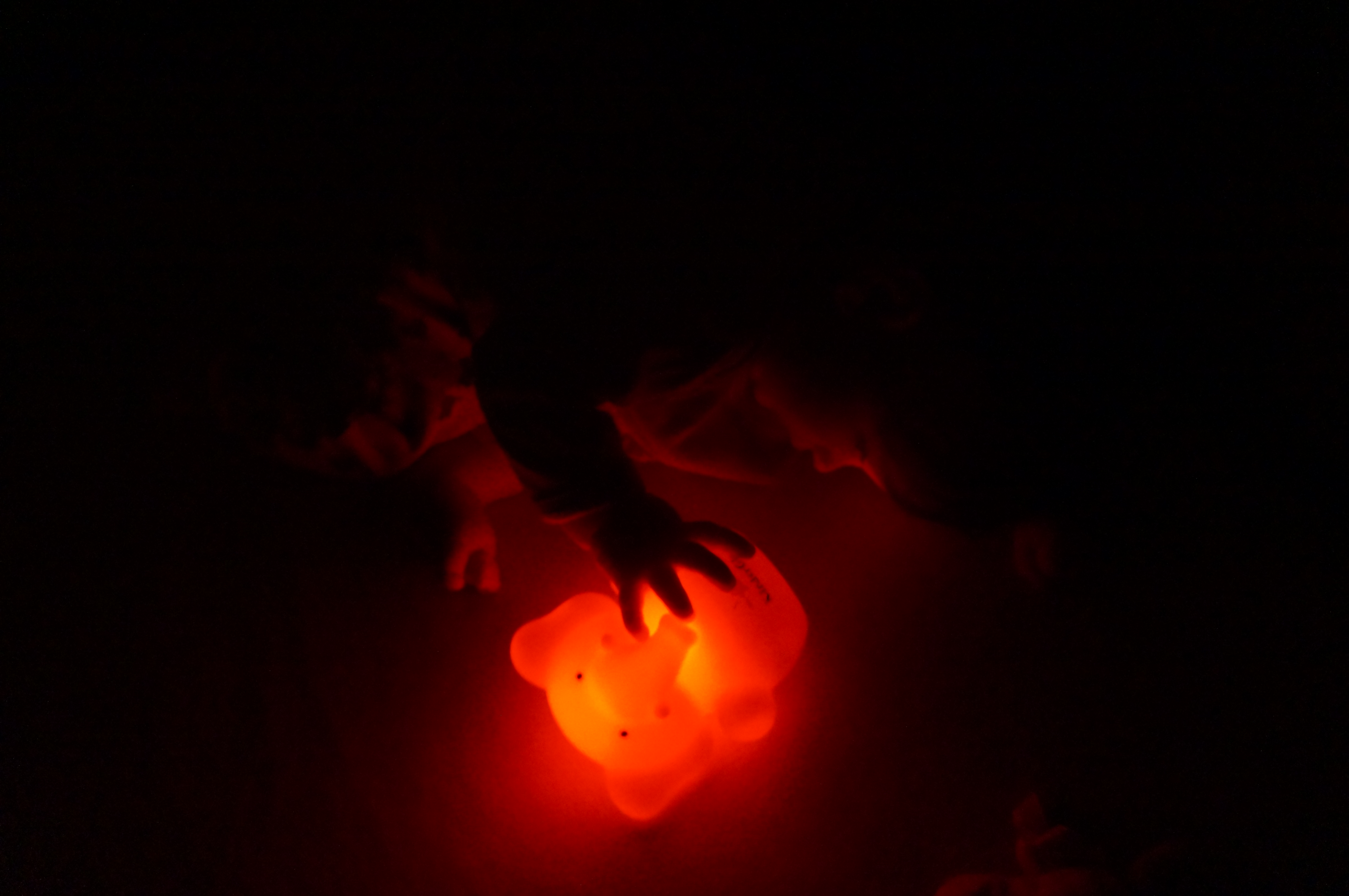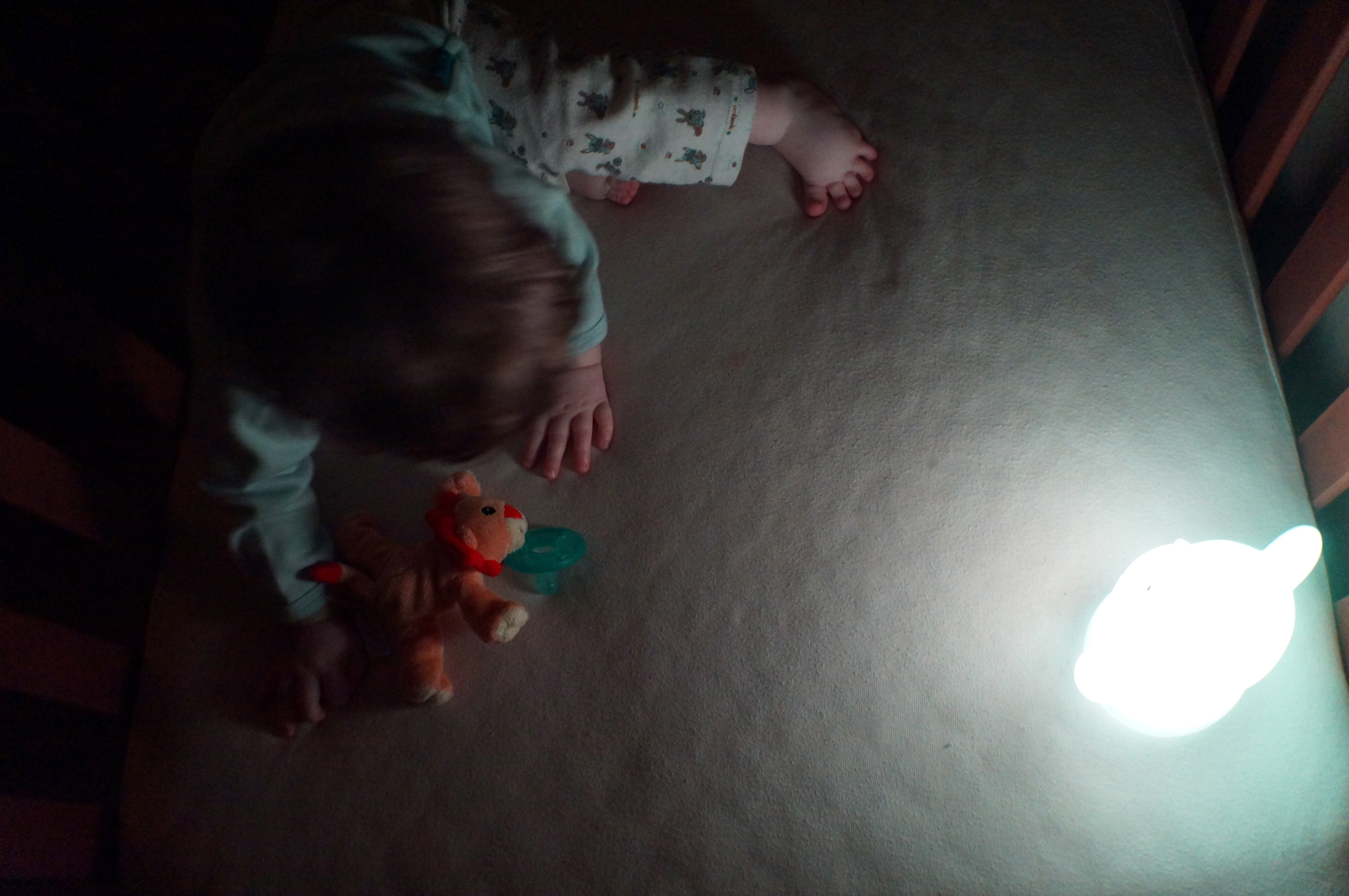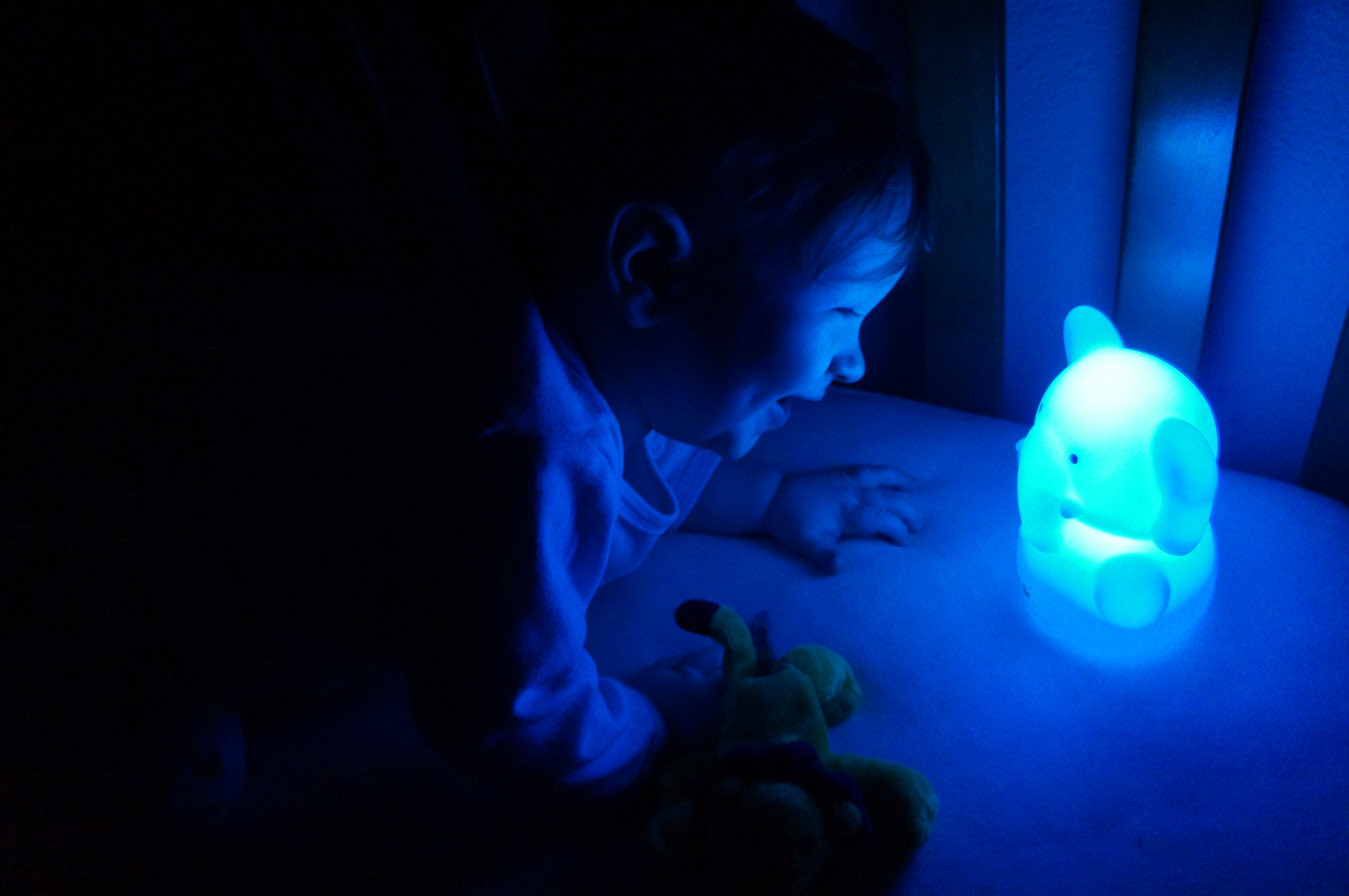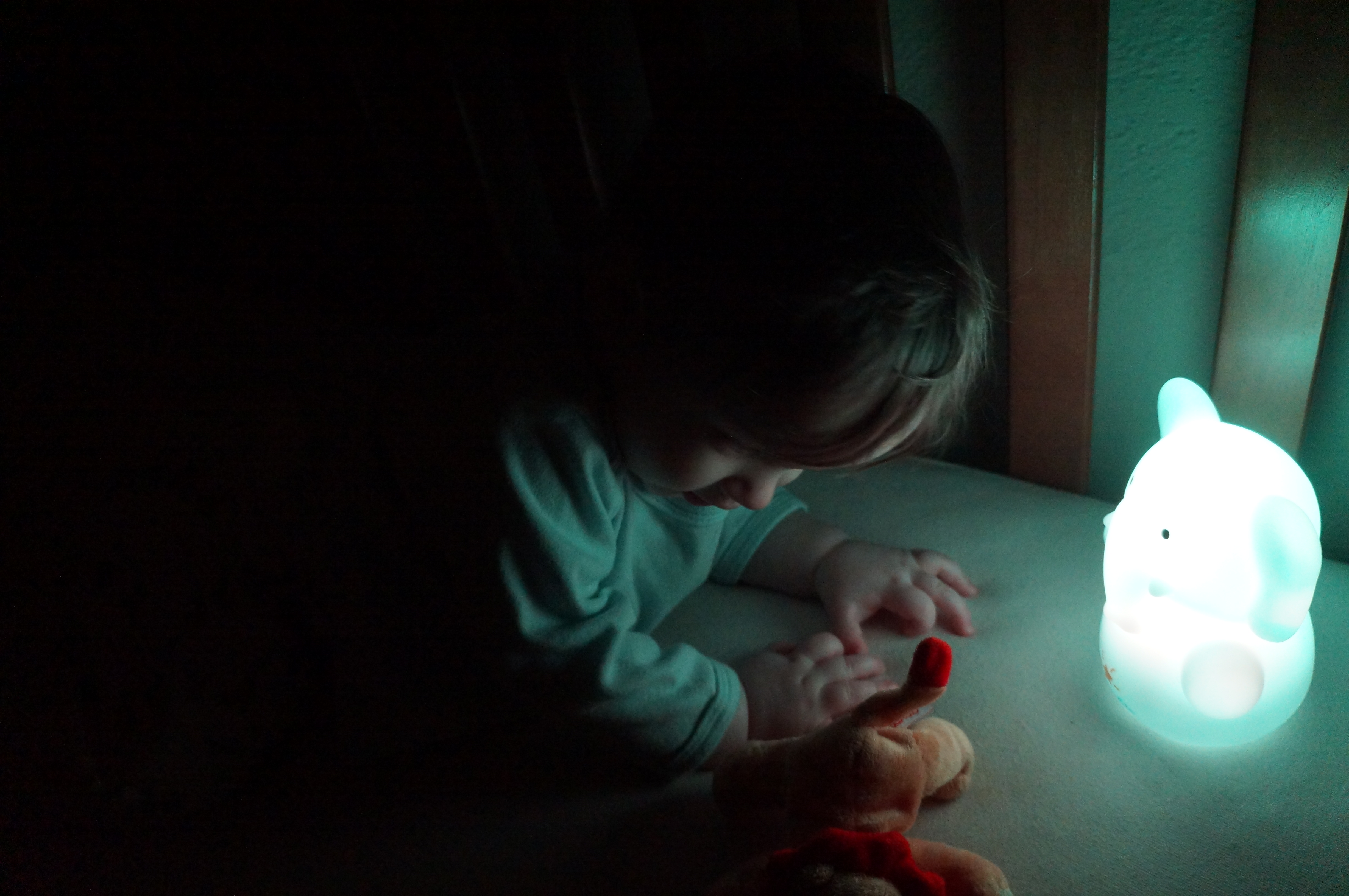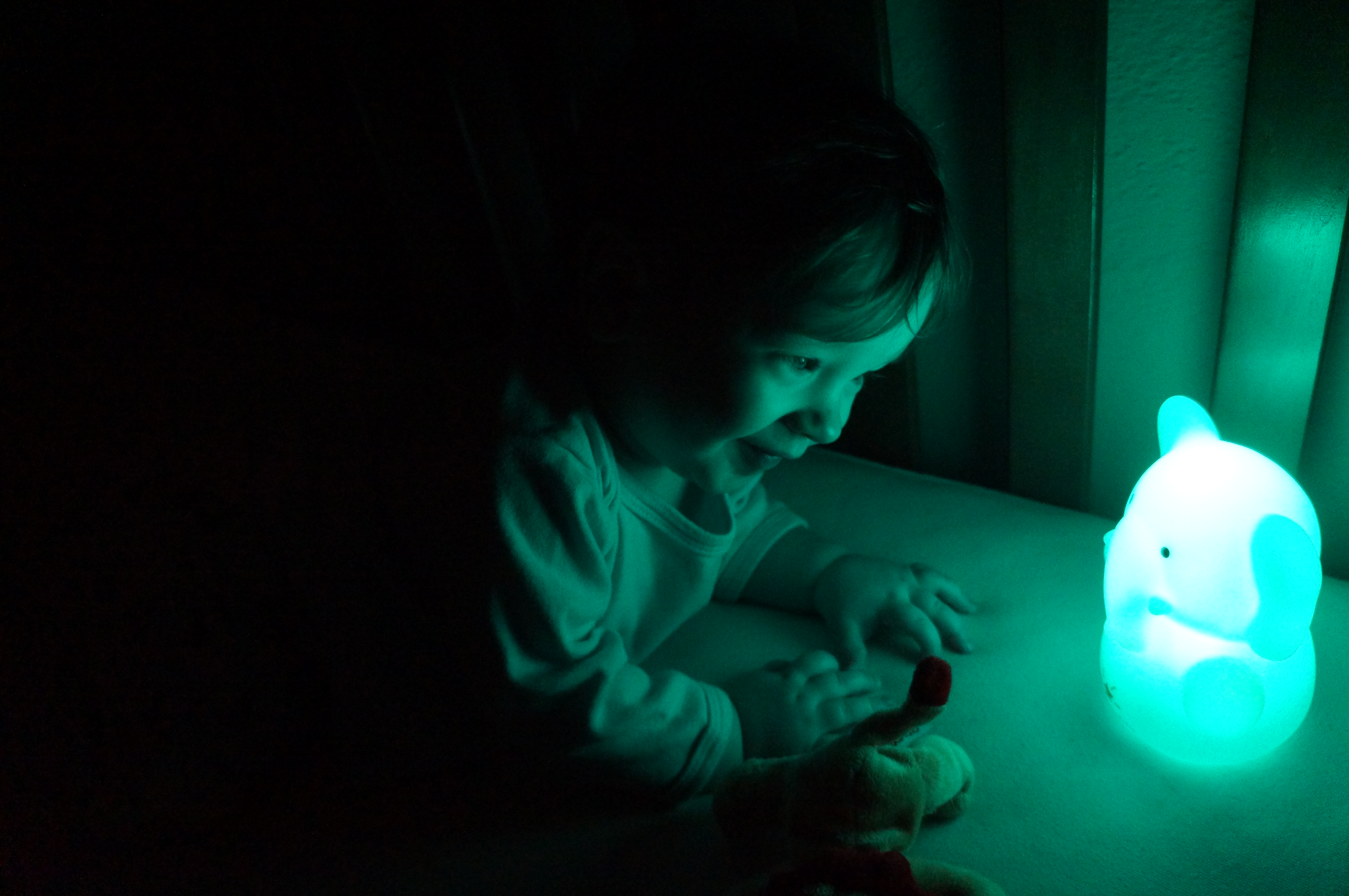 I’ve discovered that Ari’s little color-changing elephant lamp is a great way to keep him occupied for a while – he’s fascinated!