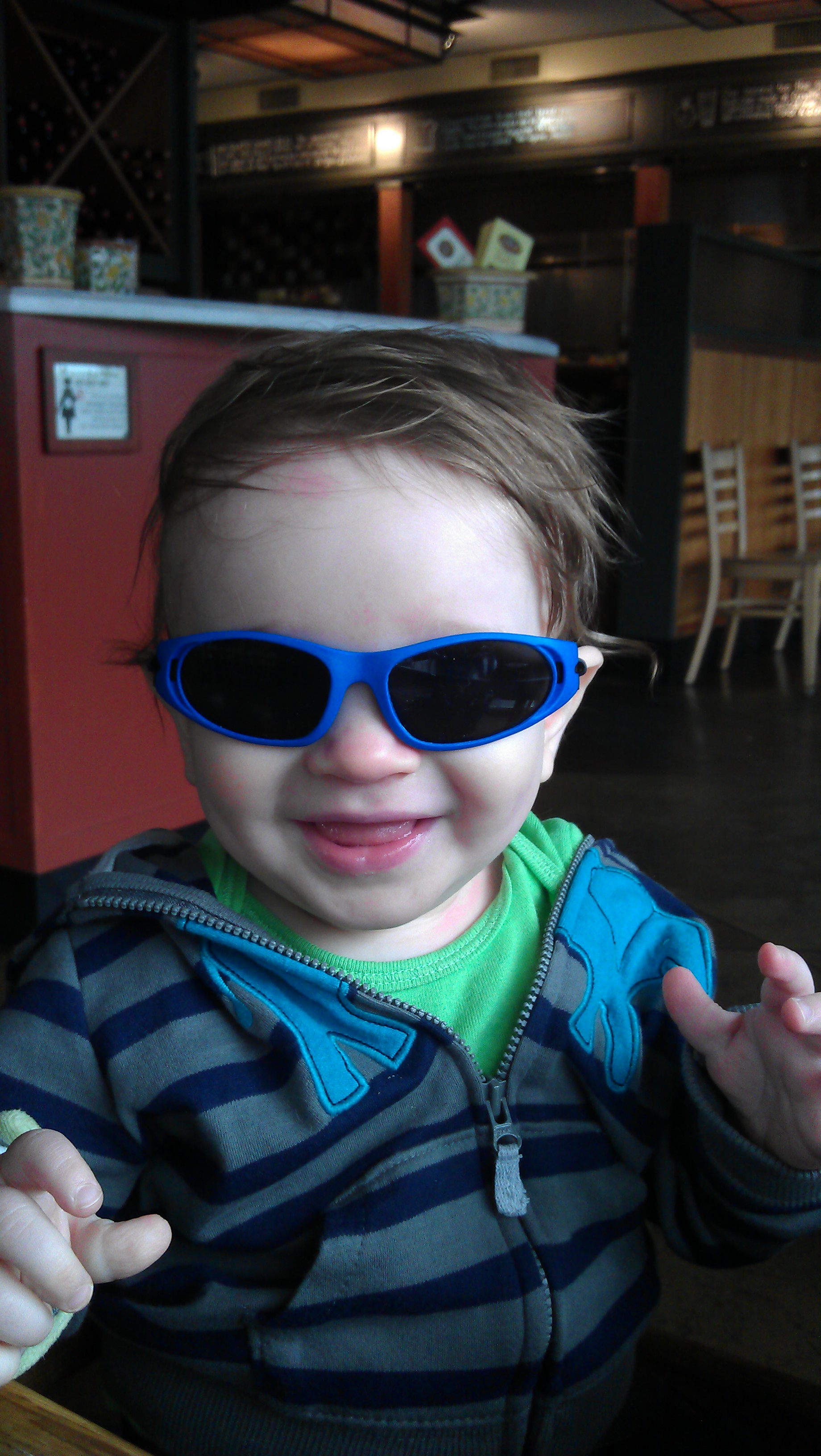 He also went out to eat with my nieces and me quite a bit. Here we were using his sunglasses to keep him happy – he really gets a kick out of them!