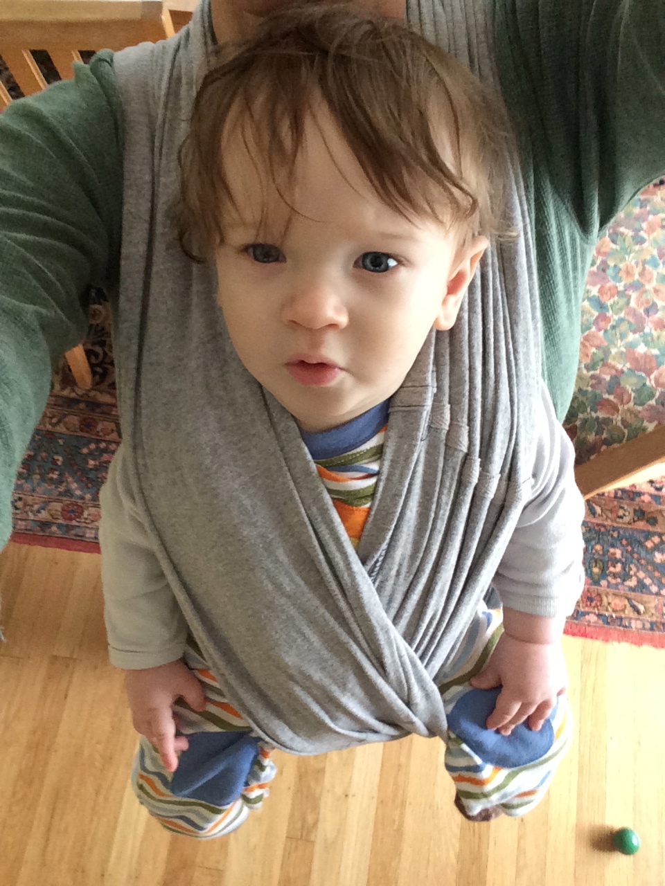 Here are some selfies using the Baby K’Tan carrier so he can face out for a quick walk to let Andrew play with Baker at Jan’s house: