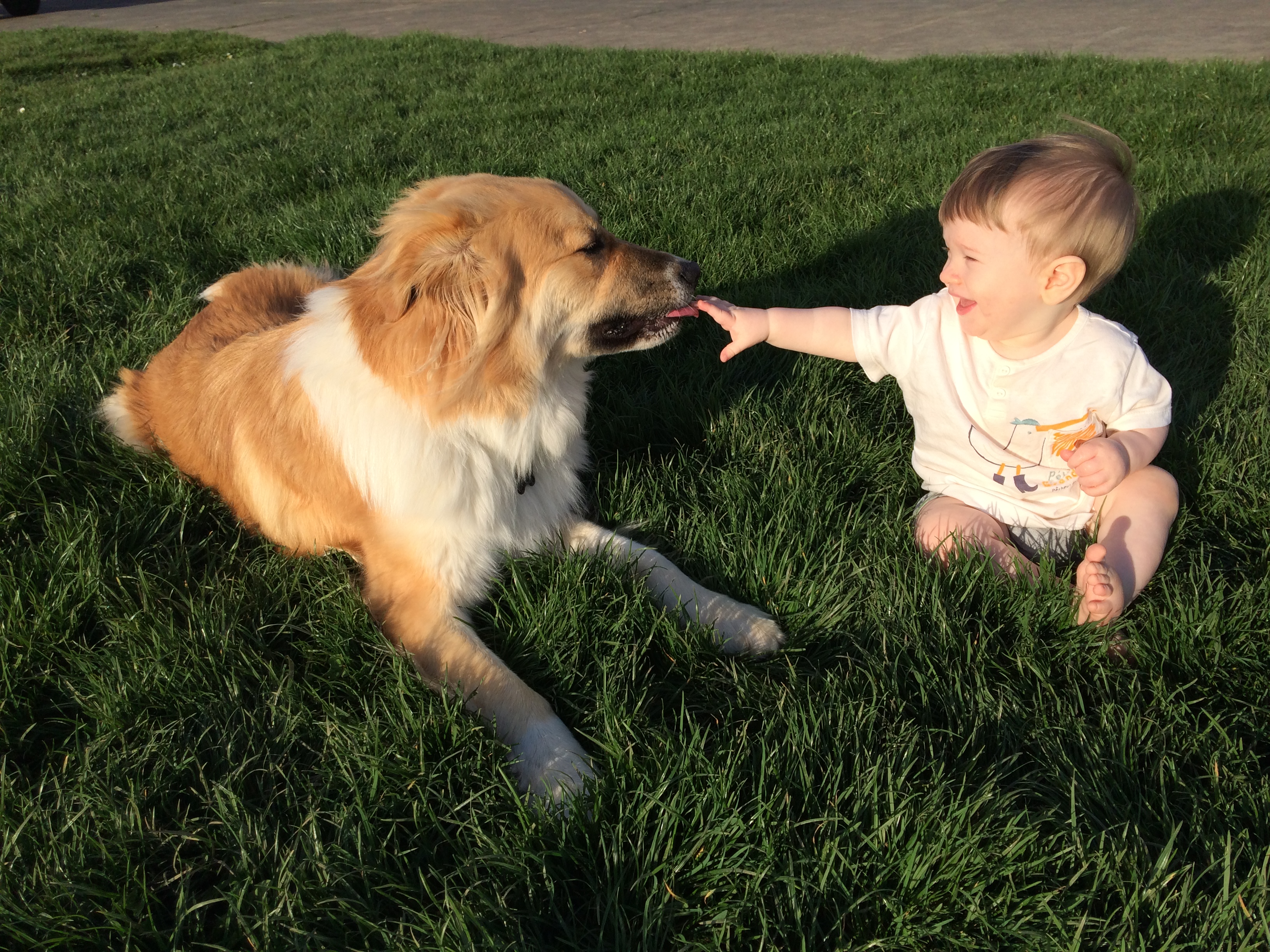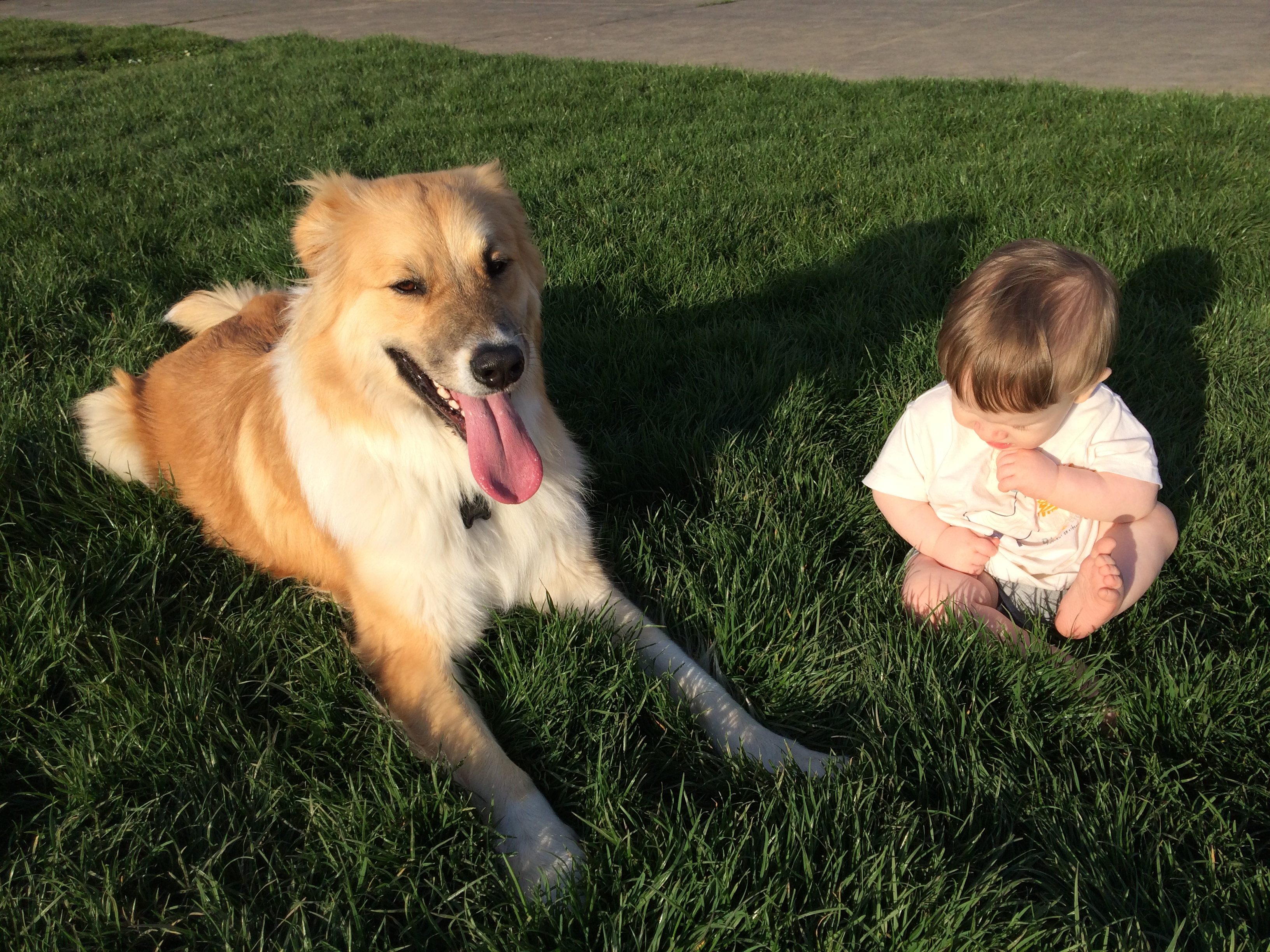 We also went to the park to throw the ball for Andrew and Ari sat in the grass for a while and then figured out he could crawl in it – then he was off! All over the place! I didn’t take pictures of the crawling, though.