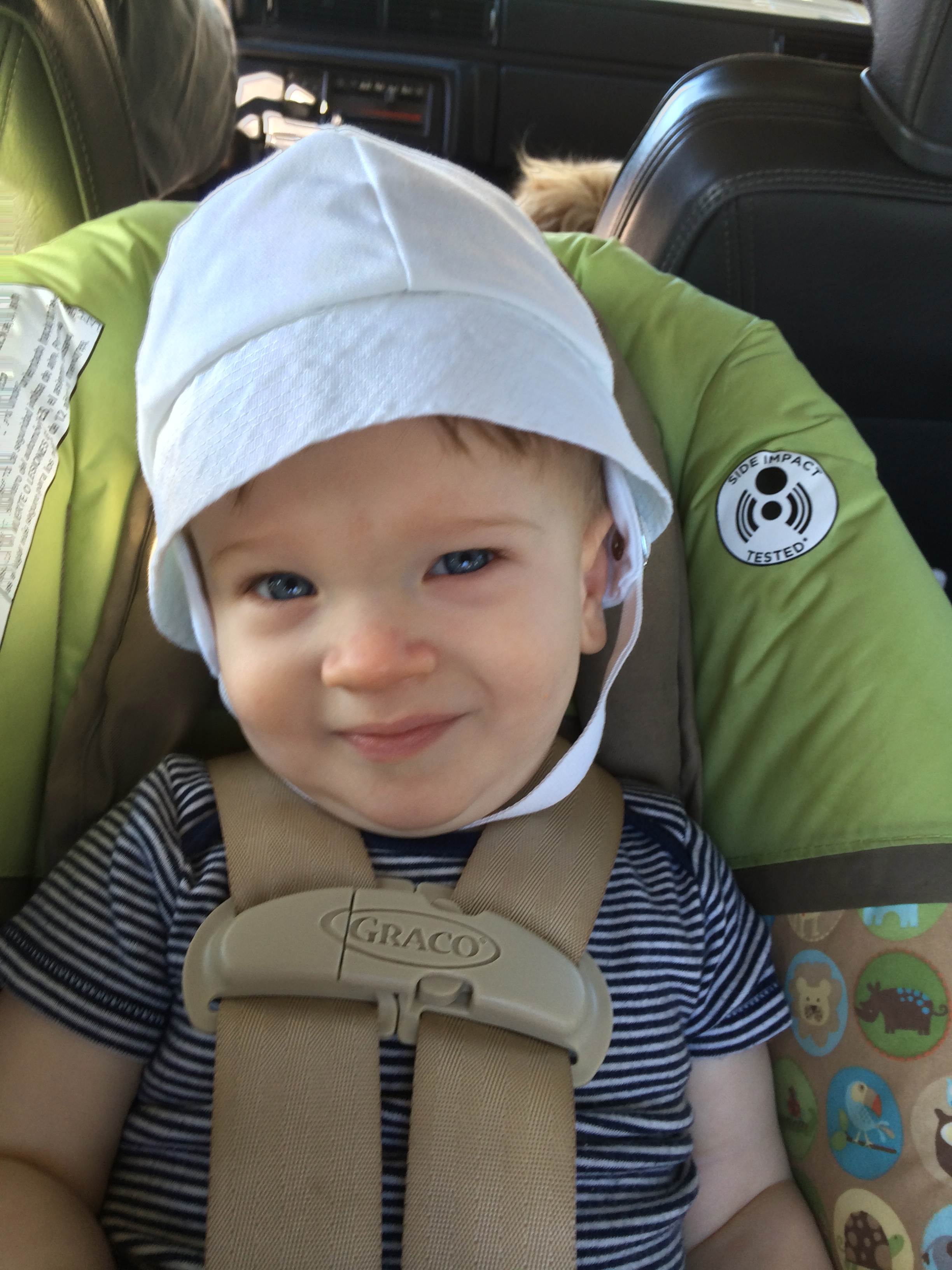 We also took the boys to the dog park on a sunny day and Ari wore this cute hat: