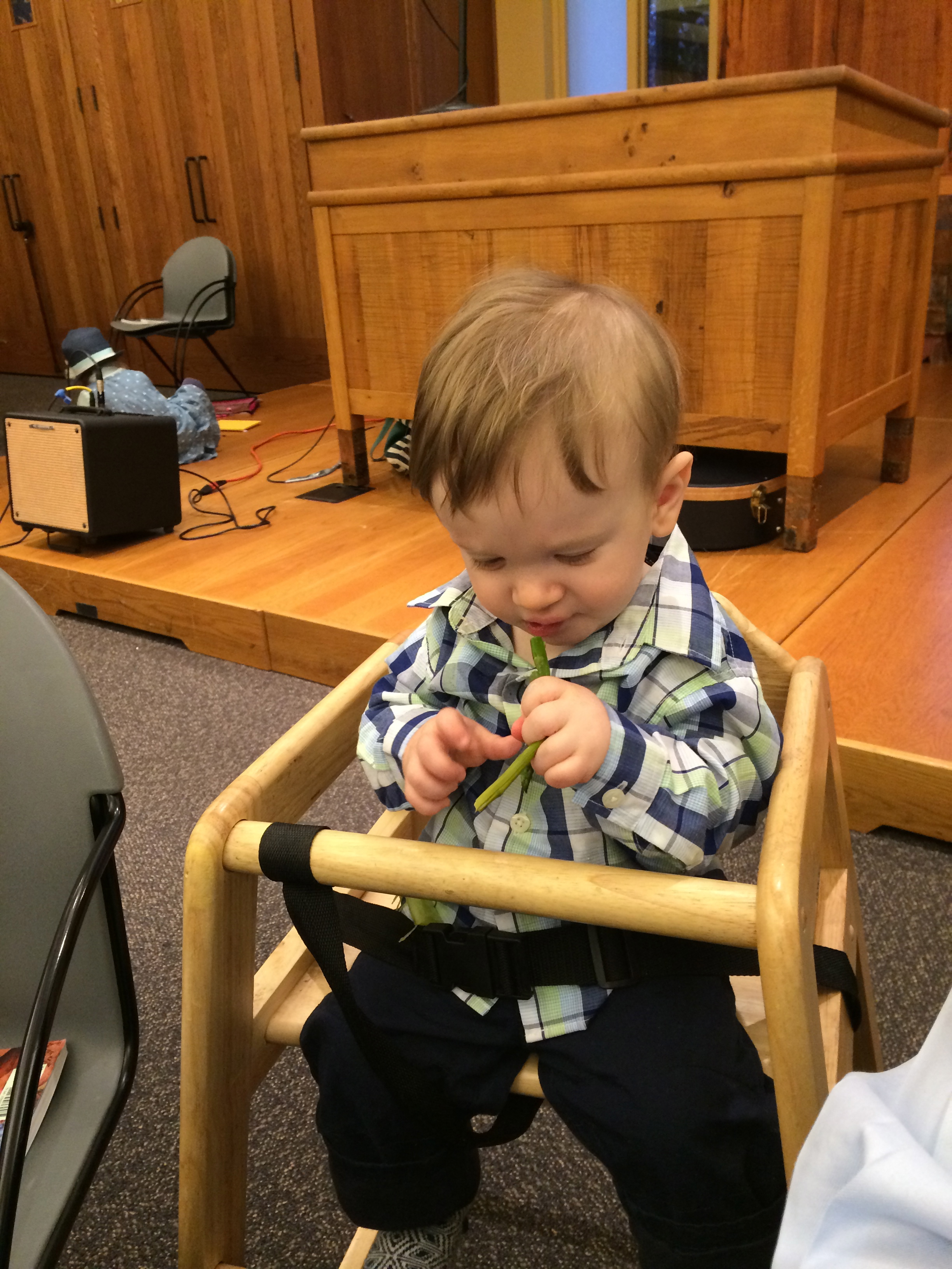 Also, he ate some of pretty much everything, including the gefilte fish! Here, he’s eating asparagus.