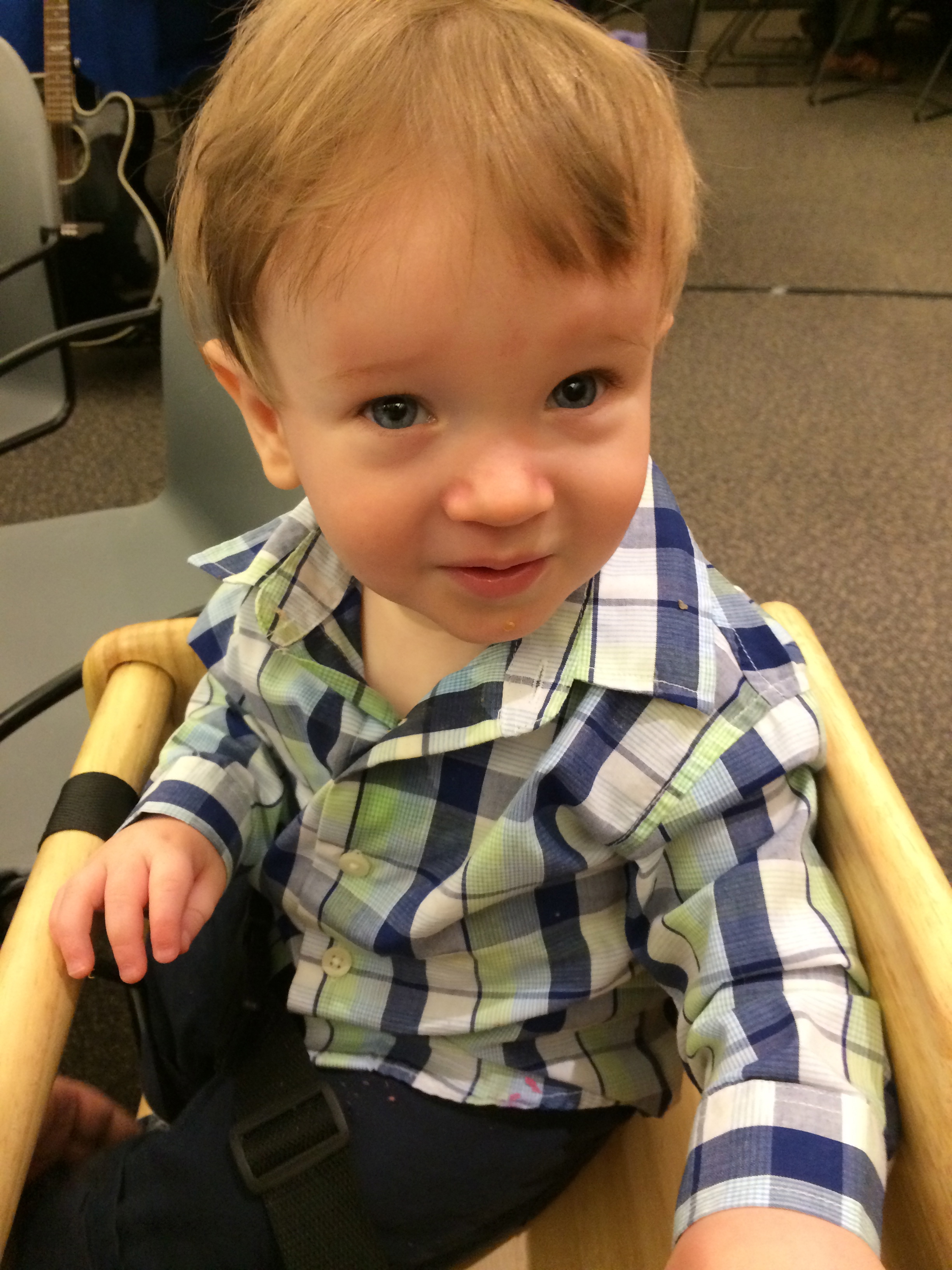 Earlier in the day, I bought this adorable shirt at the consignment store so Ari would look nice for the dinner, and look how cute he was!