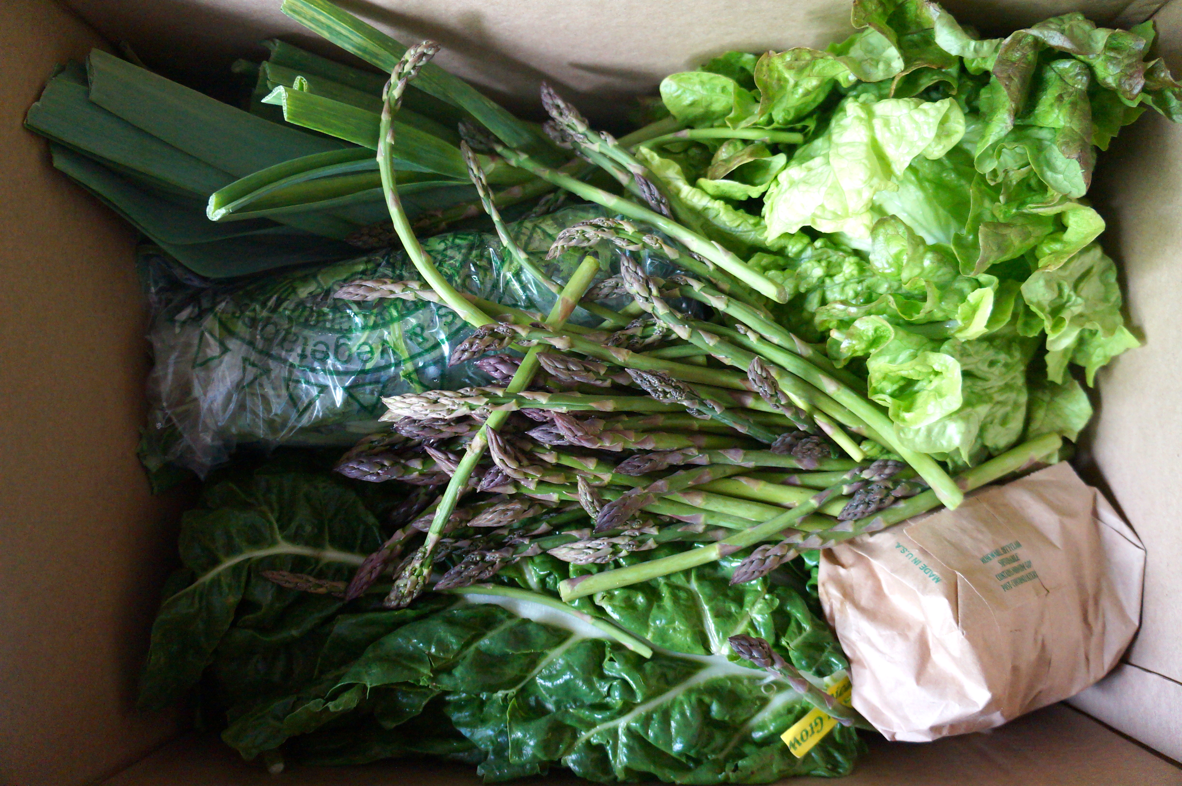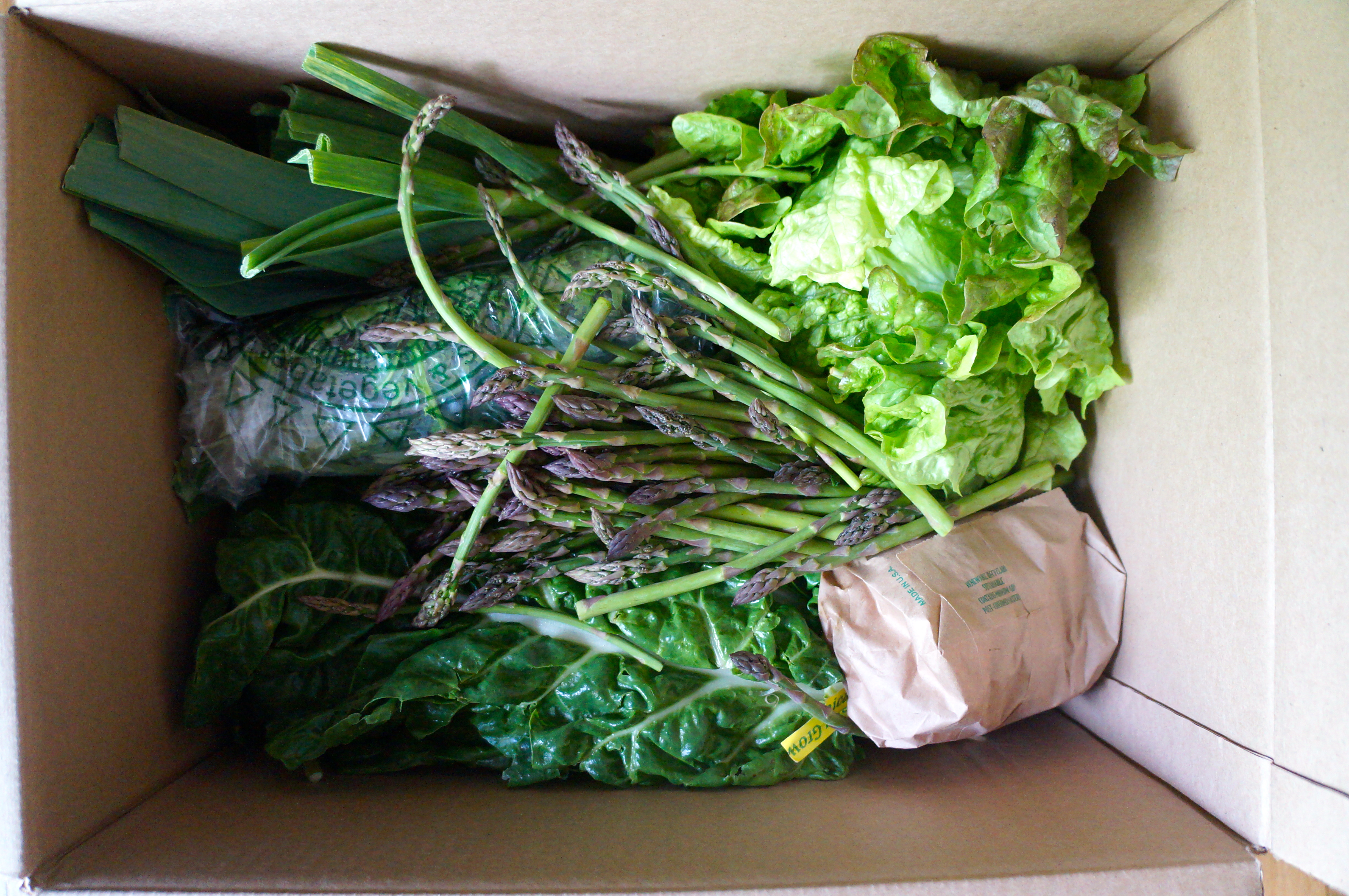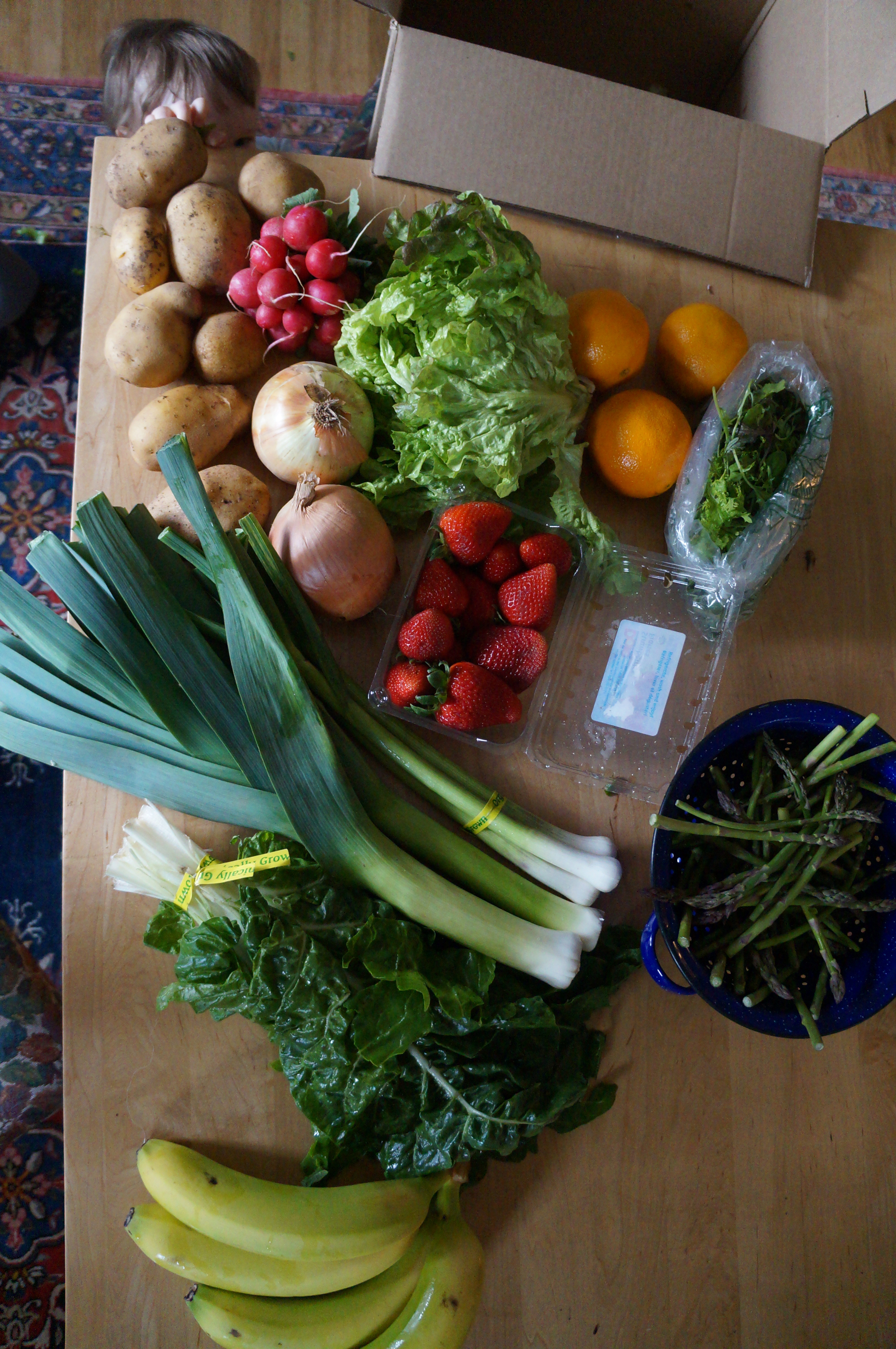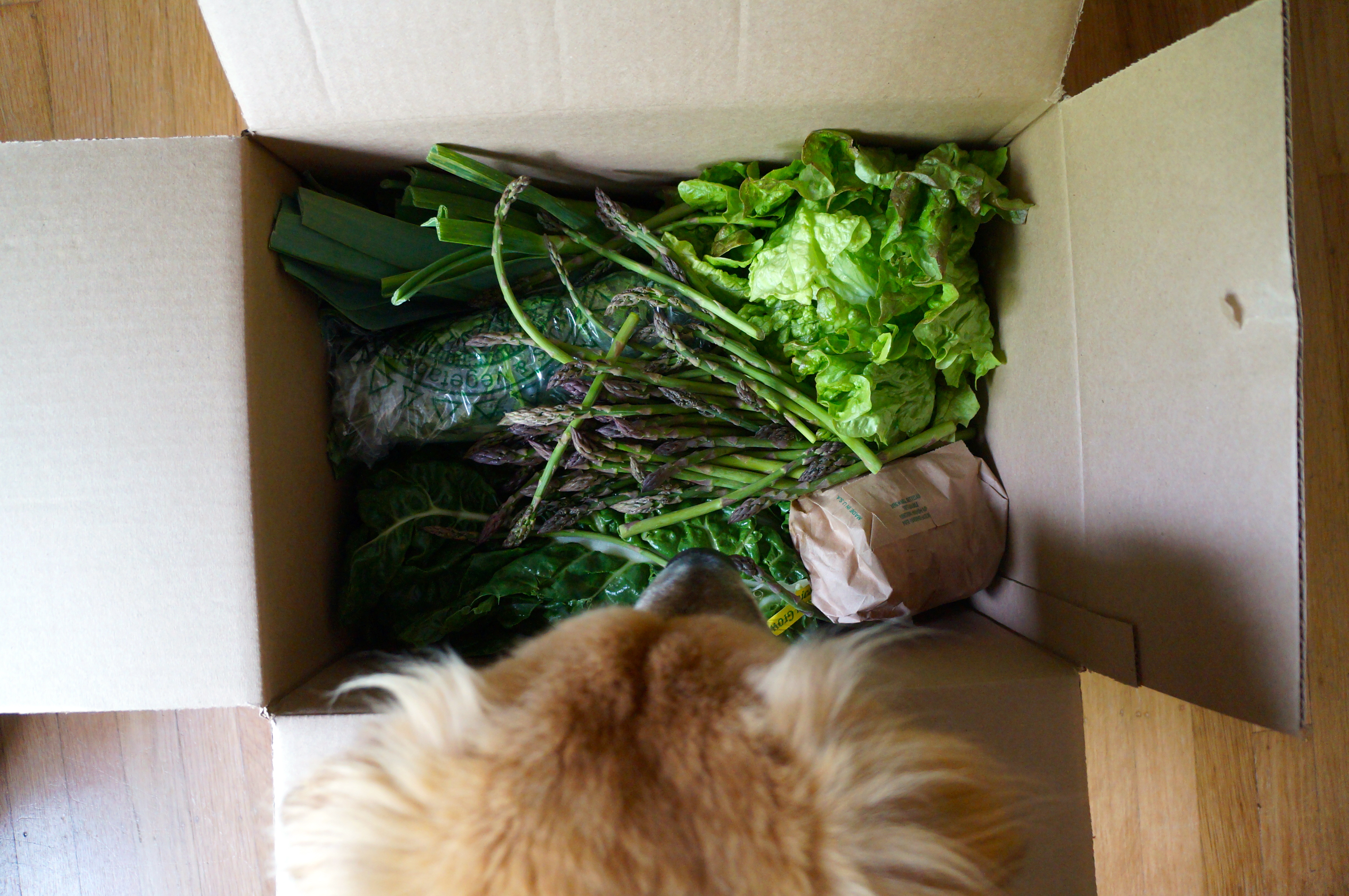 A. and I have been wanting to eat more fruits and vegetables, especially the local and organic kind. We’ve thought about joining a CSA, but it seems like you usually have to be able to pick up your produce at a certain location at a certain time, and our work schedules aren’t consistent enough for that.
