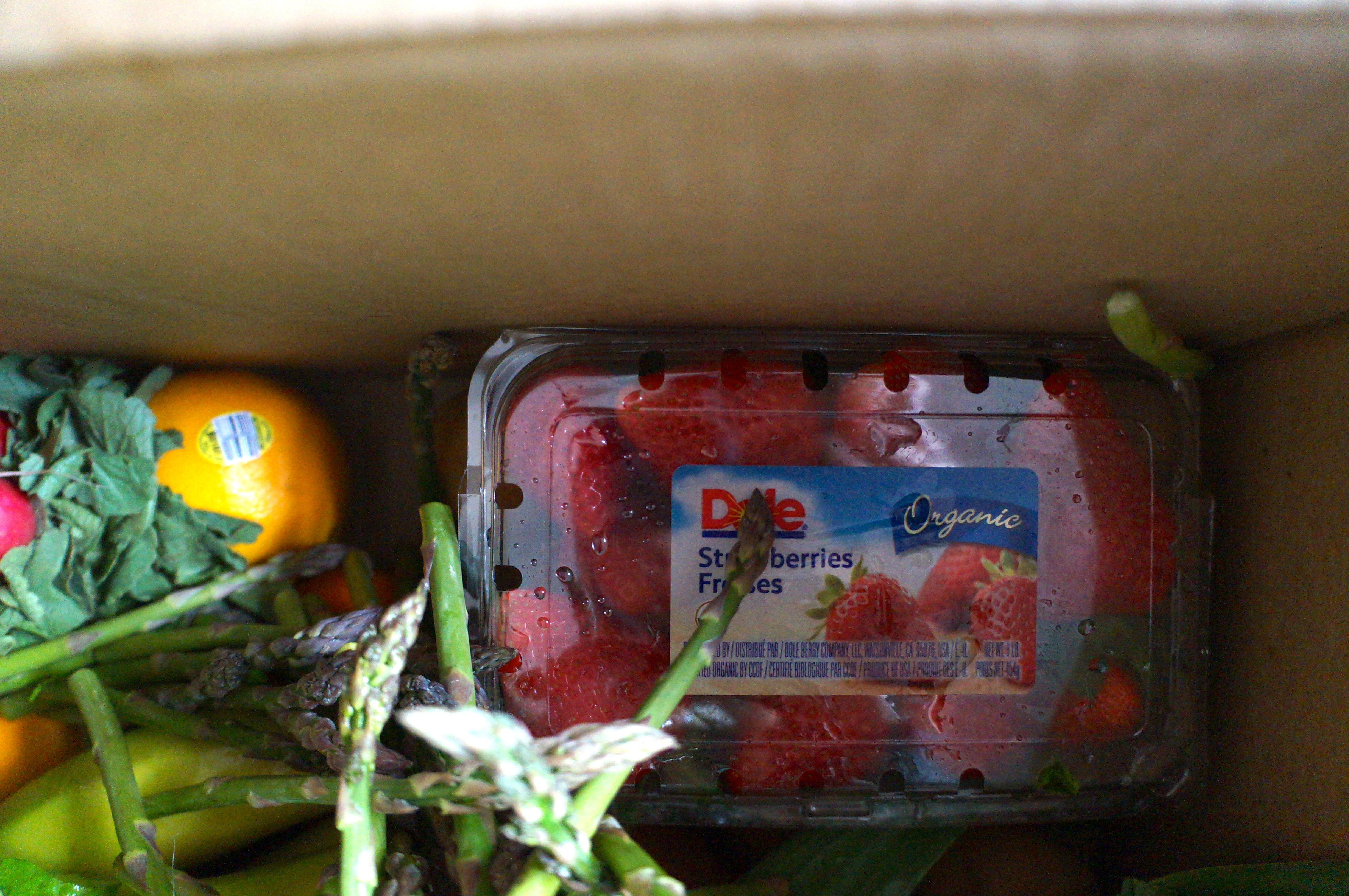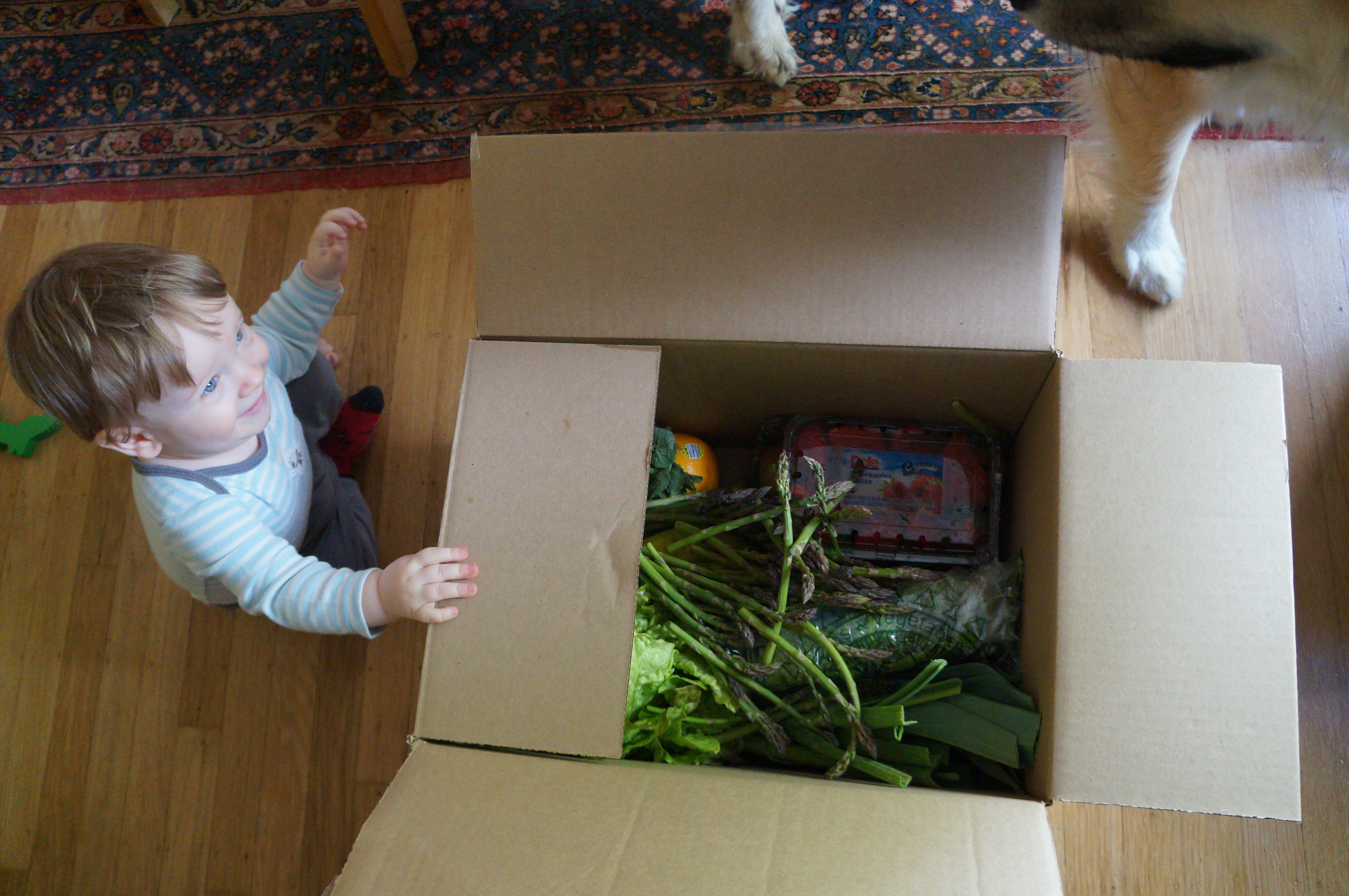 I saw a post about this food delivery company on a blog I read and got really excited about it – then I realized they’re only in Texas. But I had told A. about it, and he found Organics to You! We signed up for a delivery this week and I think we’ll be continuing it. It’s not ALL local, but for $33/week we can have a “small box” of fruits and vegetables delivered TO OUR DOOR every week. They carry other groceries you can add to your order, as well, or you can do different sizes of boxes, just fruit, or just vegetables.