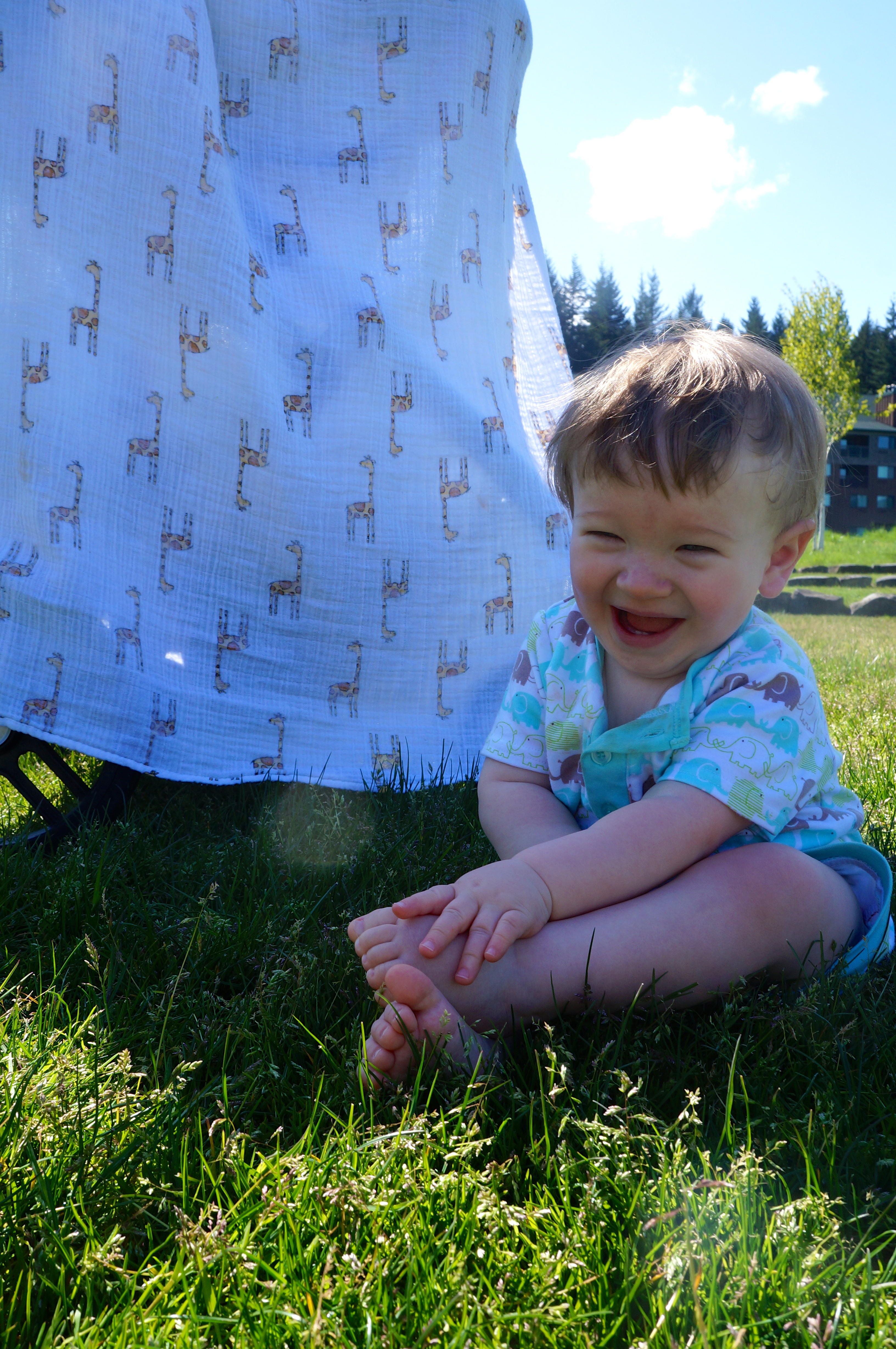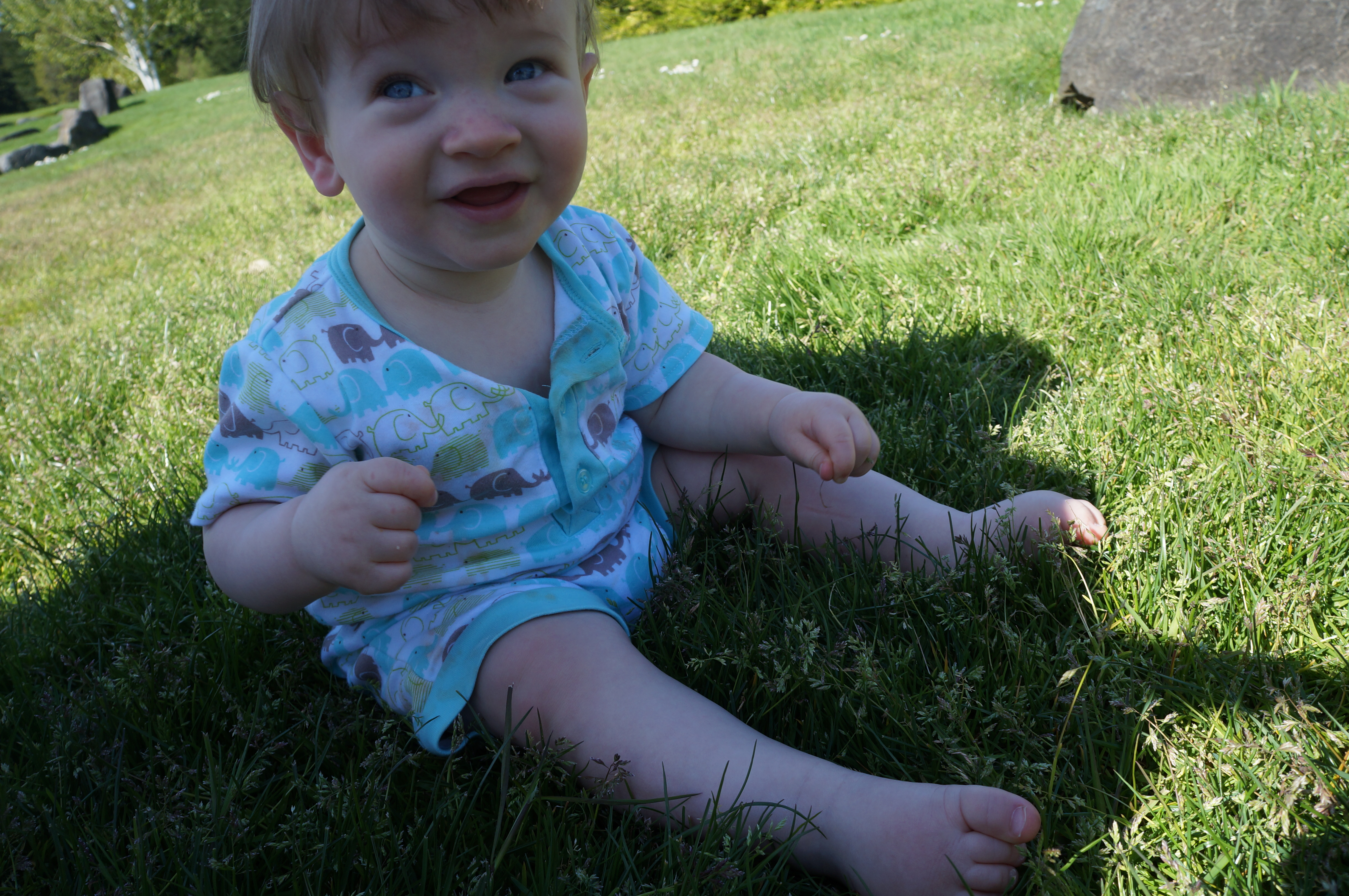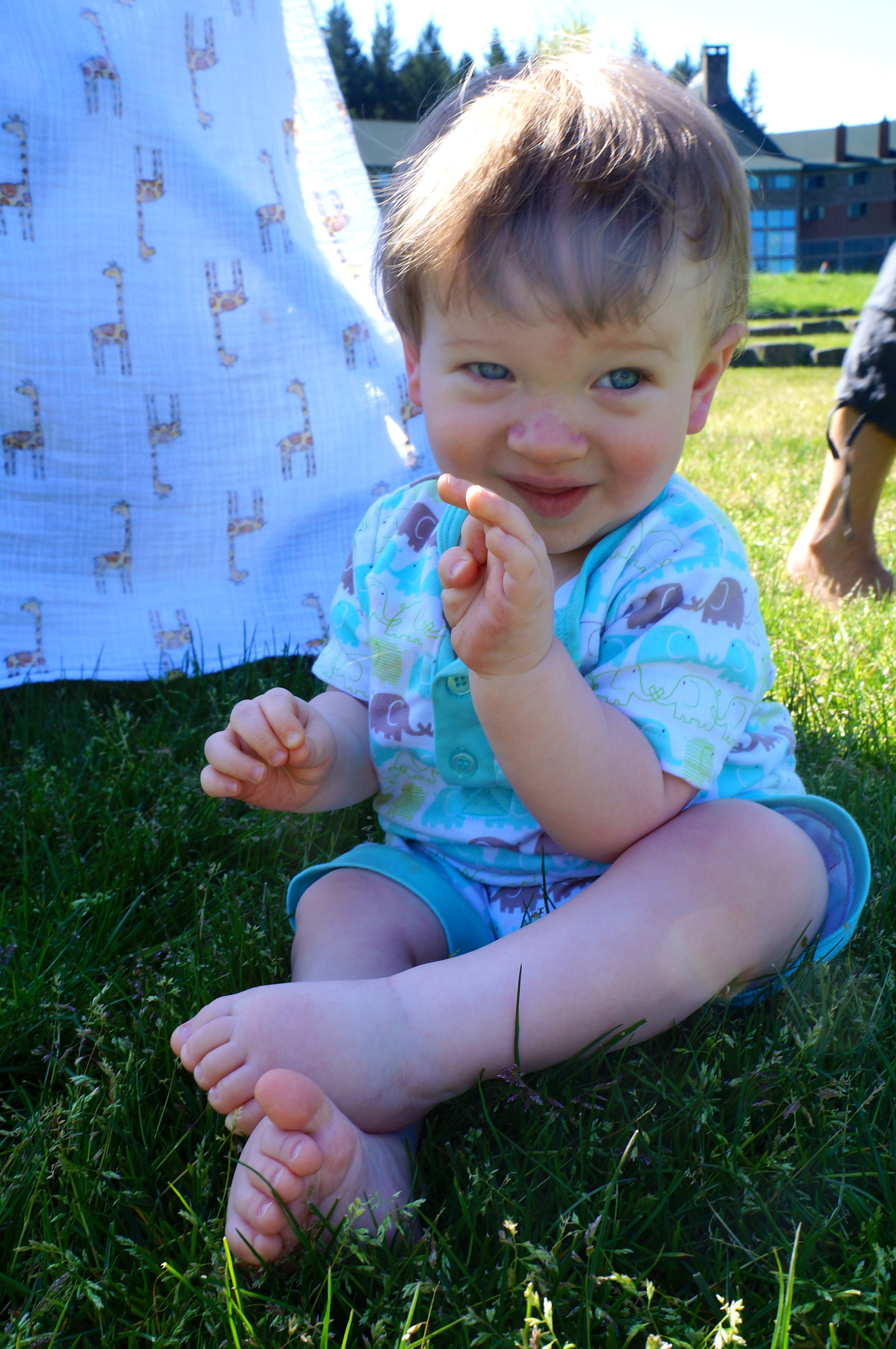 It was a beautiful, sunny day and we spent a while on the lawn with my mom and her good friend. Ari is still not a fan of grass on his feet!